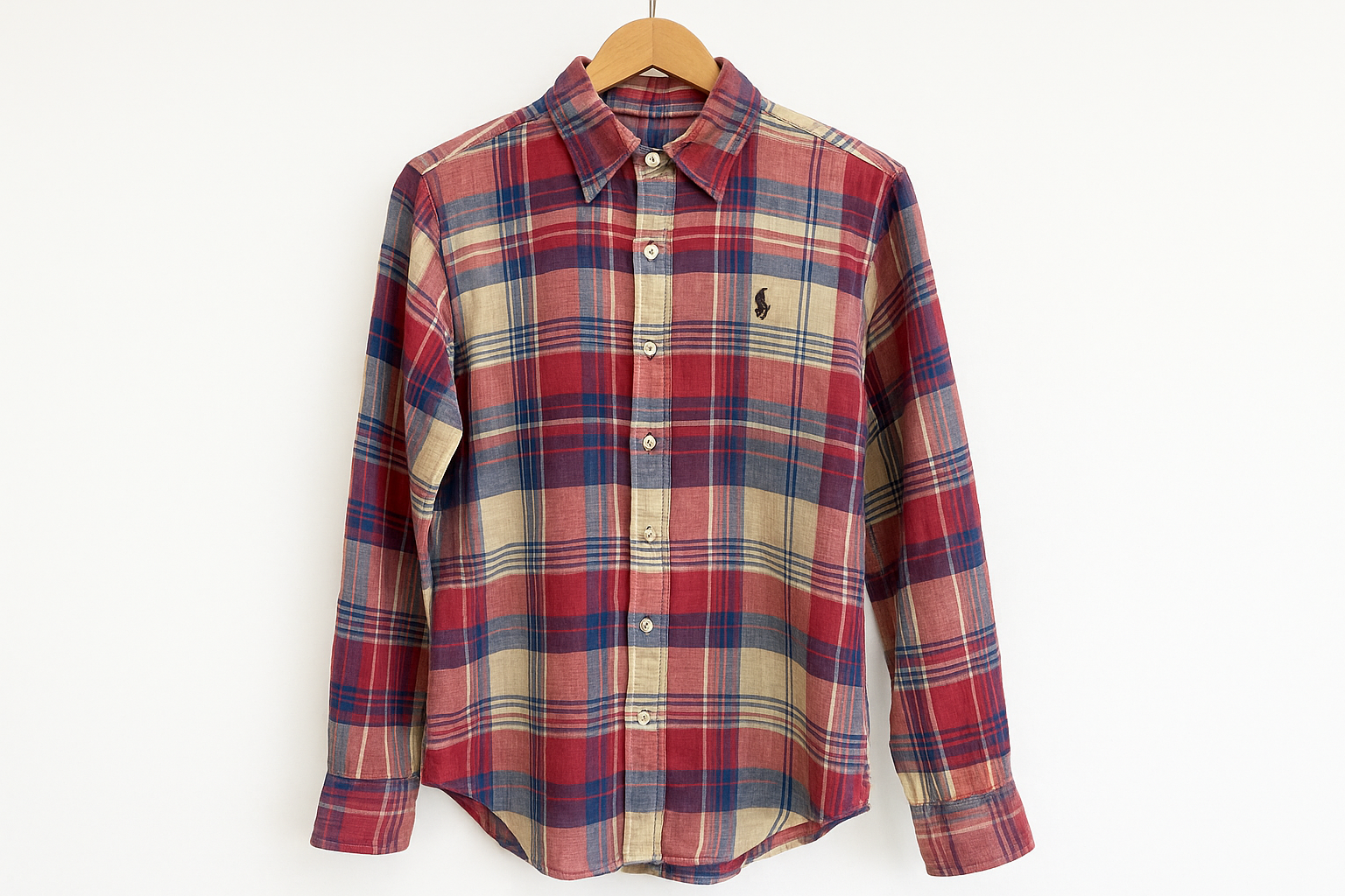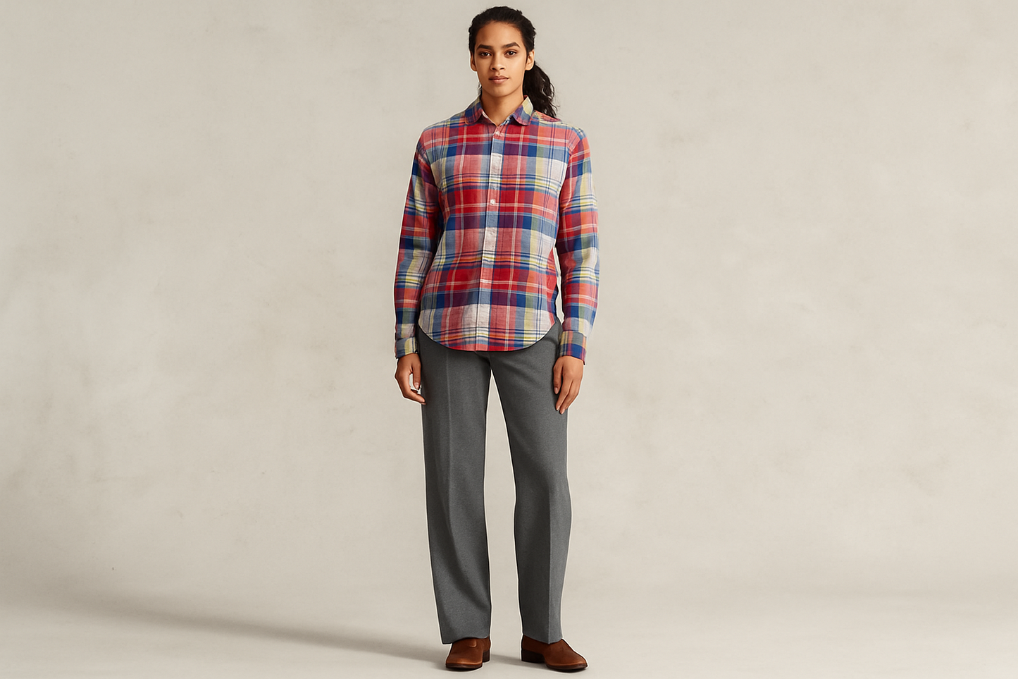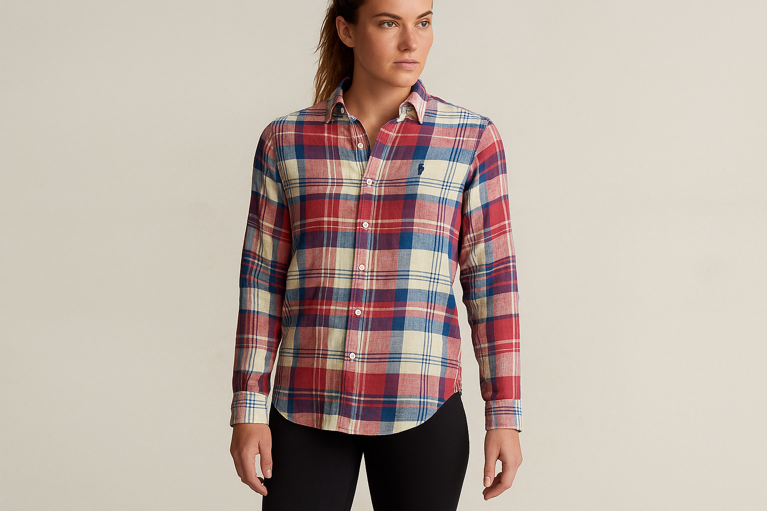 Camisa de mujer Polo Ralph Lauren 🏇🏼 de Lino con cuadros tartán en color azul, rojo y blanco Talla L Entalle Regular