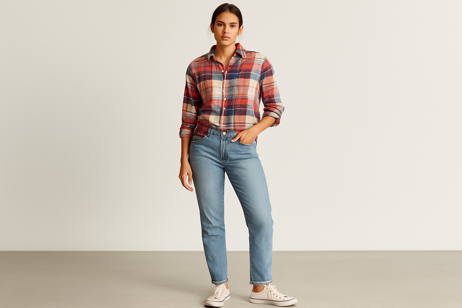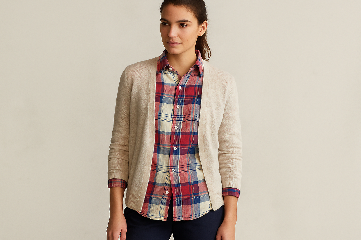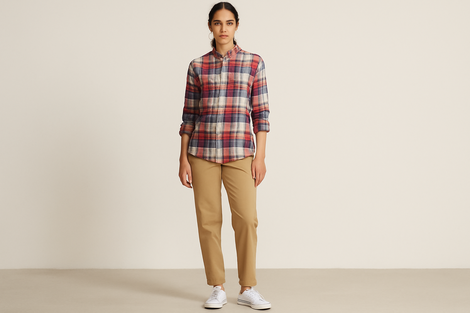 Camisa de mujer Polo Ralph Lauren 🏇🏼 de Lino con cuadros tartán en color azul, rojo y blanco Talla L Entalle Regular