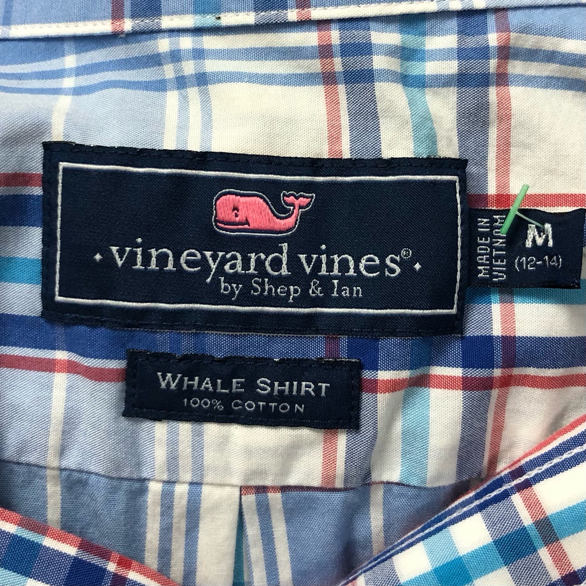 Camisa de niño Vineyard Vines 🐳 con patrón de cuadros en color azul, blanco y rojo Talla M (12-14) Entalle Regular