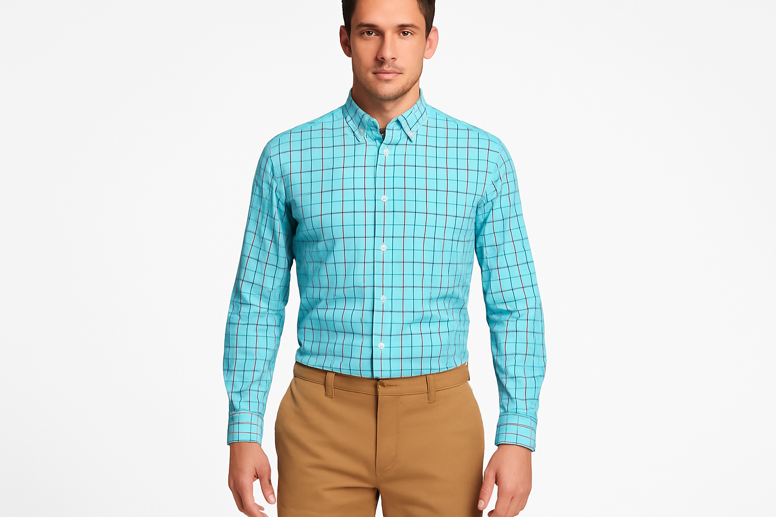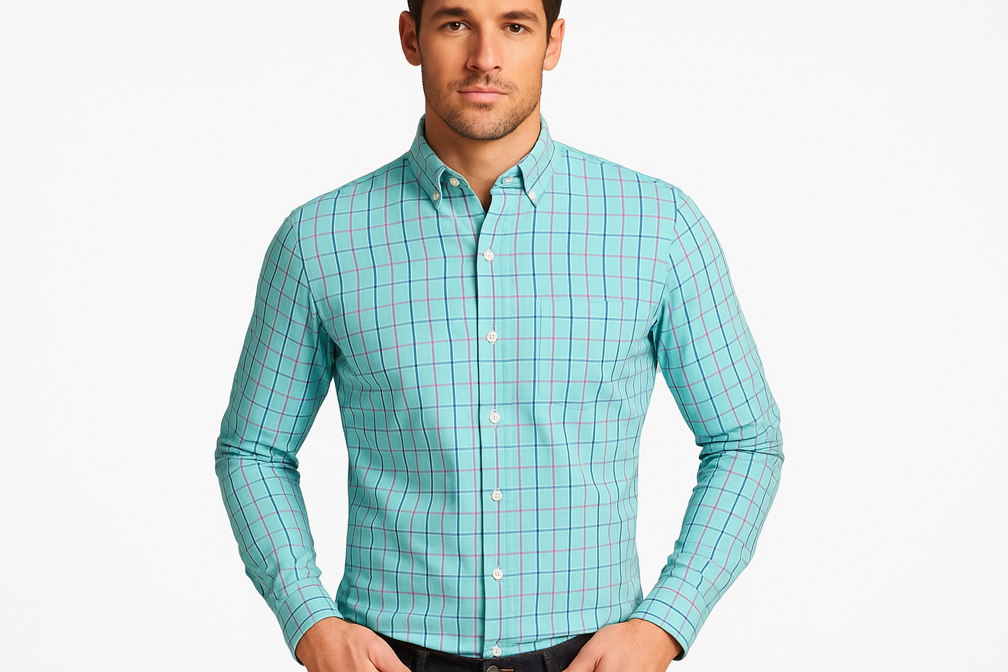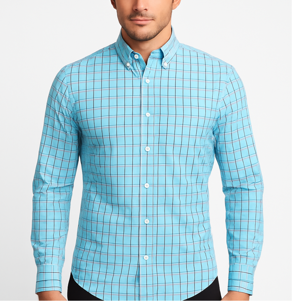 Camisa J.Crew 🇺🇸 color Celeste con cuadros en color rosado y azul Talla S (14) Entalle Slim Fit