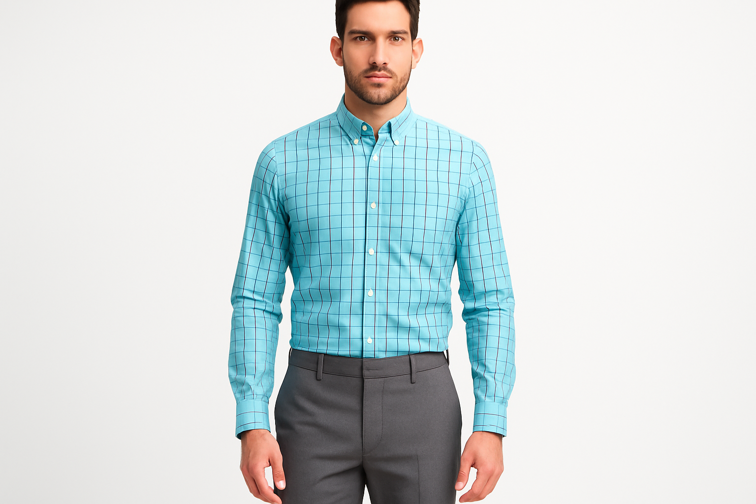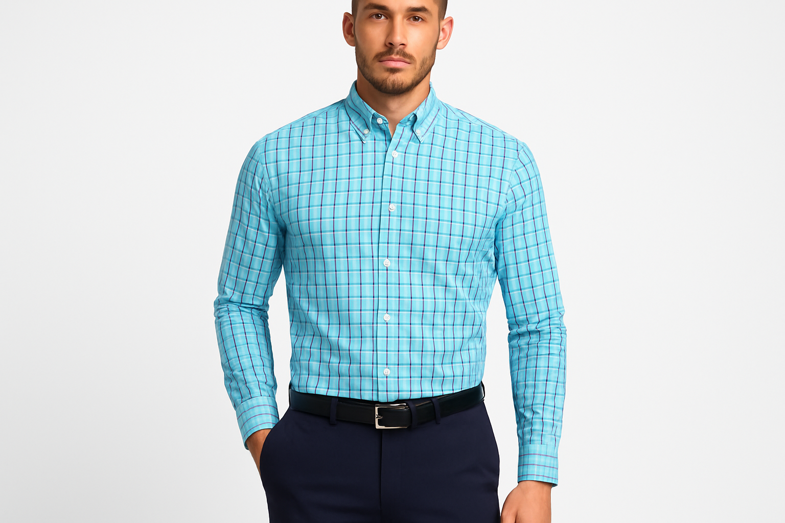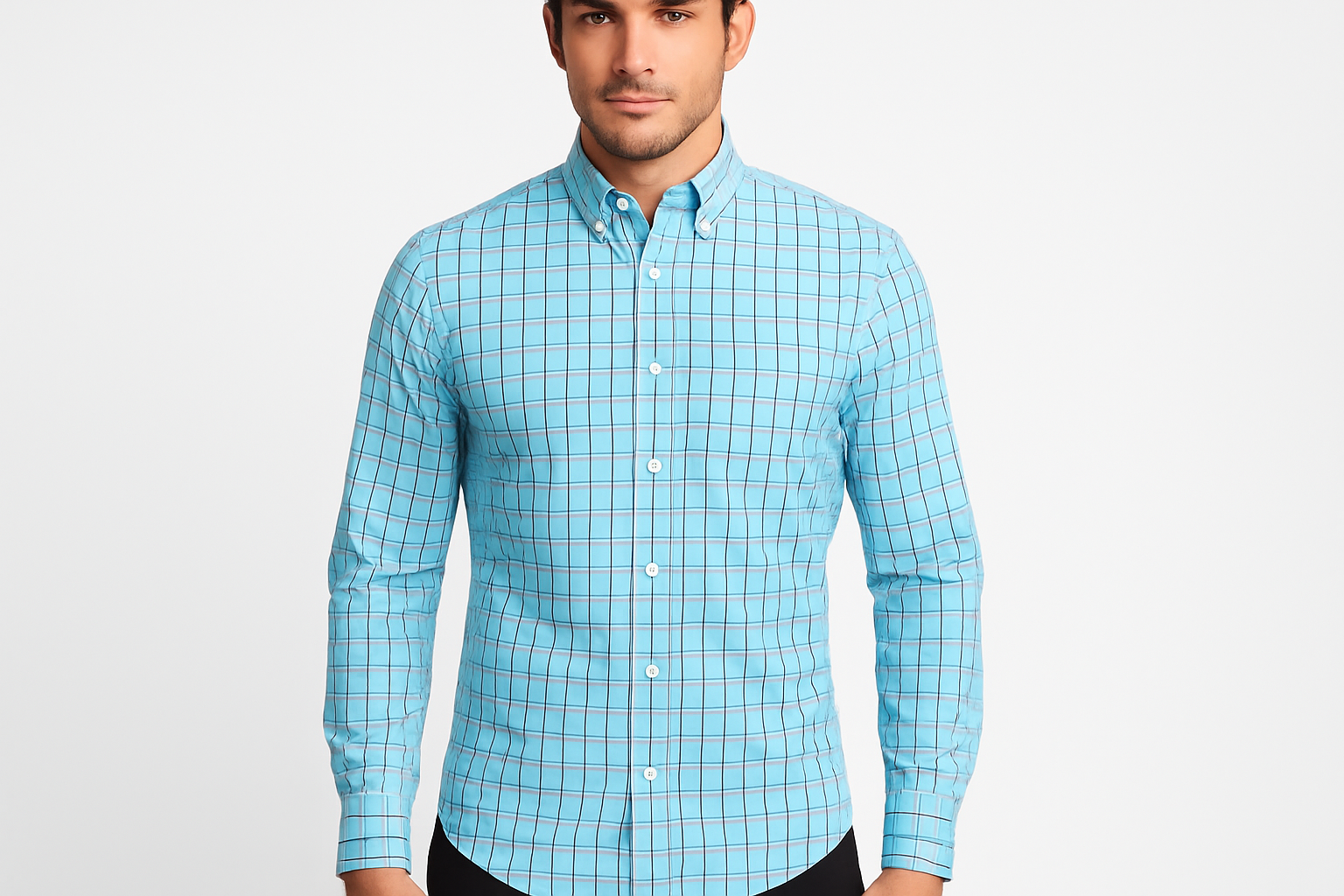 Camisa J.Crew 🇺🇸 color Celeste con cuadros en color rosado y azul Talla S (14) Entalle Slim Fit