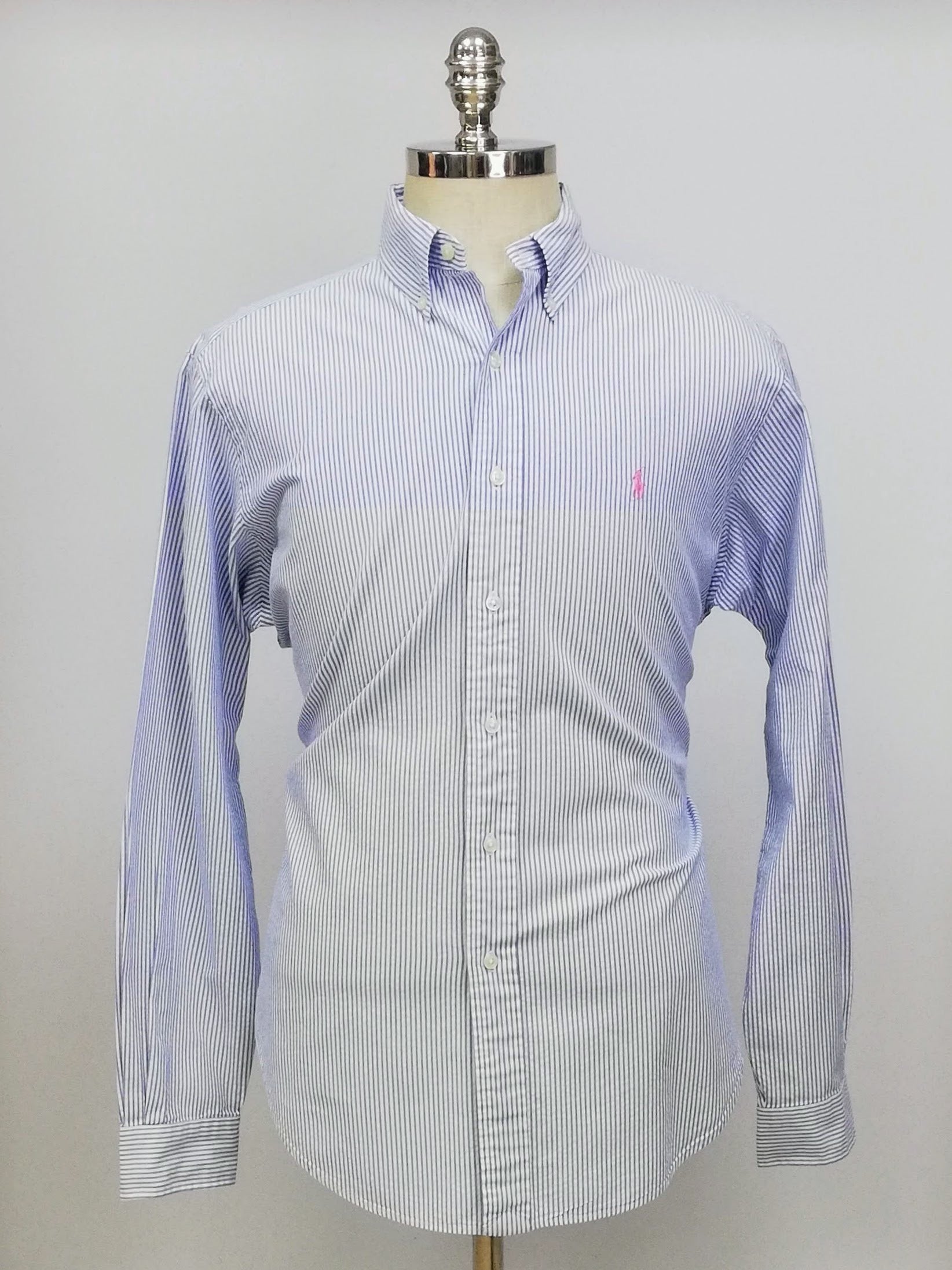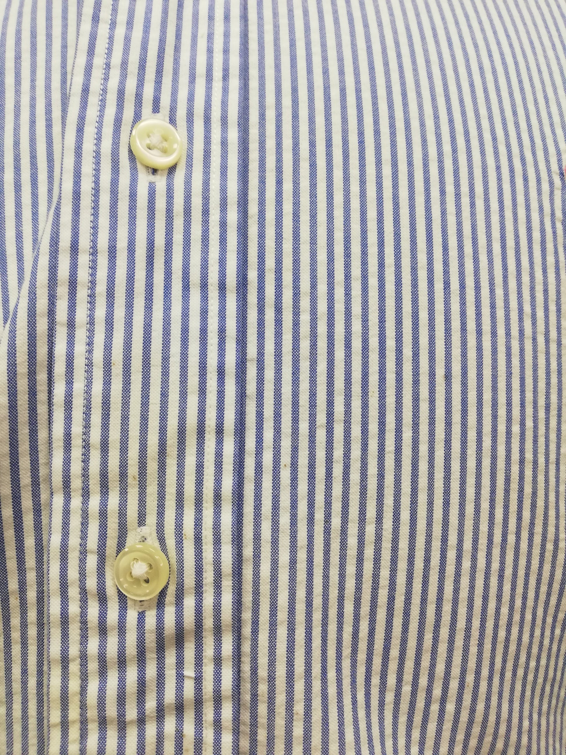 Camisa Polo Ralph Lauren 🏇🏼 Color blanco con patrón de rayas en celeste Seersucker Talla L Entalle Clásico (ver descripción)