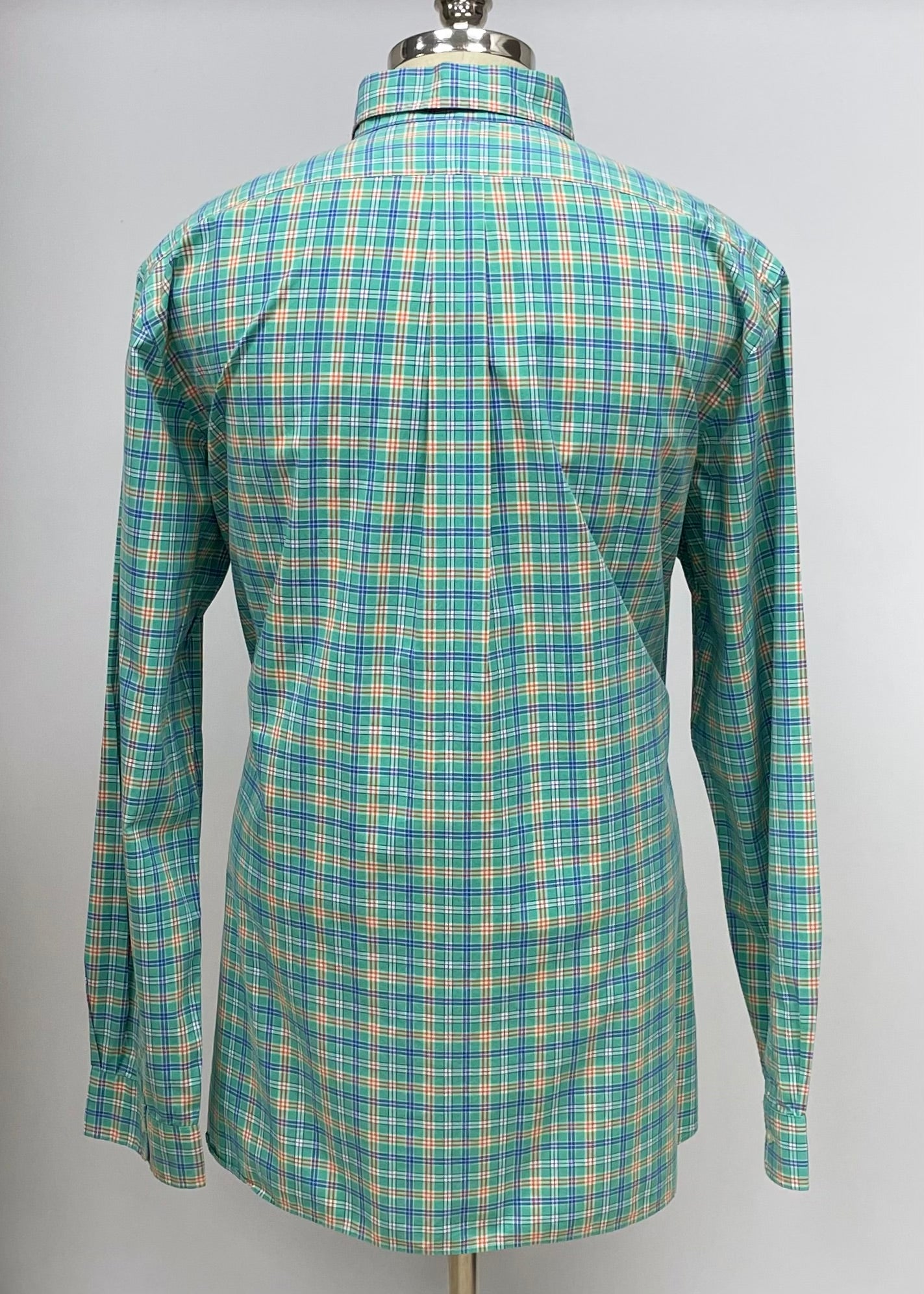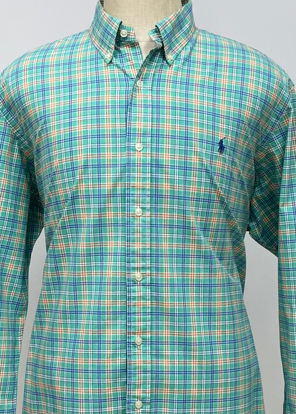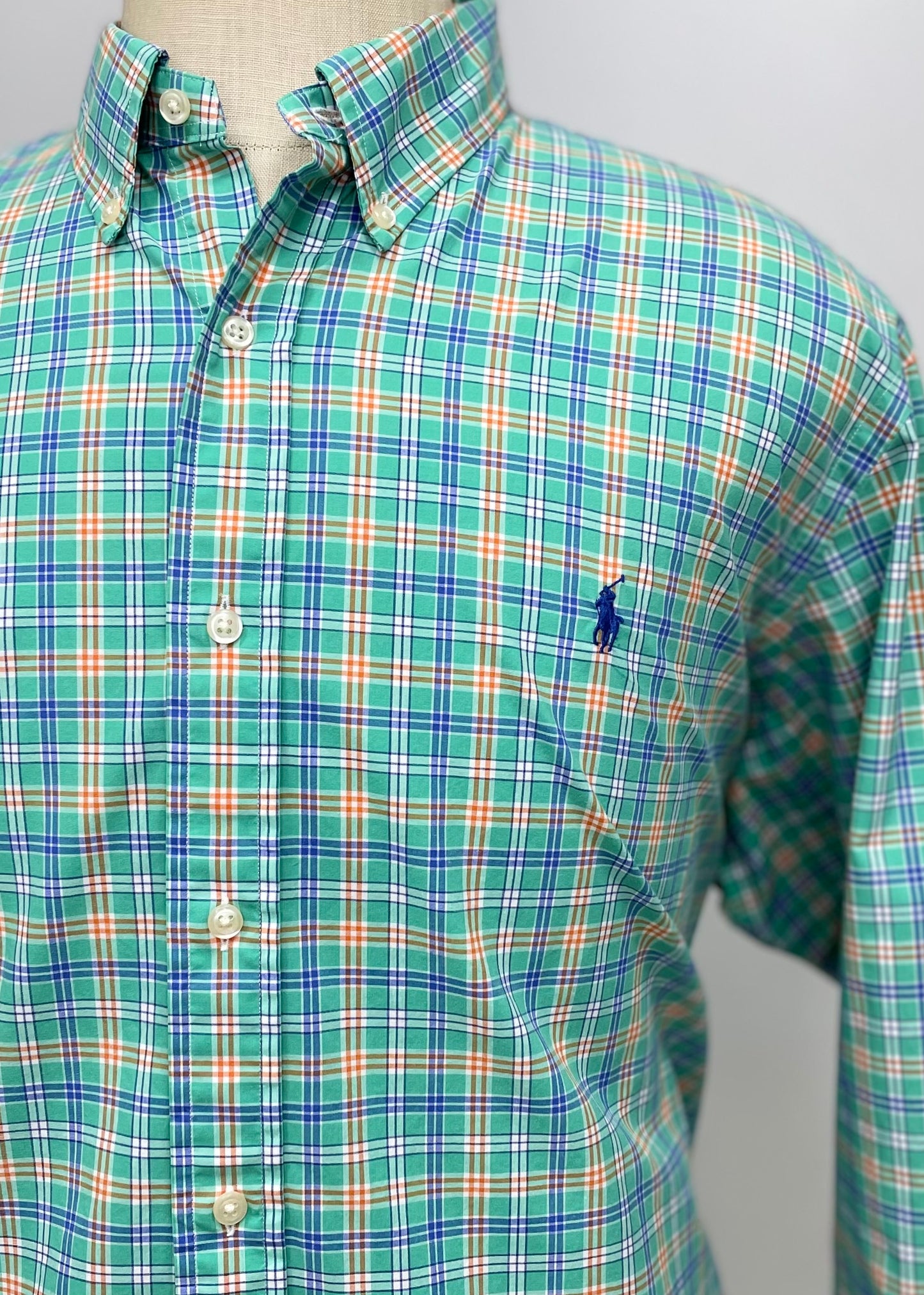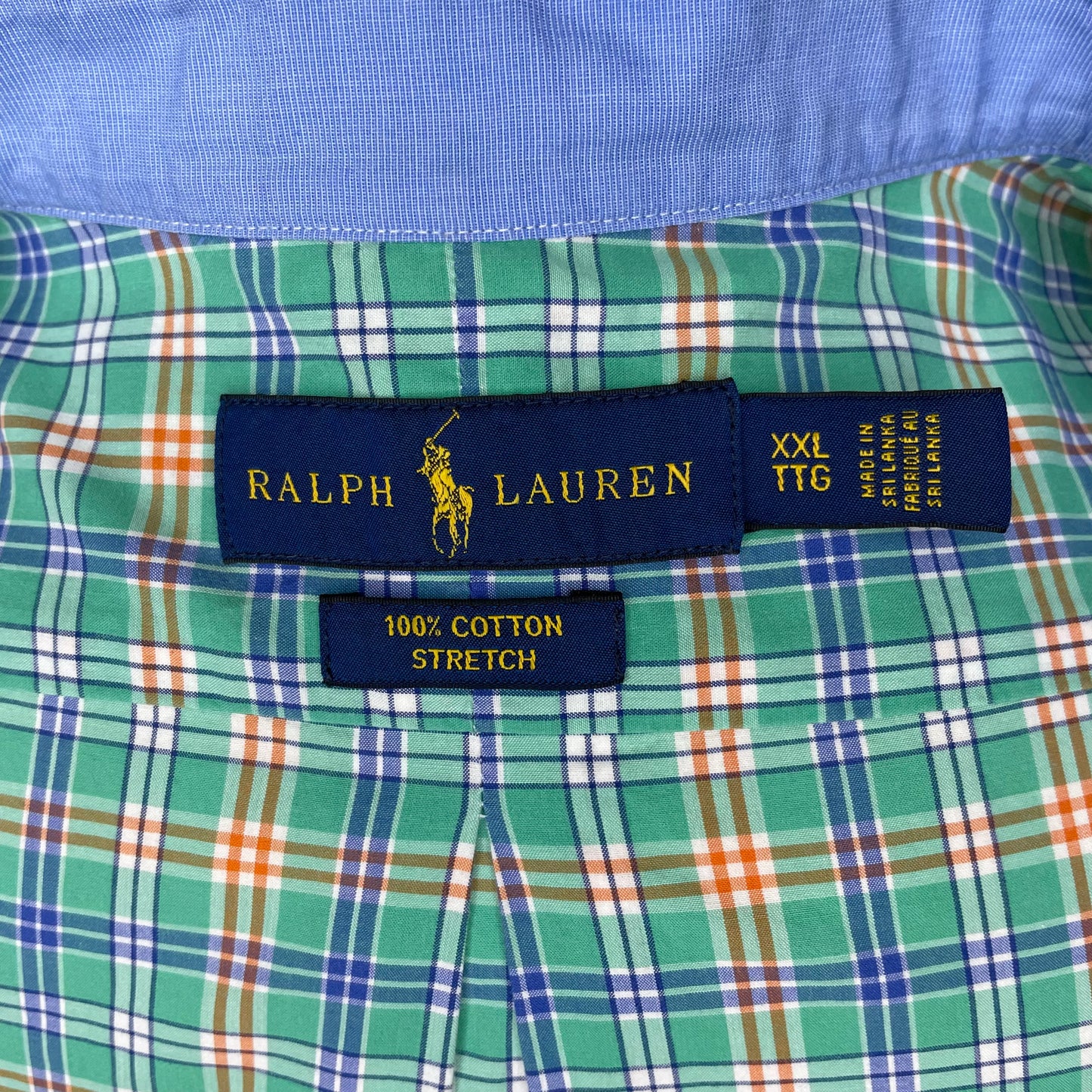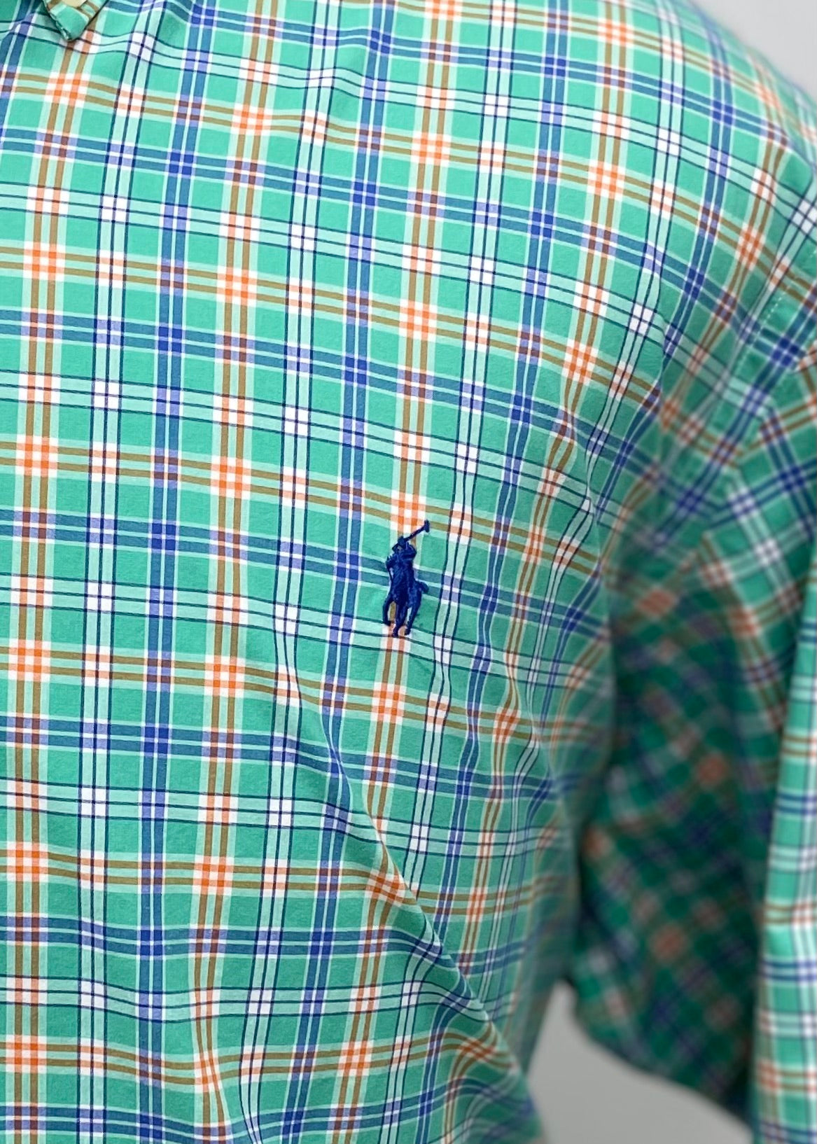 Camisa Polo Ralph Lauren 🏇🏼 color verde con cuadros naranja y azul Talla XXL Entalle Regular