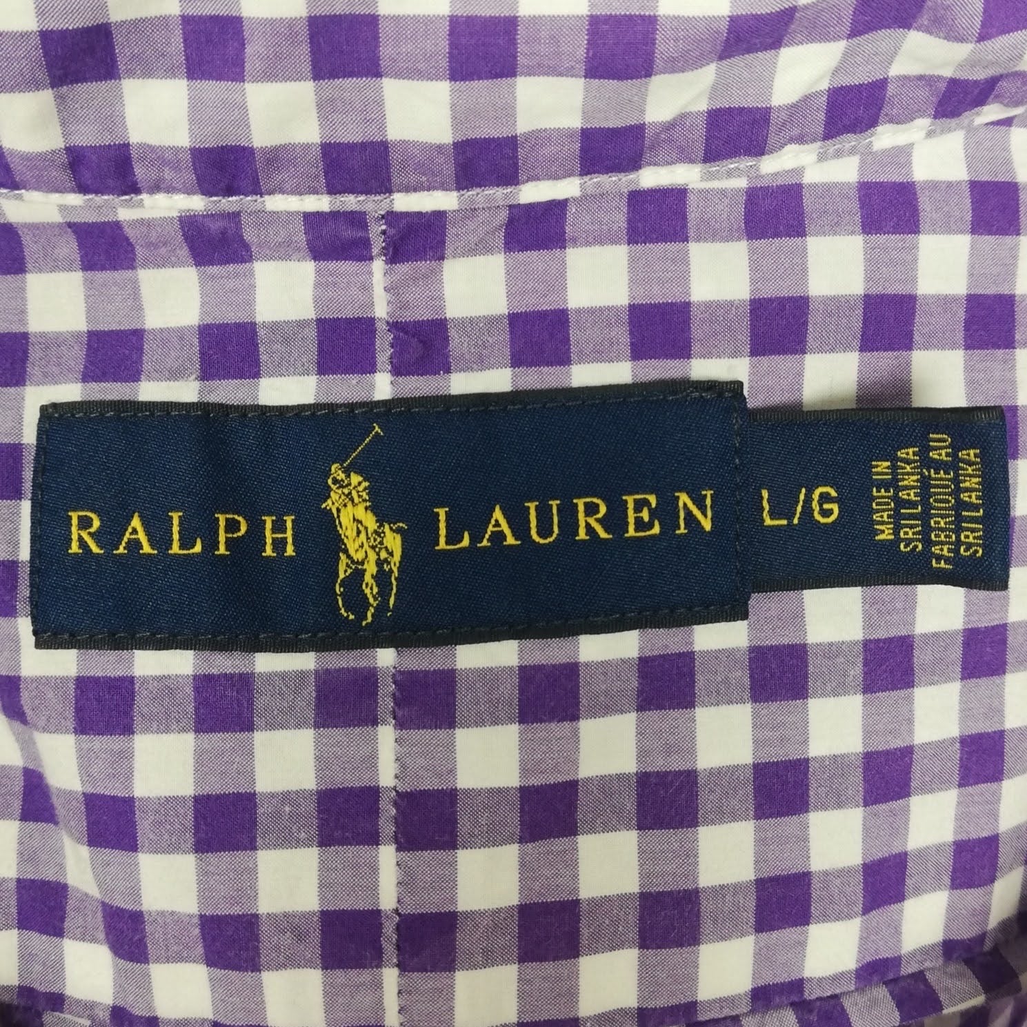 Camisa Polo Ralph Lauren 🏇🏼 con patron de cuadros gingham morado y blanco Talla L Entalle Regular (ver descripción)