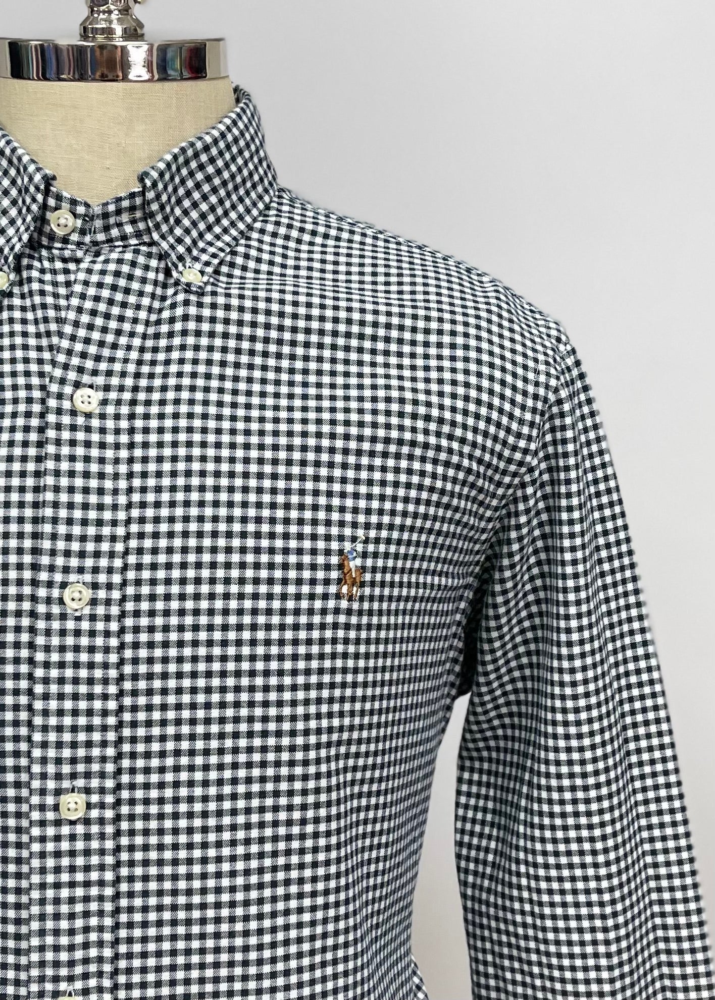 Camisa Polo Ralph Lauren 🏇🏼 con patron de cuadros gingham negro y blanco Talla L Entalle Regular