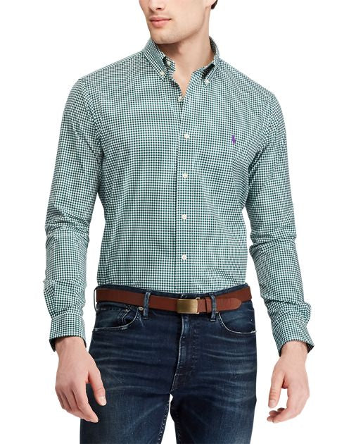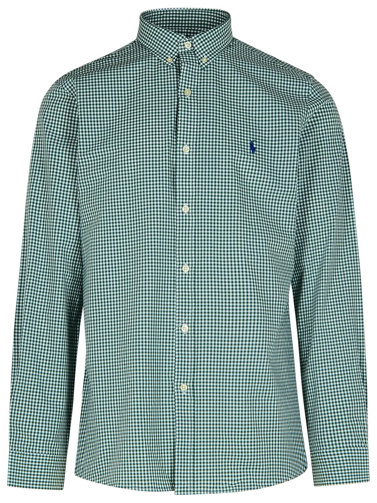 Camisa Polo Ralph Lauren 🏇🏼 con patrón de cuadros gingham verde oscuro y blanco Talla S Entalle Regular