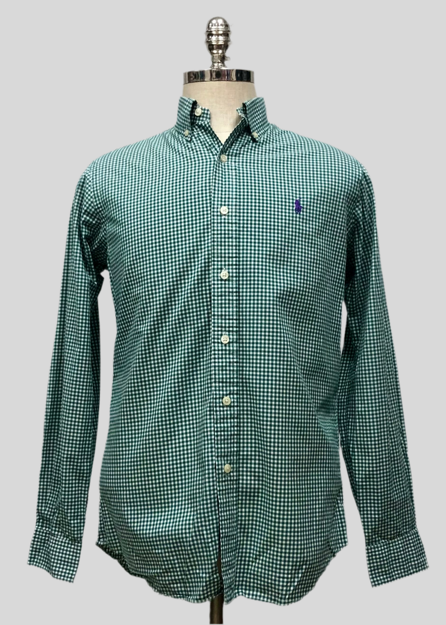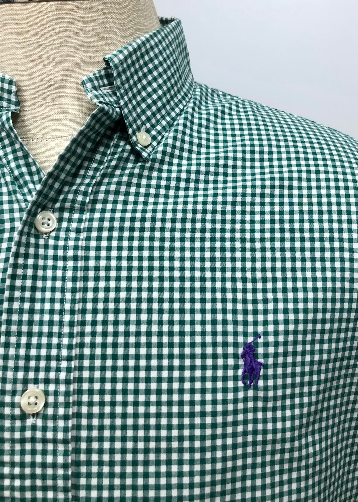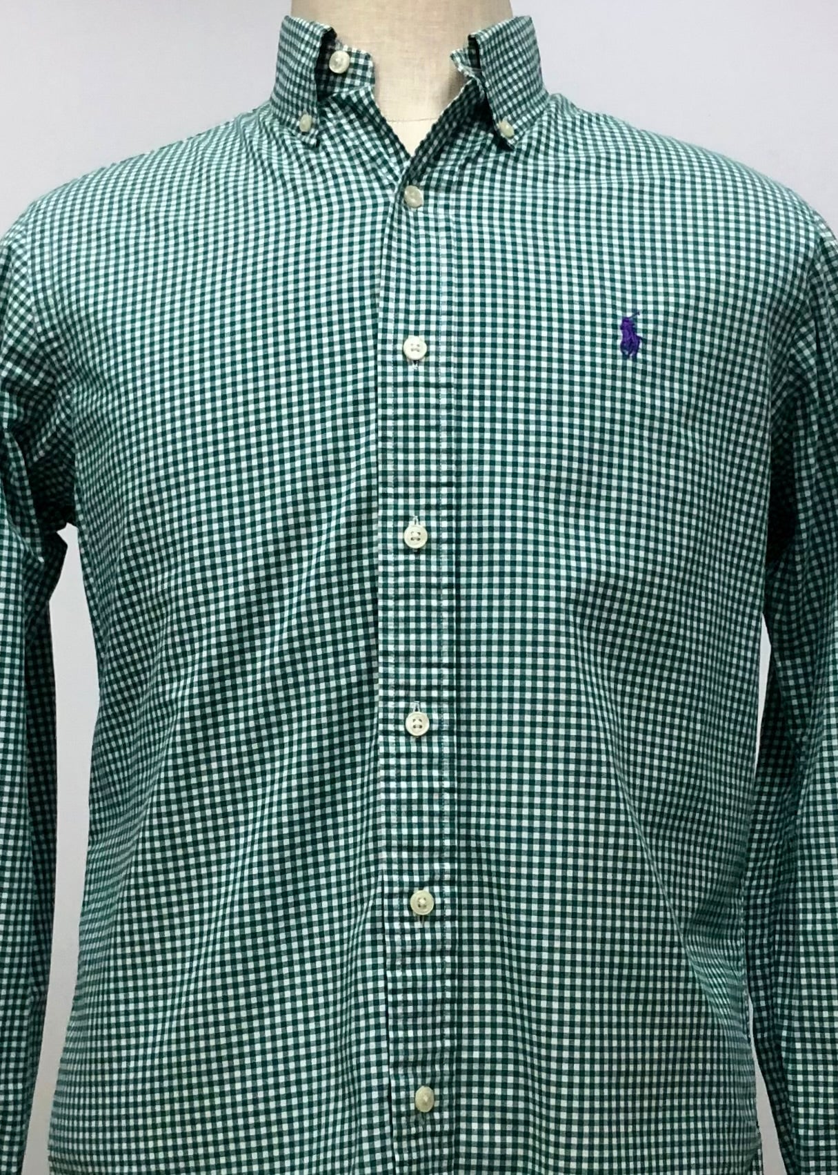 Camisa de botones Polo Ralph Lauren 🏇🏼 - Talla Small - Entalle Regular - Manga larga - Con patrón de cuadros gingham en color verde oscuro y blanco con logo bordado en color morado - Tela 100% Algodón - Cuello en punta abotonada - Como nuevo 10/10 - Precio $35 💵 DM 📩 Por si tiene alguna consulta
