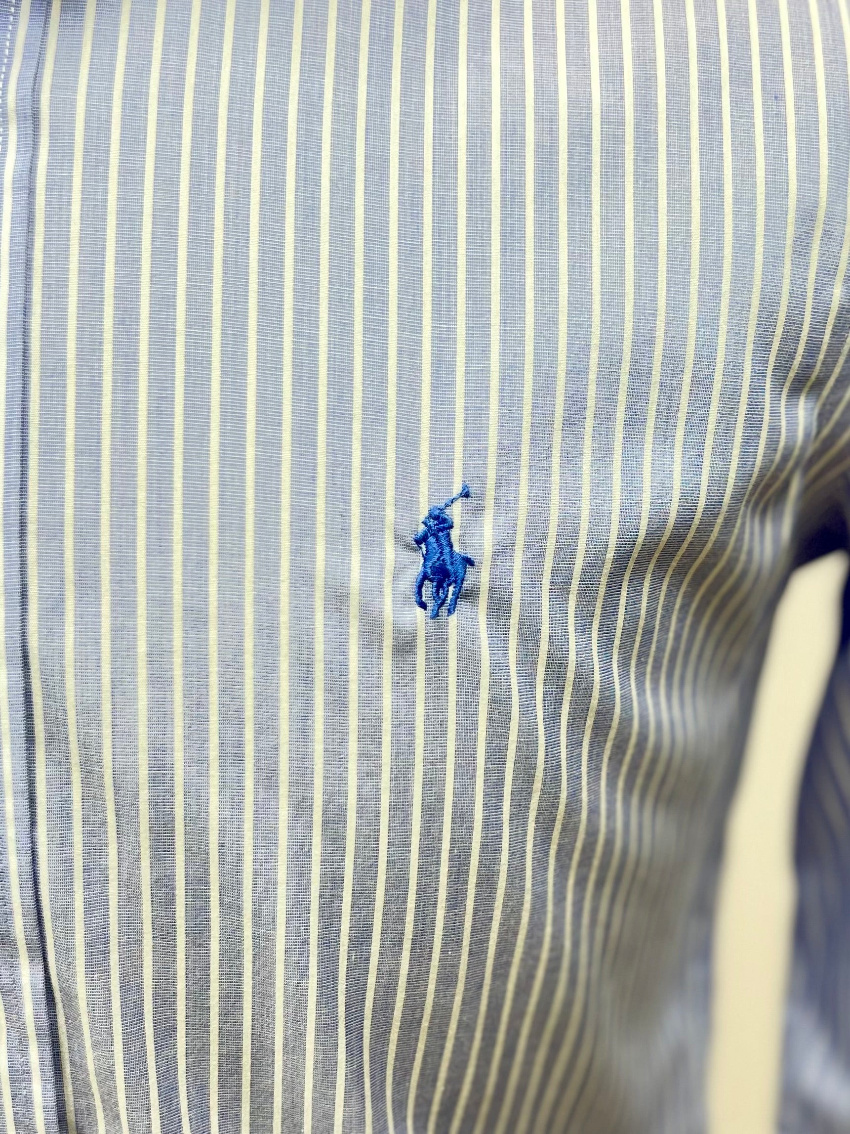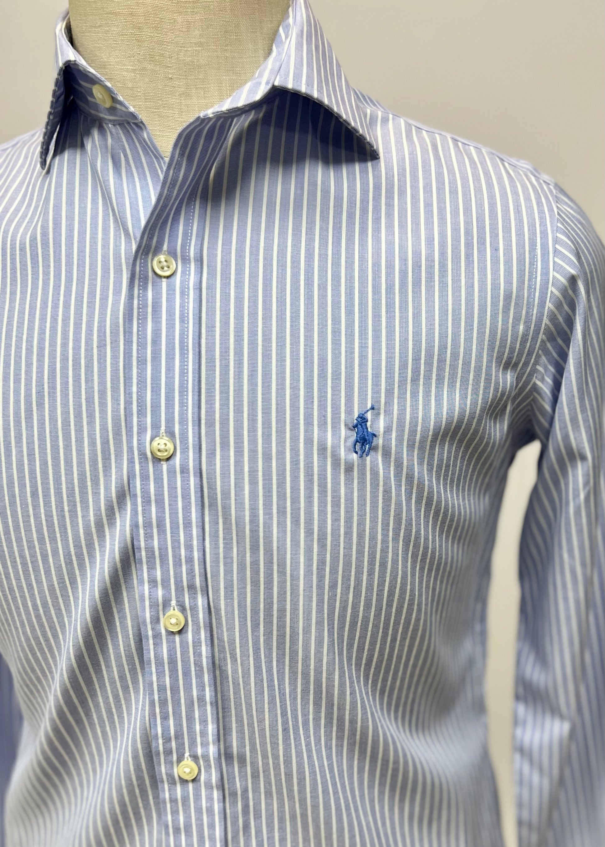Camisa Polo Ralph Lauren 🏇🏼 con patrón de rayas en celeste y blanco Talla S Entalle Regular