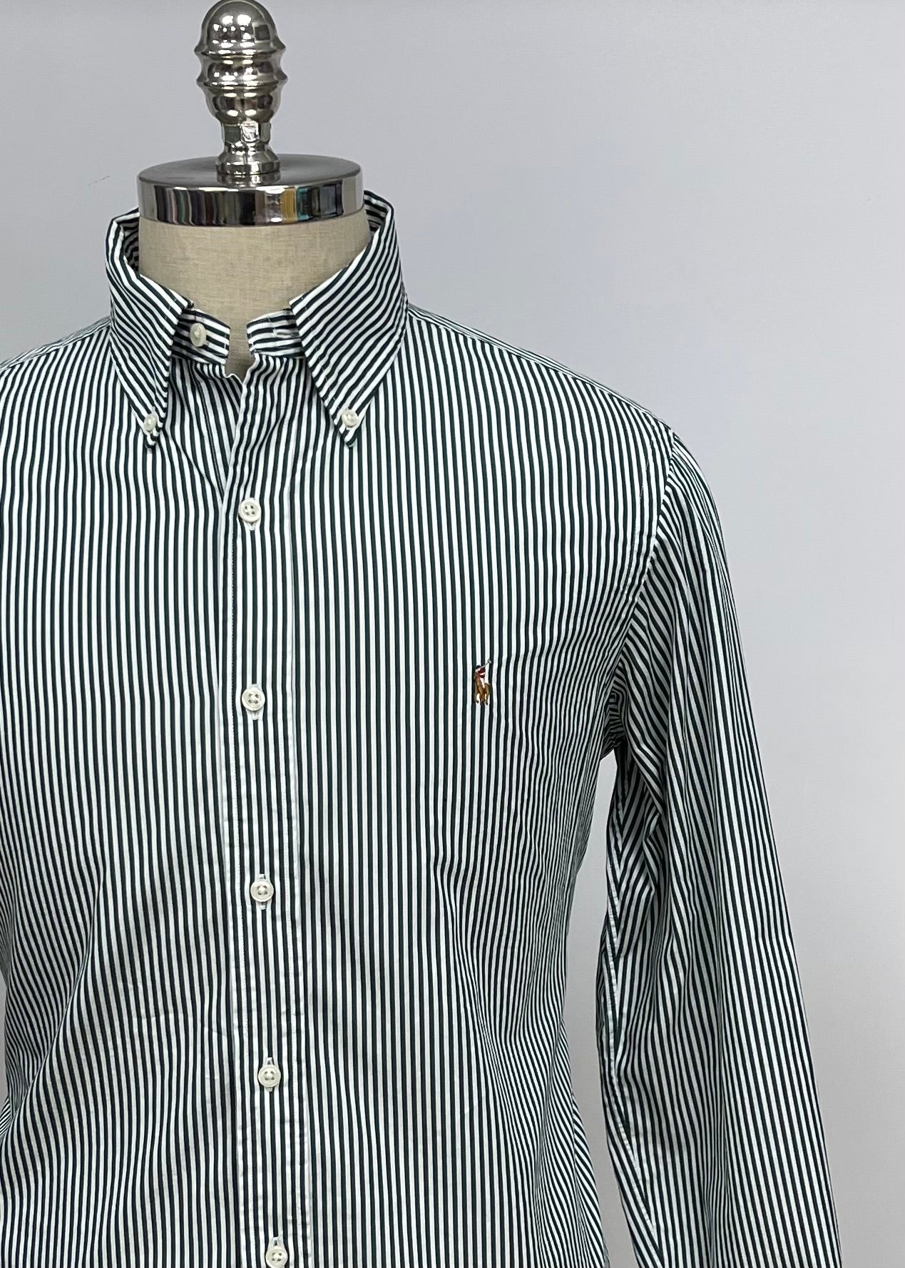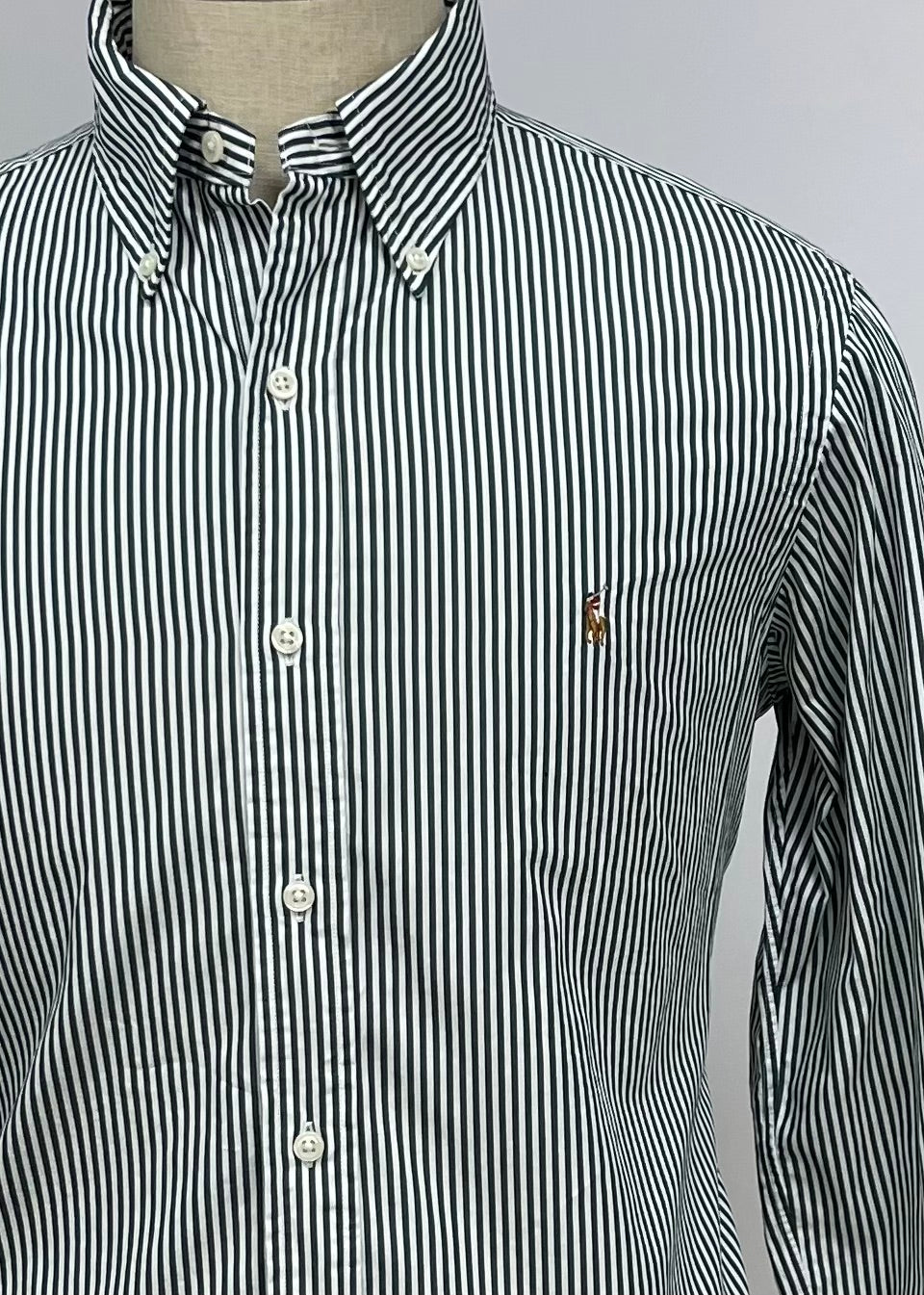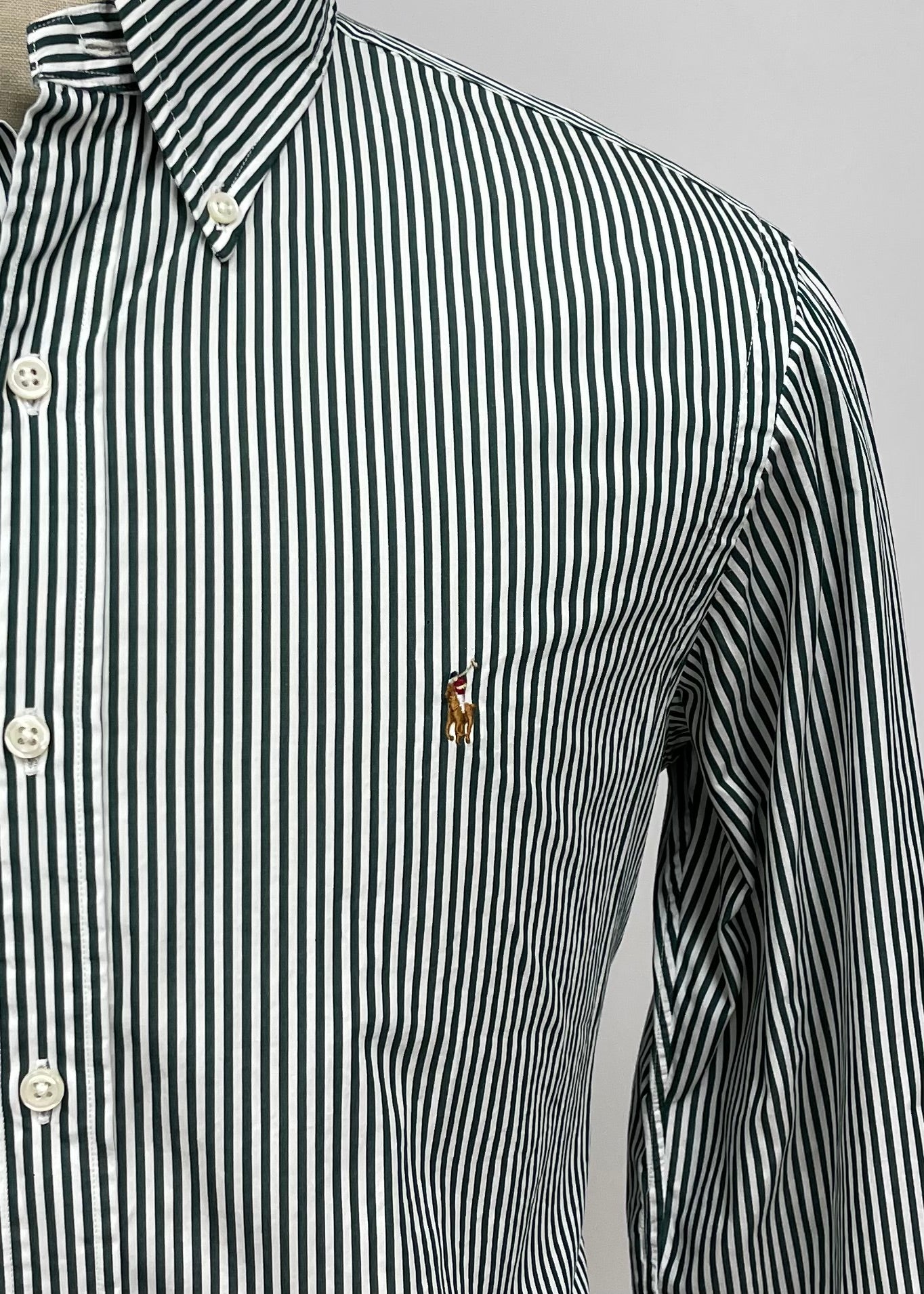 Camisa de botones Polo Ralph Lauren 🏇🏼 - Talla Medium (15.5) - Entalle Regular - Manga larga - Con patrón de rayas en color verde oscuro y blanco con logo bordado tradicional multicolor - Tela 100% de algodón - Cuello en punta abotonada - Como nuevo 10/10 - Precio $40 💵 DM 📩 Por si tiene alguna consulta
