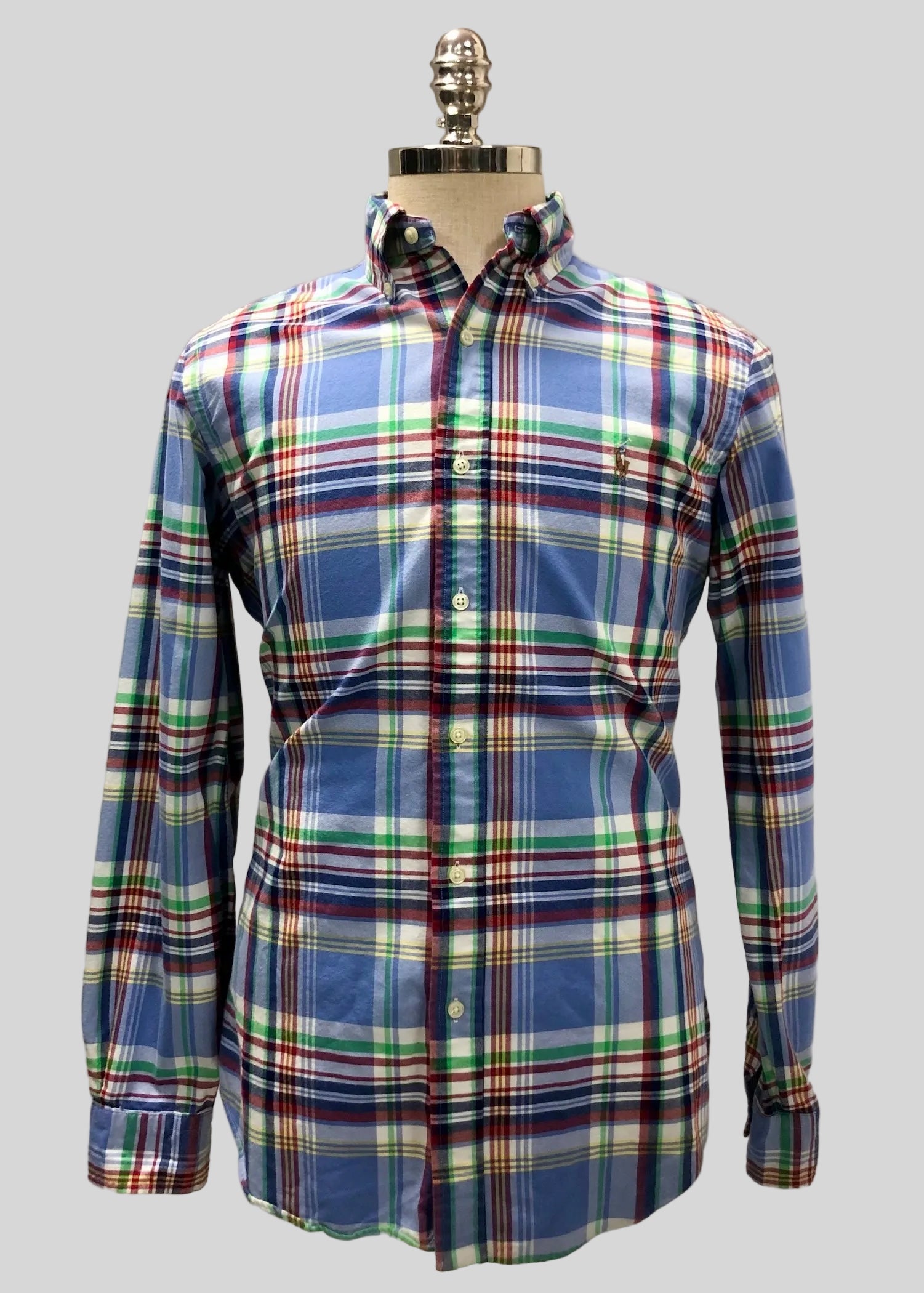Camisa Polo Ralph Lauren 🏇🏼 Oxford de cuadros tartán celeste, amarillo, verde, rojo y blanco Talla M Entalle Clásico