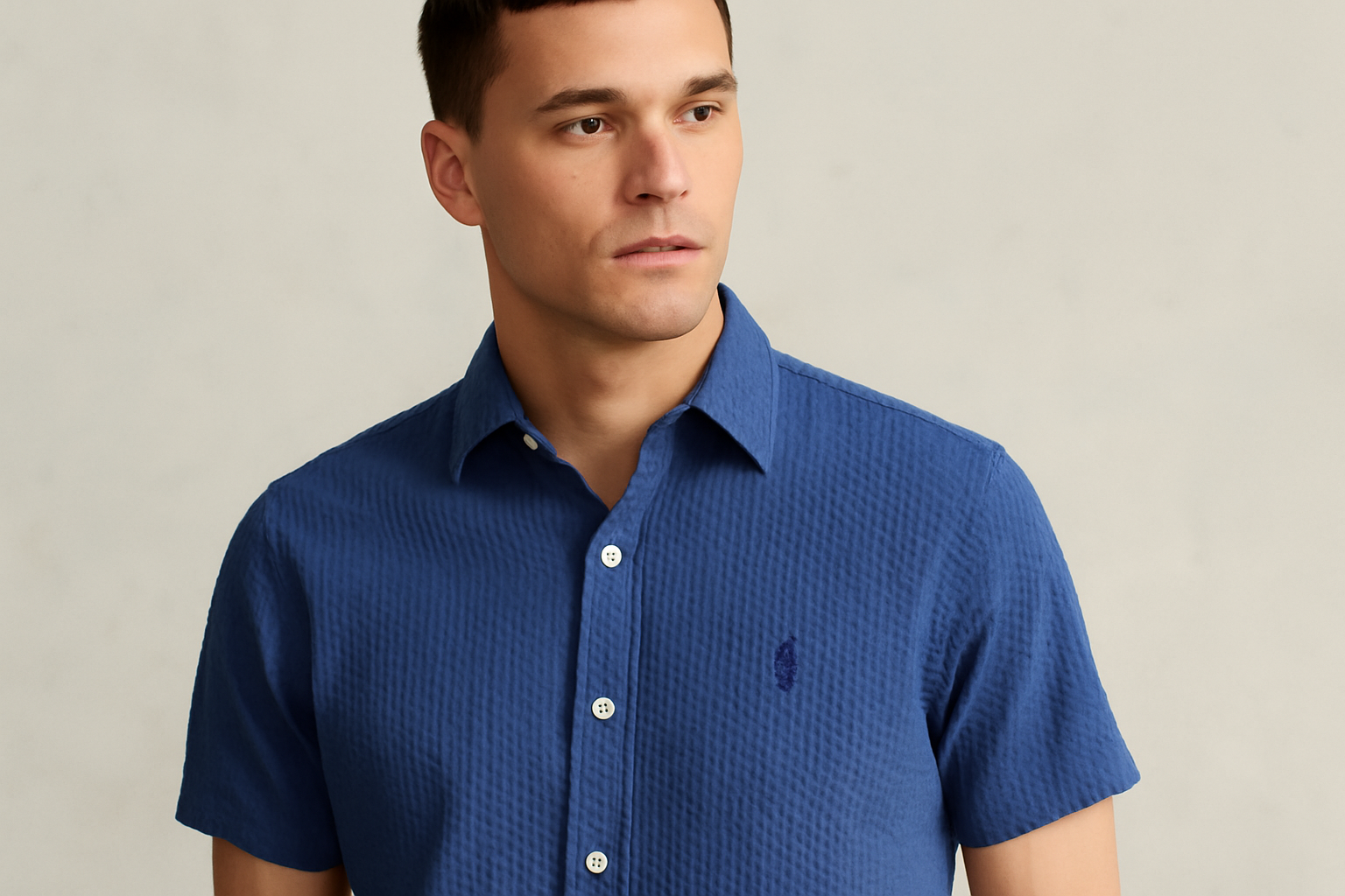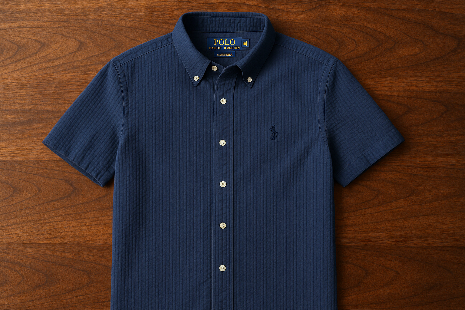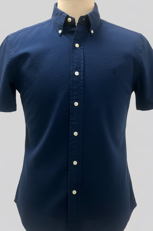 Camisa Polo Ralph Lauren 🏇🏼 Seersucker Color azul navy Talla M Entalle Slim Fit