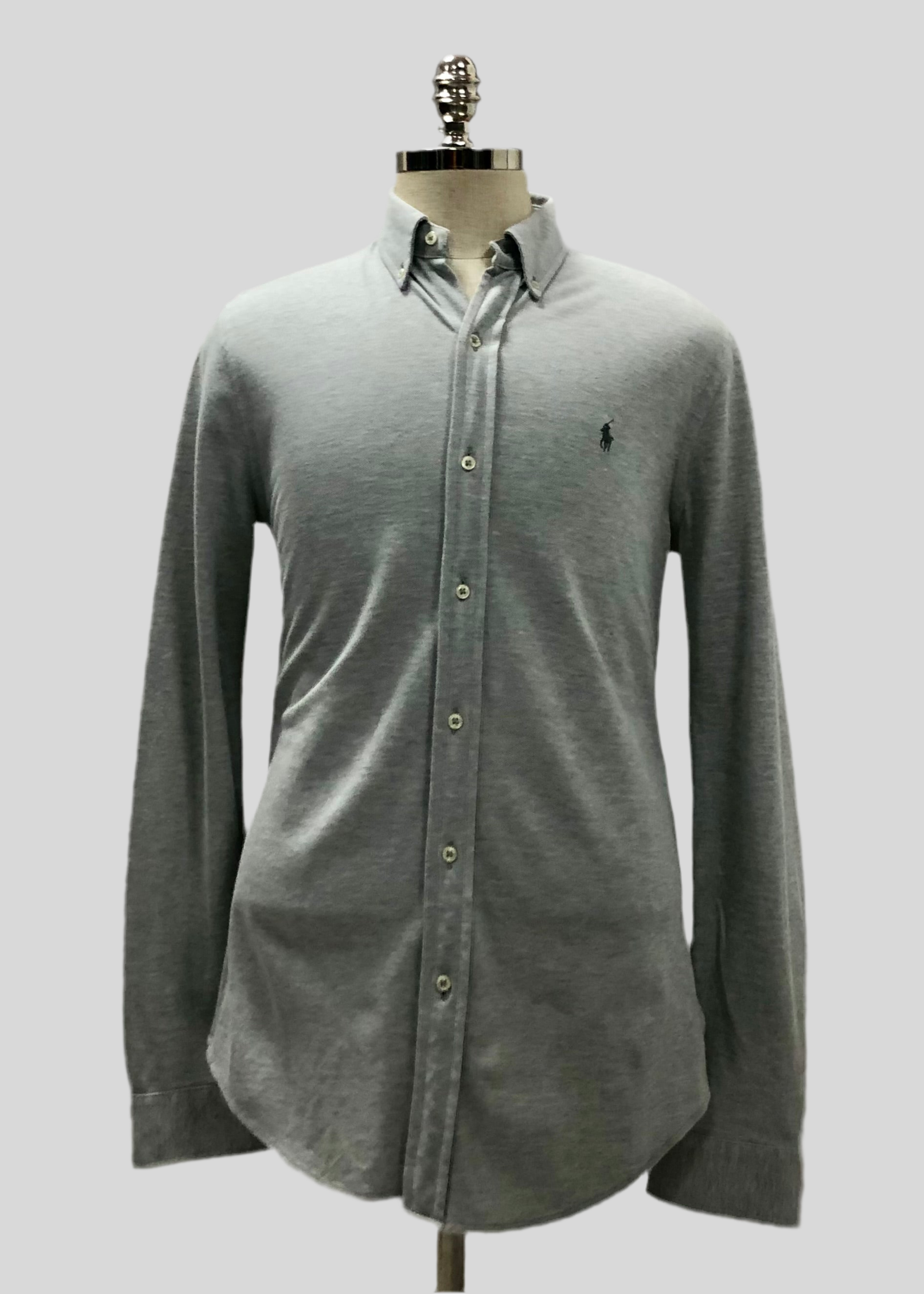 Camisa Polo Ralph Lauren 🏇🏼 Tela camiseta (Knit Oxford) en color gris claro Talla S Entalle Regular