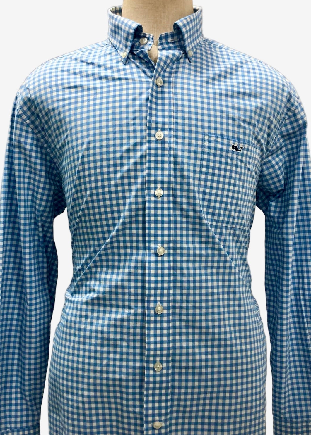Camisa Vineyard Vines 🐳 Performance de cuadros gingham en color celeste y blanco Talla L Entalle Clásico