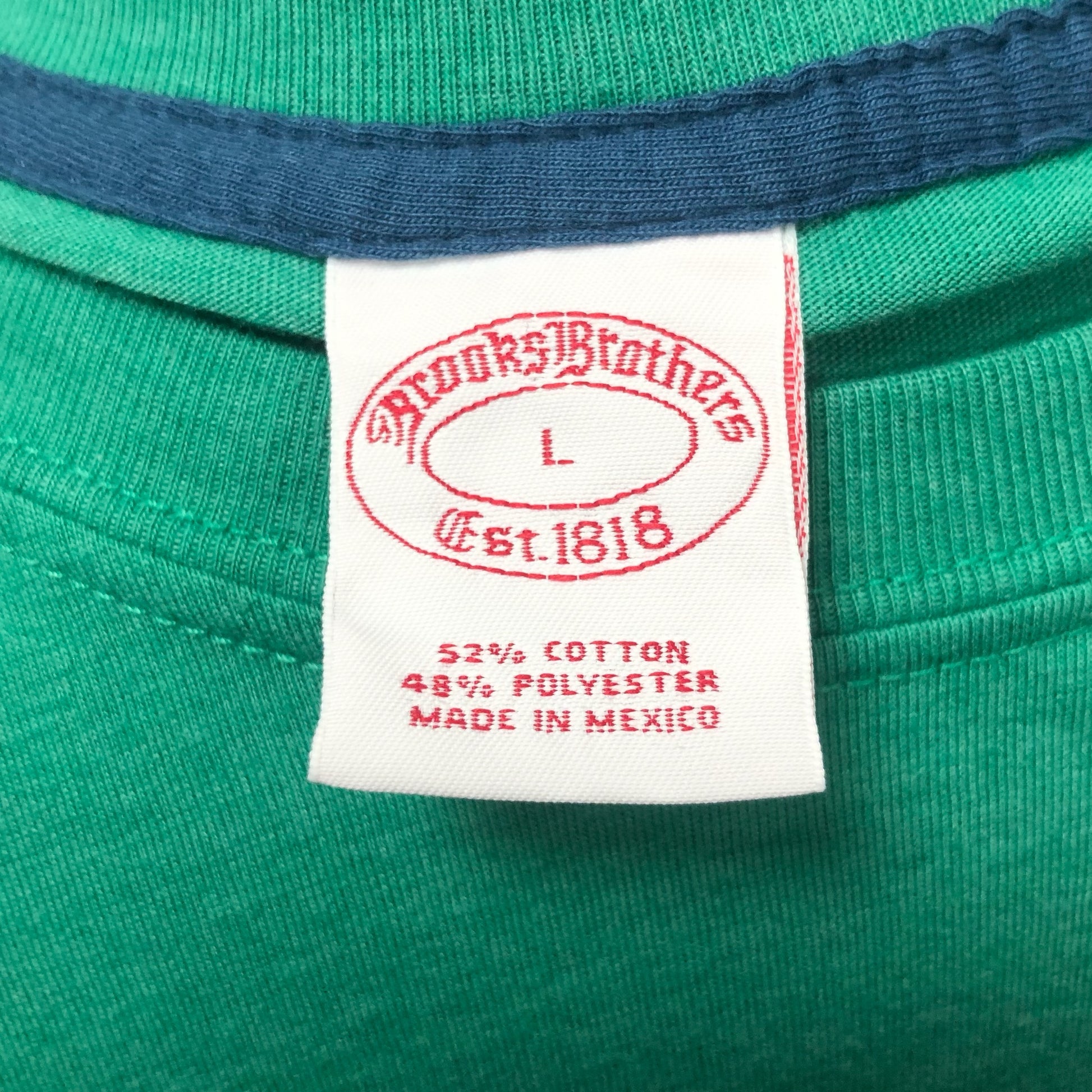 Camiseta cuello redondo Brooks Brothers 🐑 color verde y diseño de logo universitario Talla L (ver descripción)
