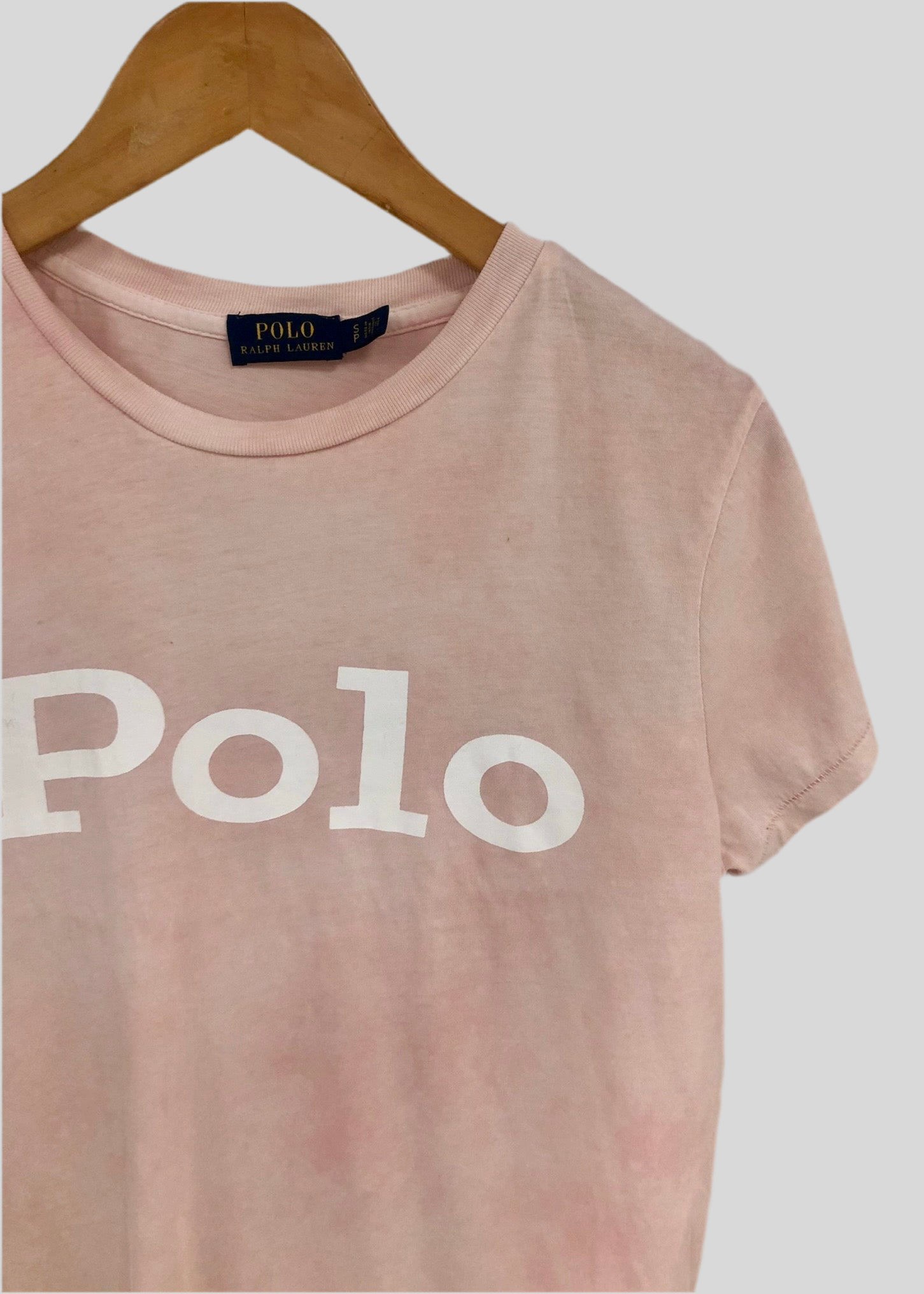 Camiseta cuello redondo de mujer Polo Ralph Lauren 🏇🏼 color rosado con diseño de logo en letras en color blanco Talla S Entalle Regular