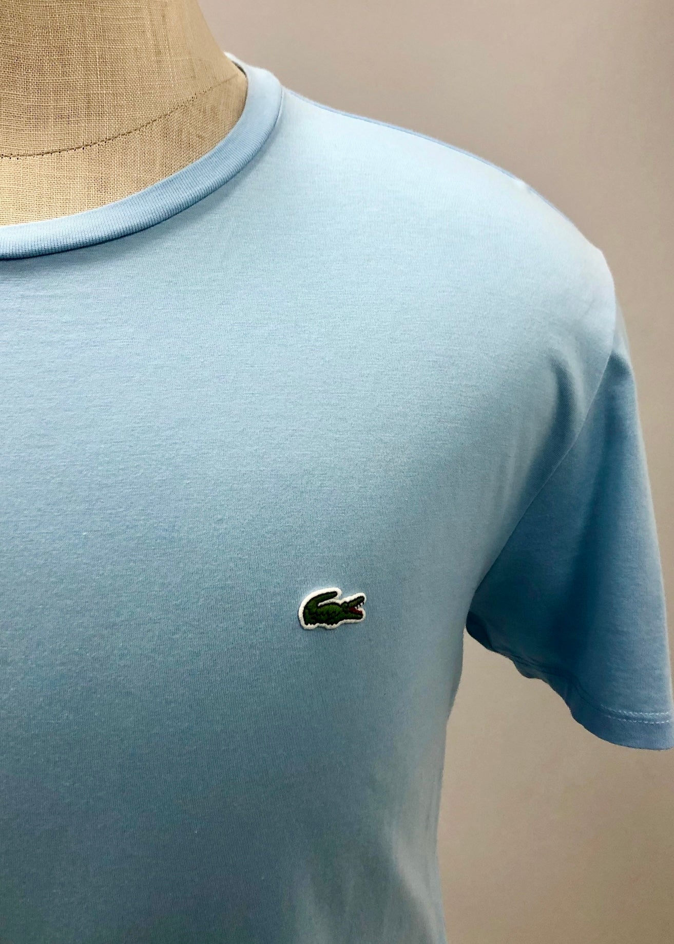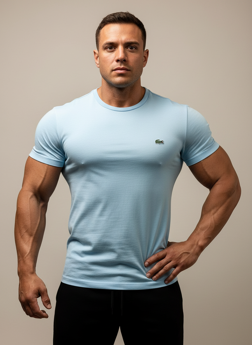 Camiseta cuello Redondo Lacoste 🐊 color celeste con el logo bordado tradicional Talla Large