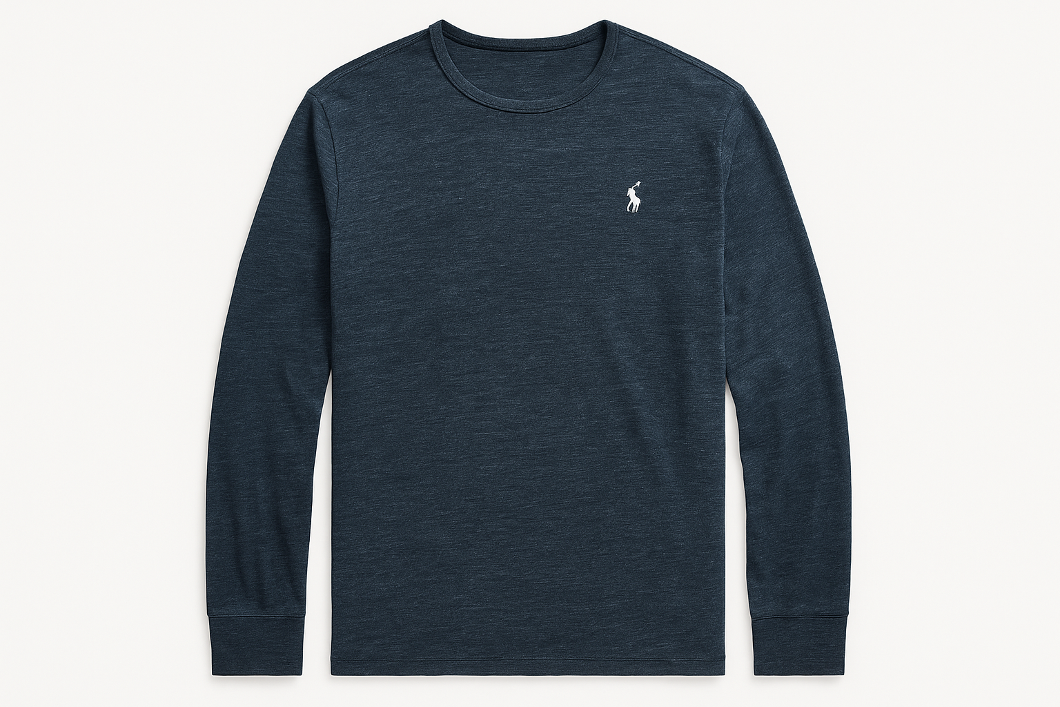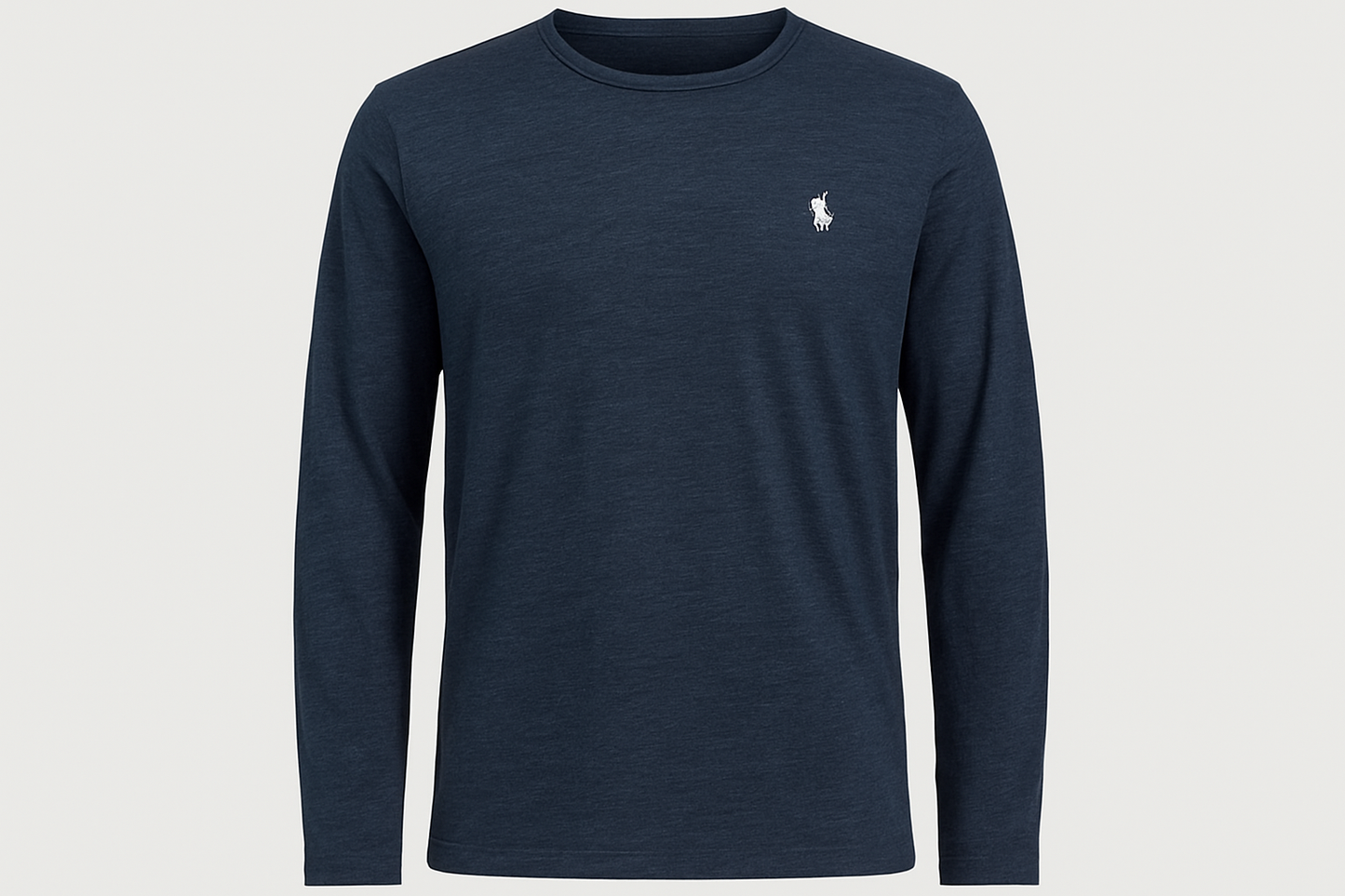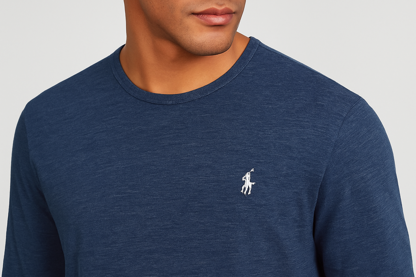Camiseta cuello redondo Polo Ralph Lauren 🏇🏼 color azul manga larga Talla Medium Custom Slim Fit