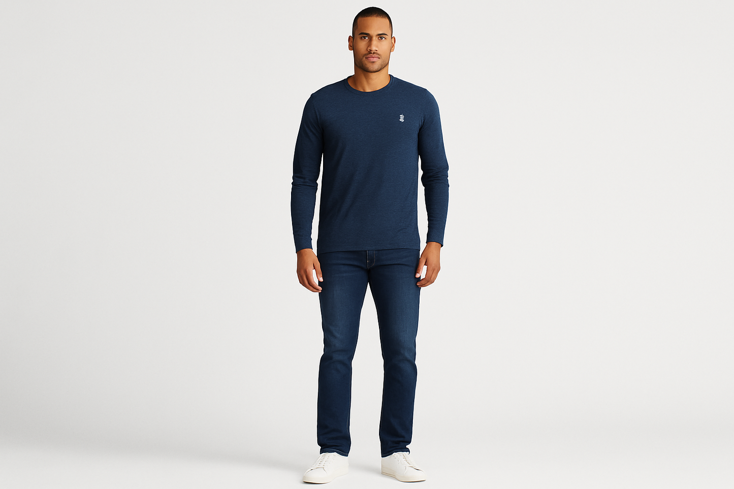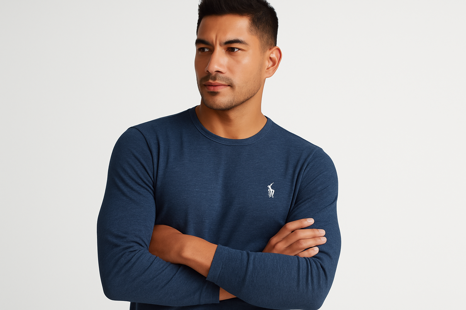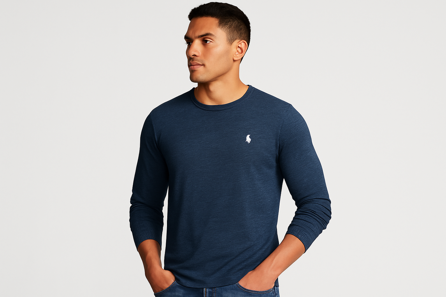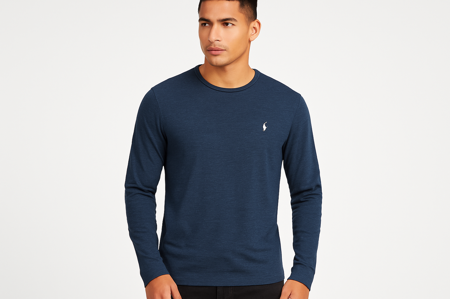 Camiseta cuello redondo Polo Ralph Lauren 🏇🏼 color azul manga larga Talla Medium Custom Slim Fit