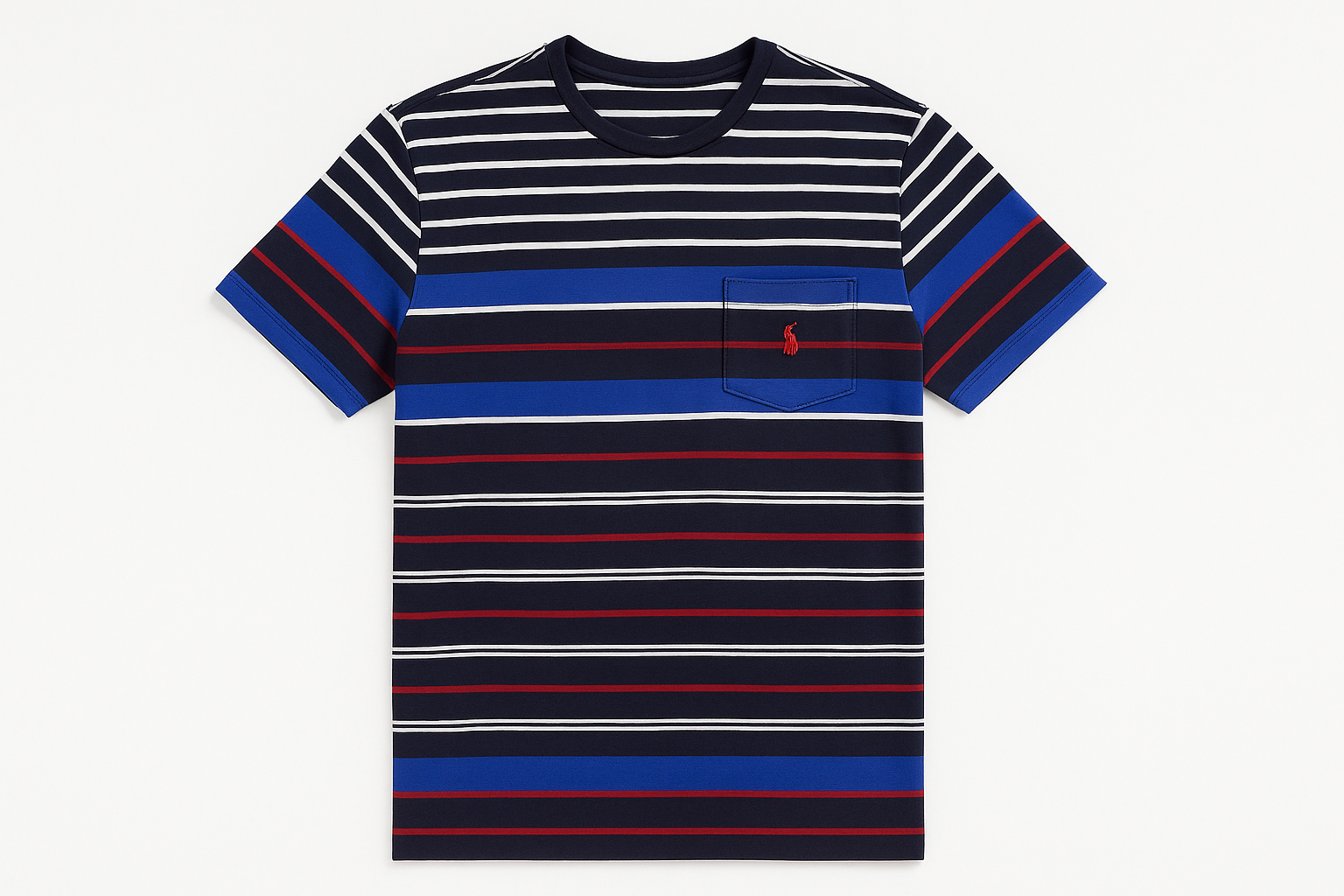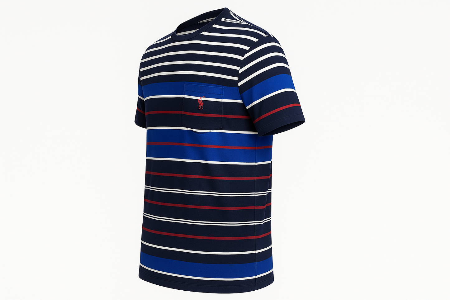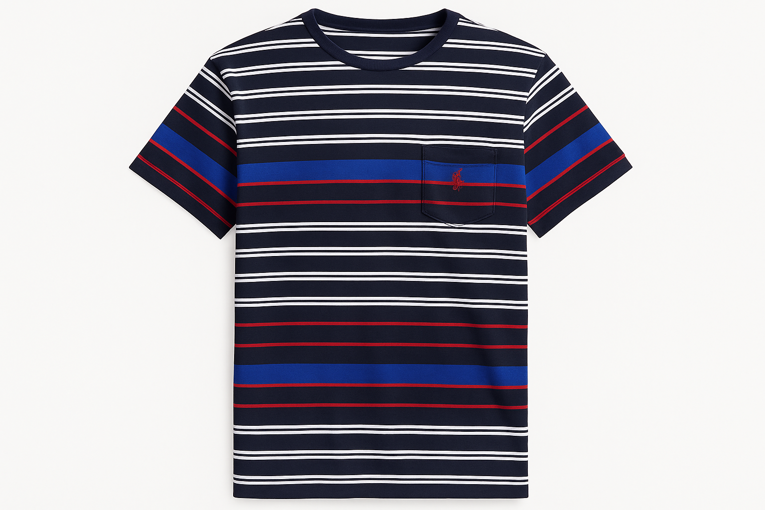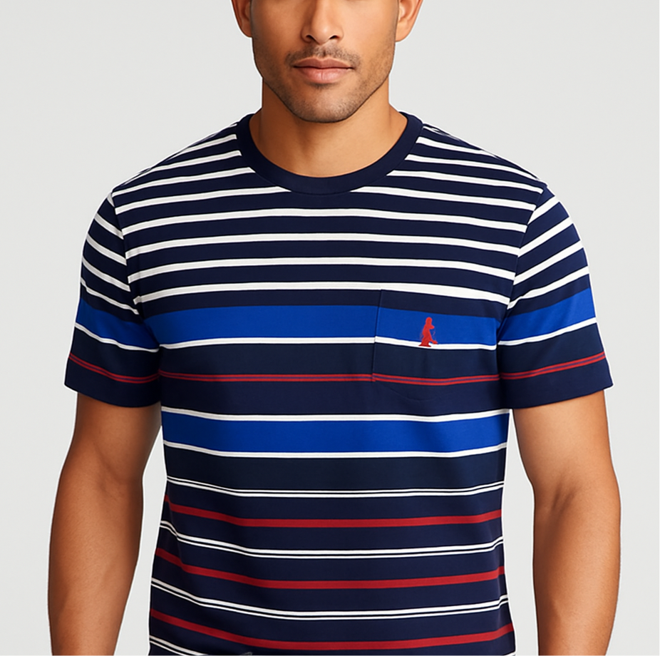 Camiseta cuello Redondo Polo Ralph Lauren 🏇🏼 con patron de rayas en azul, blanco y rojo manga corta Talla Large Entalle Clásico
