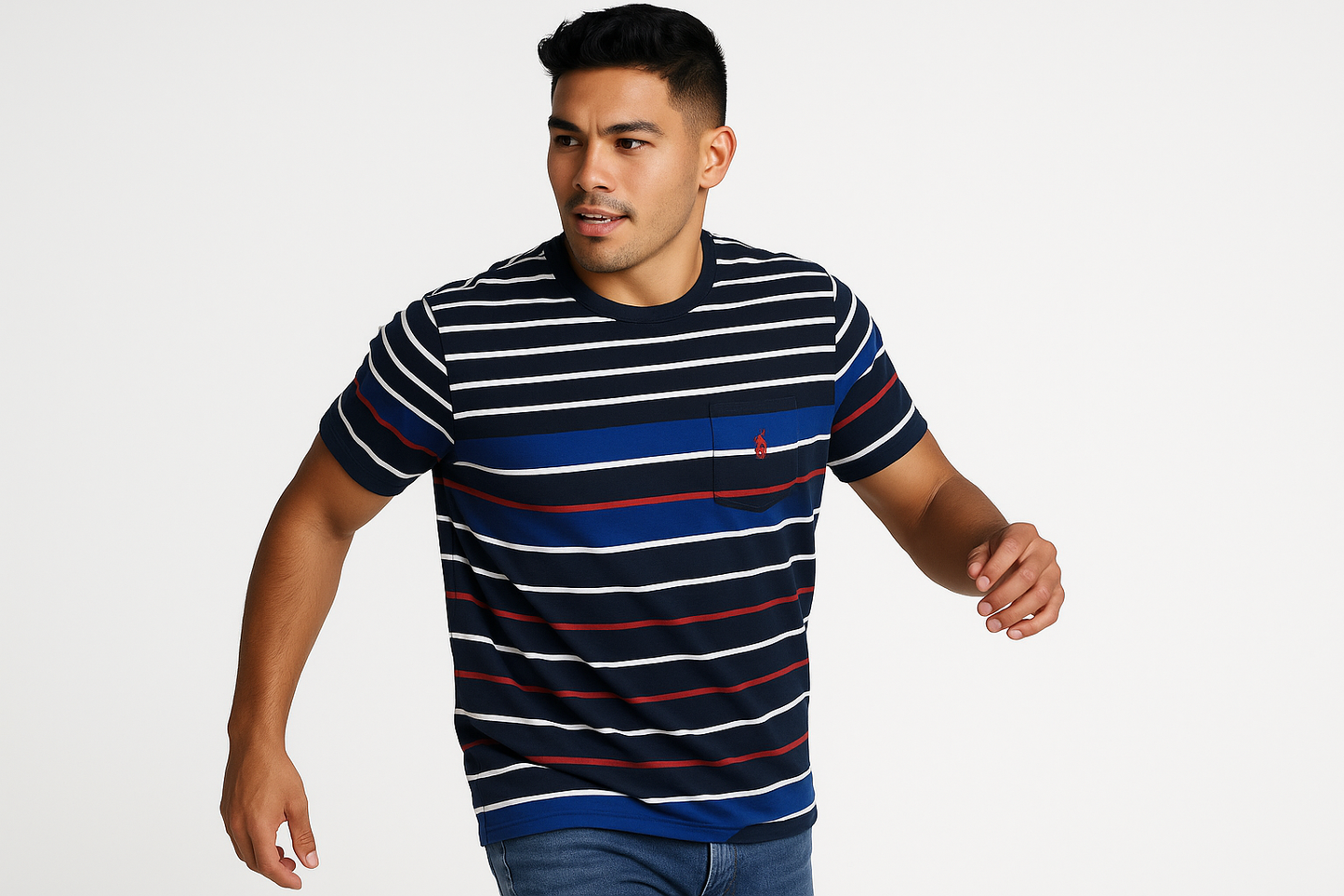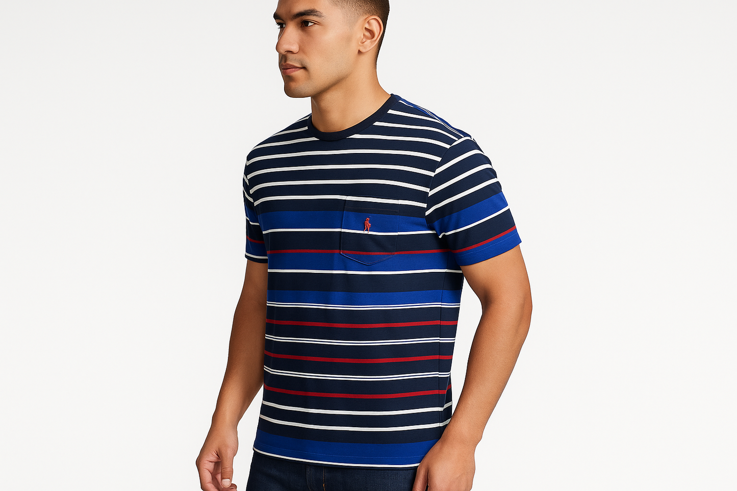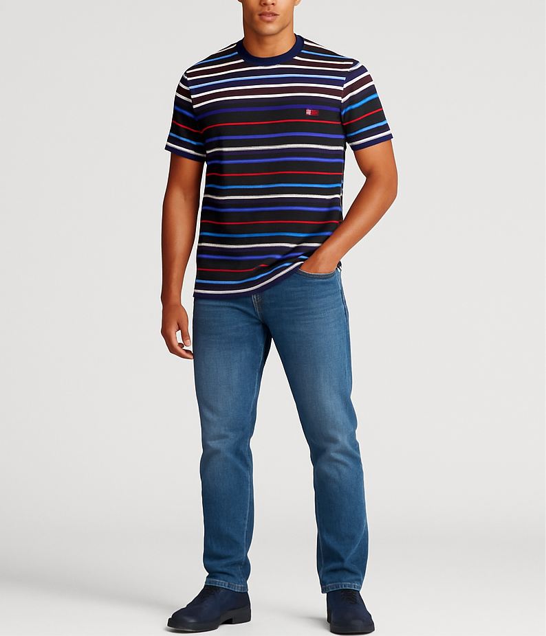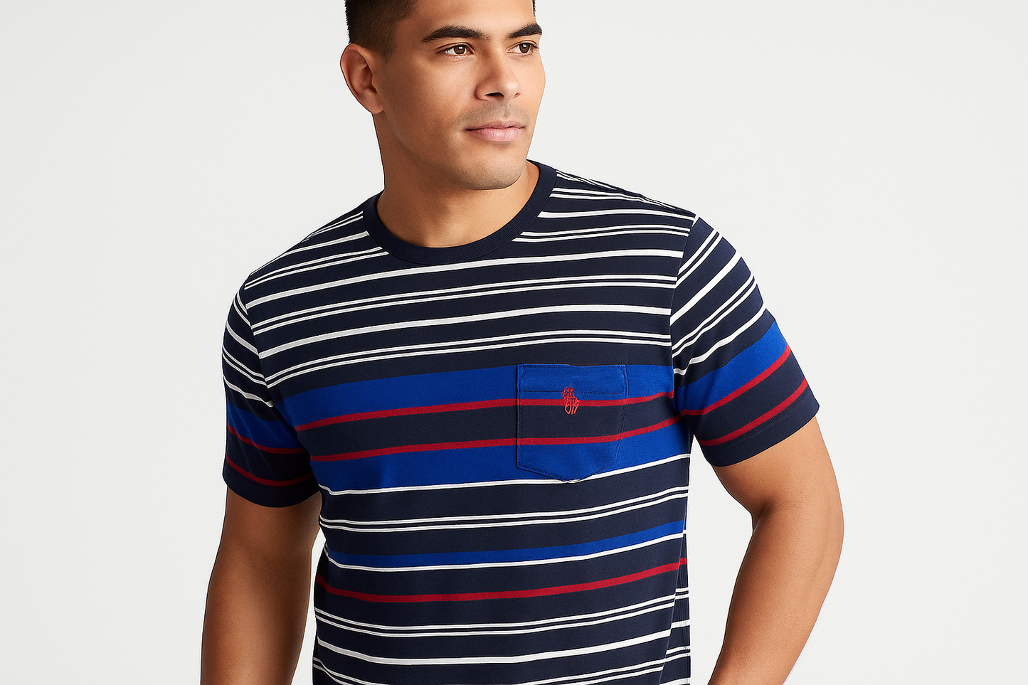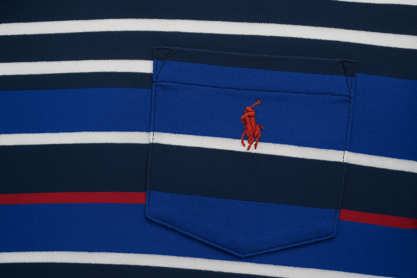 Camiseta cuello Redondo Polo Ralph Lauren 🏇🏼 con patron de rayas en azul, blanco y rojo manga corta Talla Large Entalle Clásico