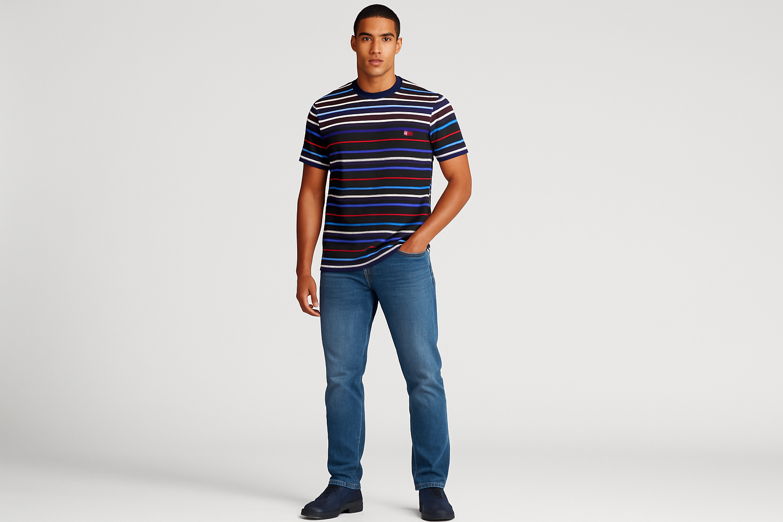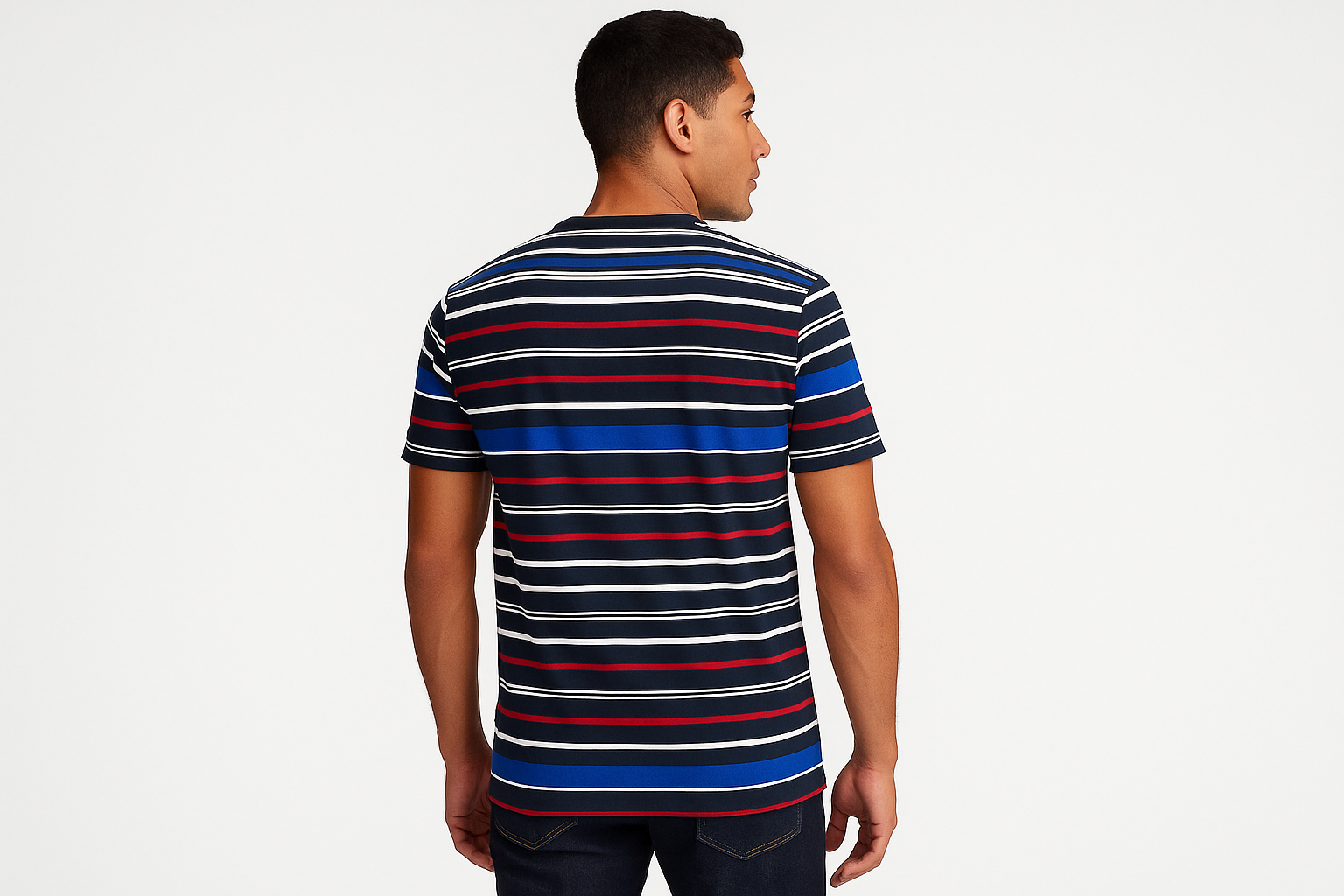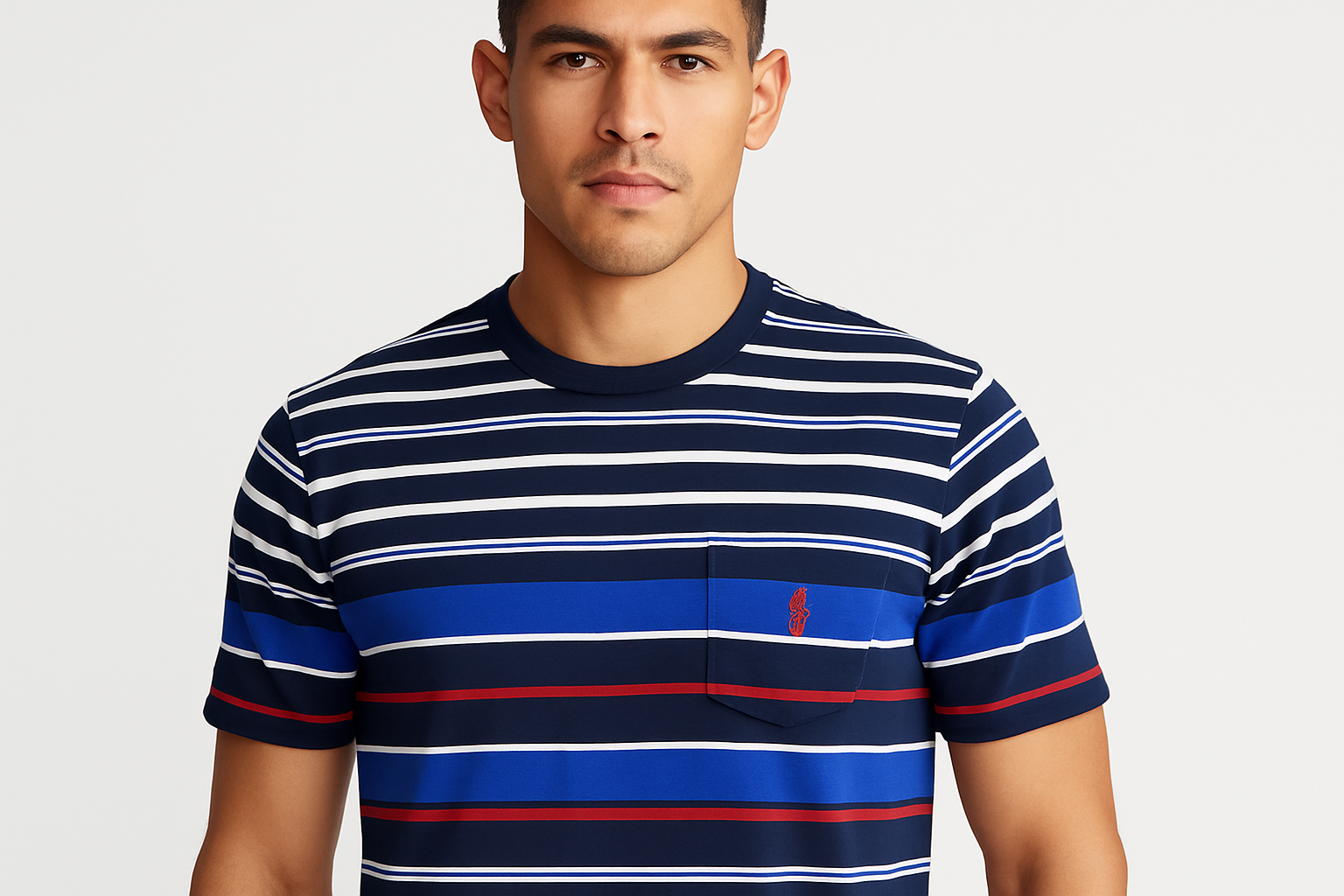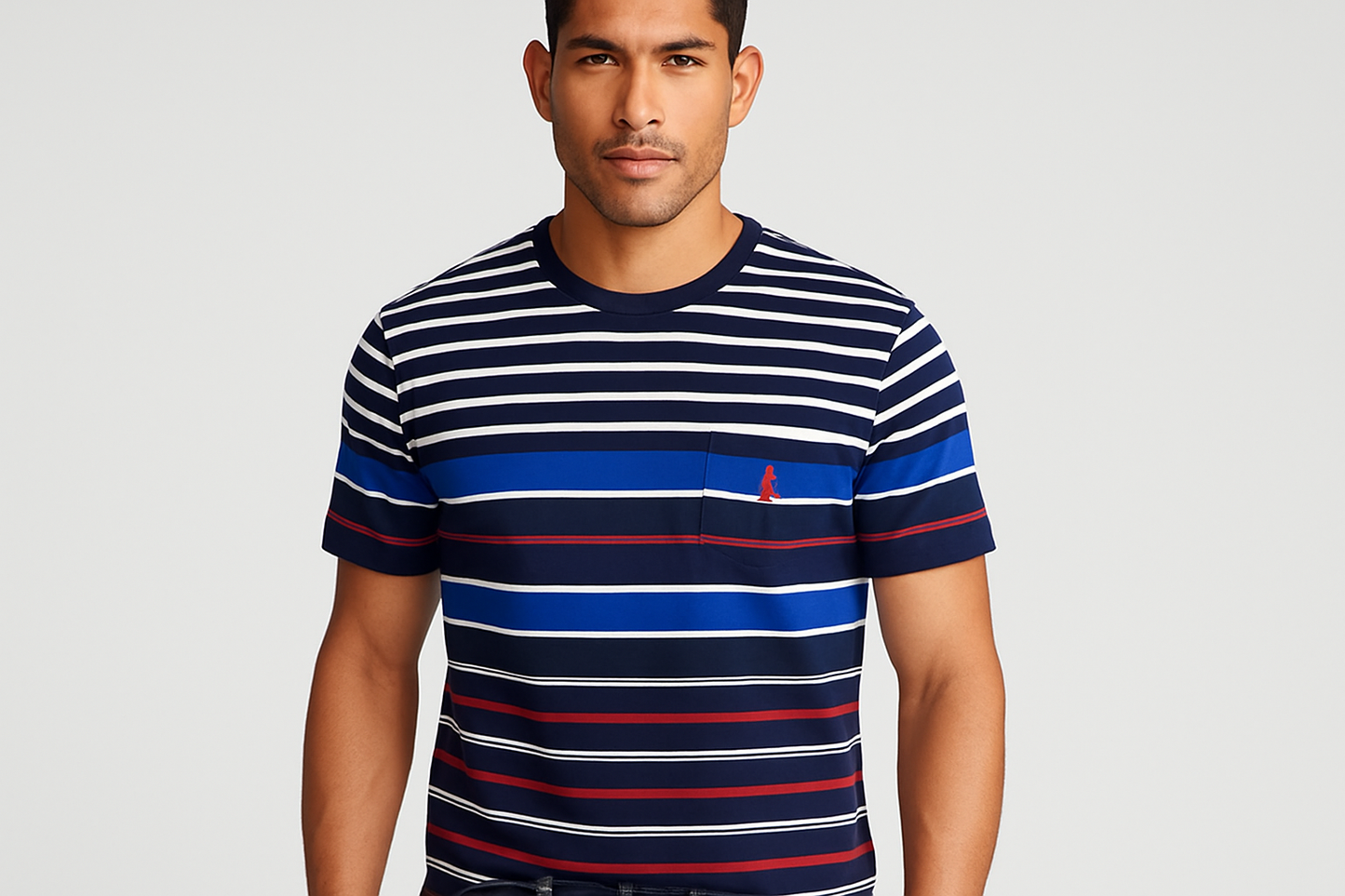Camiseta cuello Redondo Polo Ralph Lauren 🏇🏼 con patron de rayas en azul, blanco y rojo manga corta Talla Large Entalle Clásico