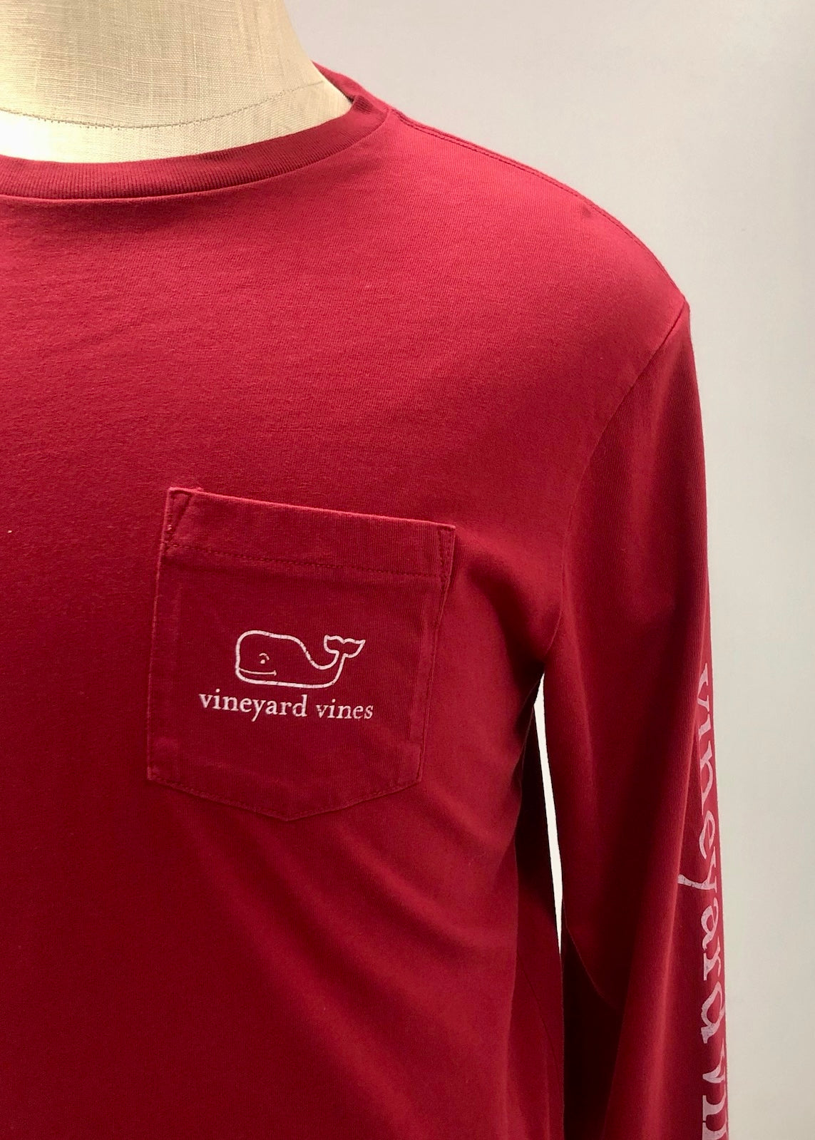 Camiseta de bolsillo Vineyard Vines 🐳 - Talla Medium - Manga larga - Color rojo y logo estampado en bolsillo y en la parte trasera diseño de ballena en blanco - 100% algodón - Cuello redondo - Como nuevo 10/10 - Precio $35 💵 DM 📩 Por si tiene alguna consulta