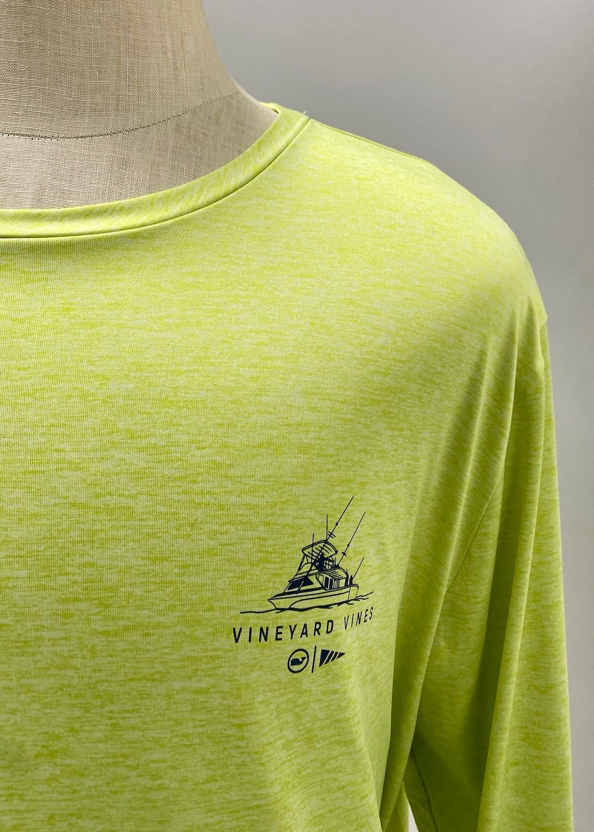 Camiseta cuello redondo Vineyard Vines 🐳 Performance color verde claro con Diseño de pesca Talla XXL