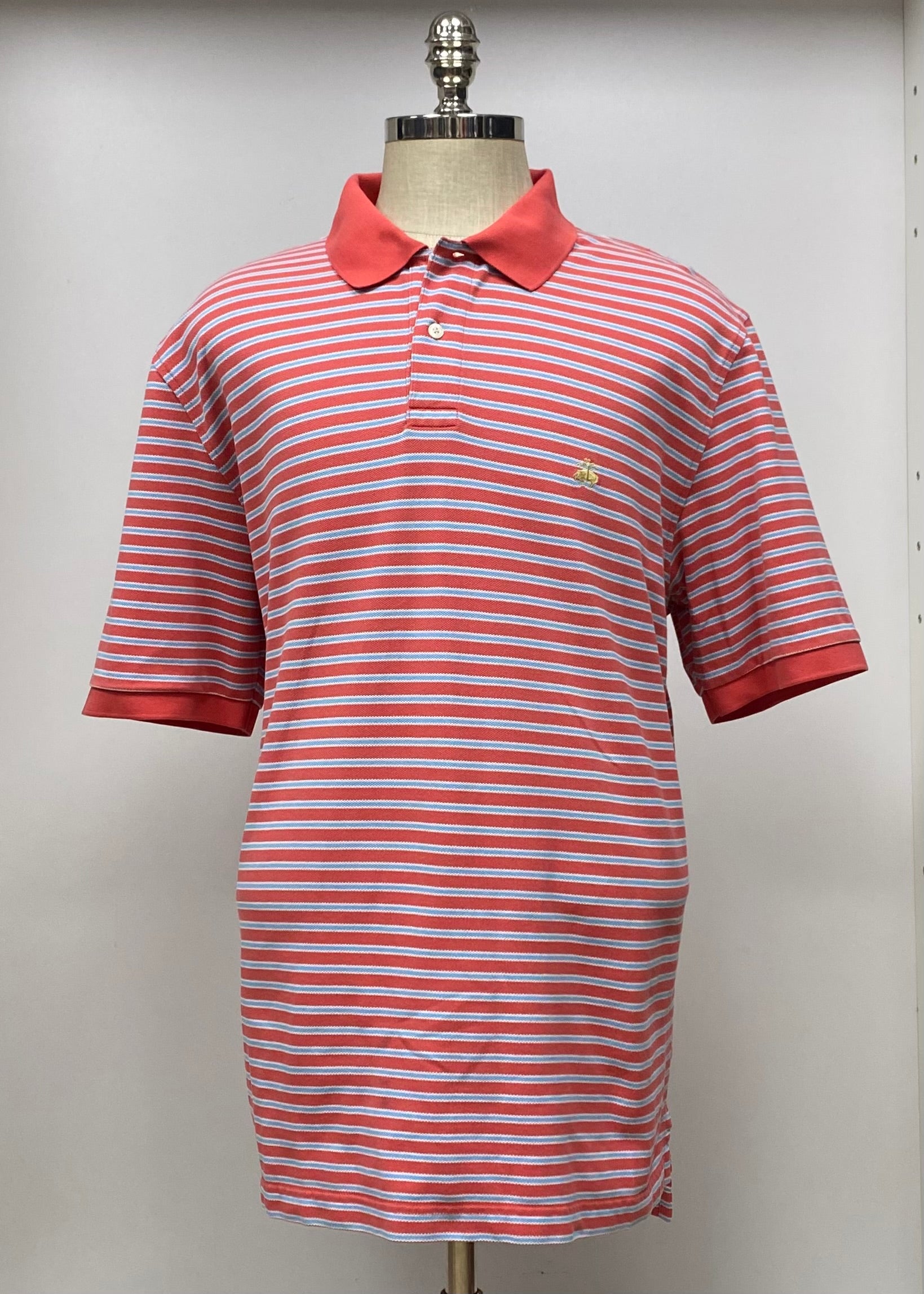 Camiseta Polo Brooks Brothers 🐑 - Talla XL - Entalle Regular - Tela 100% algodón malla - Manga corta - Color rosado magenta con patrón de rayas celeste y blanco con logo bordado en dorado - Como nuevo 10/10 - Precio $35 💵 DM 📩 Por si tiene alguna consulta