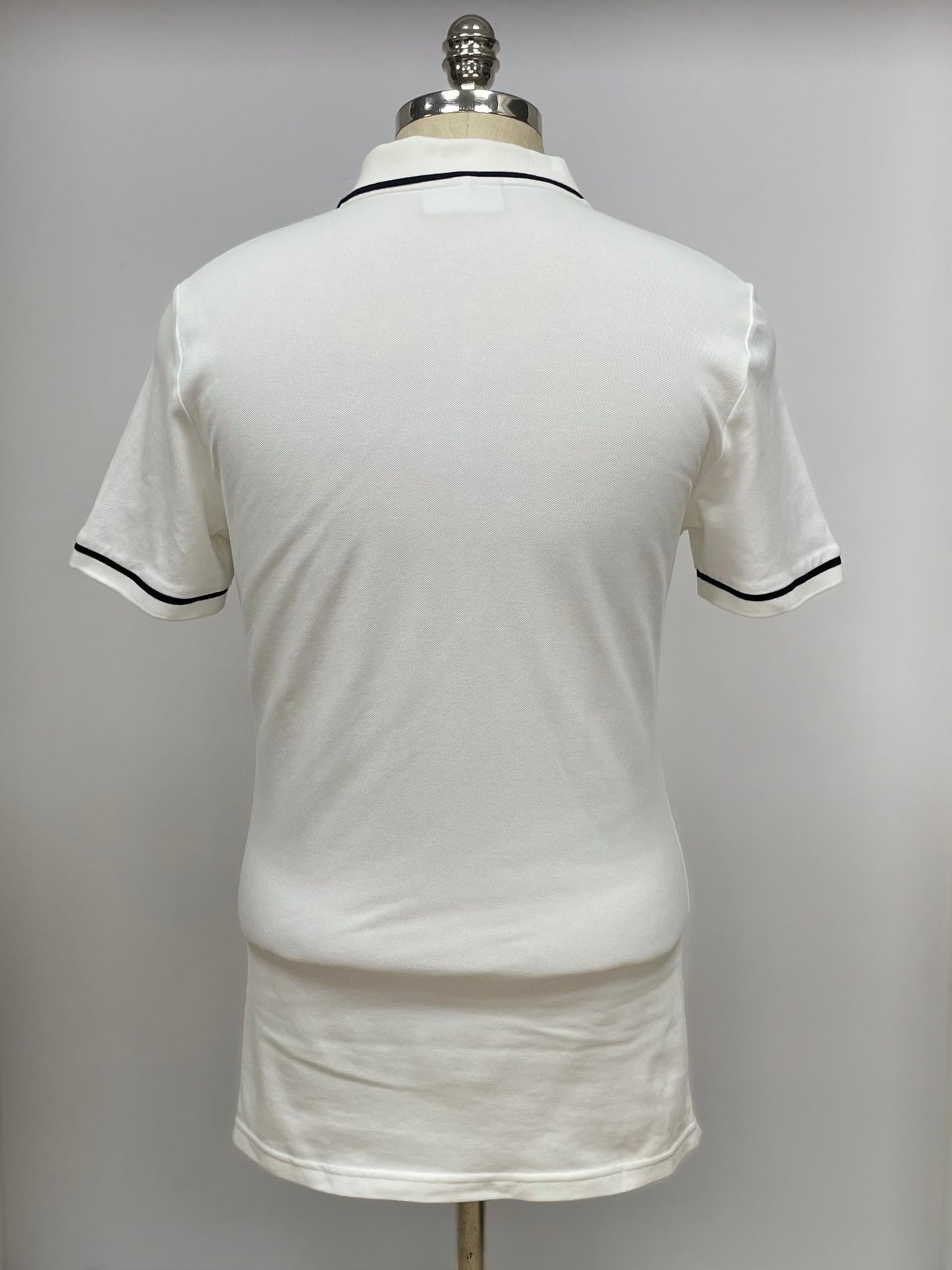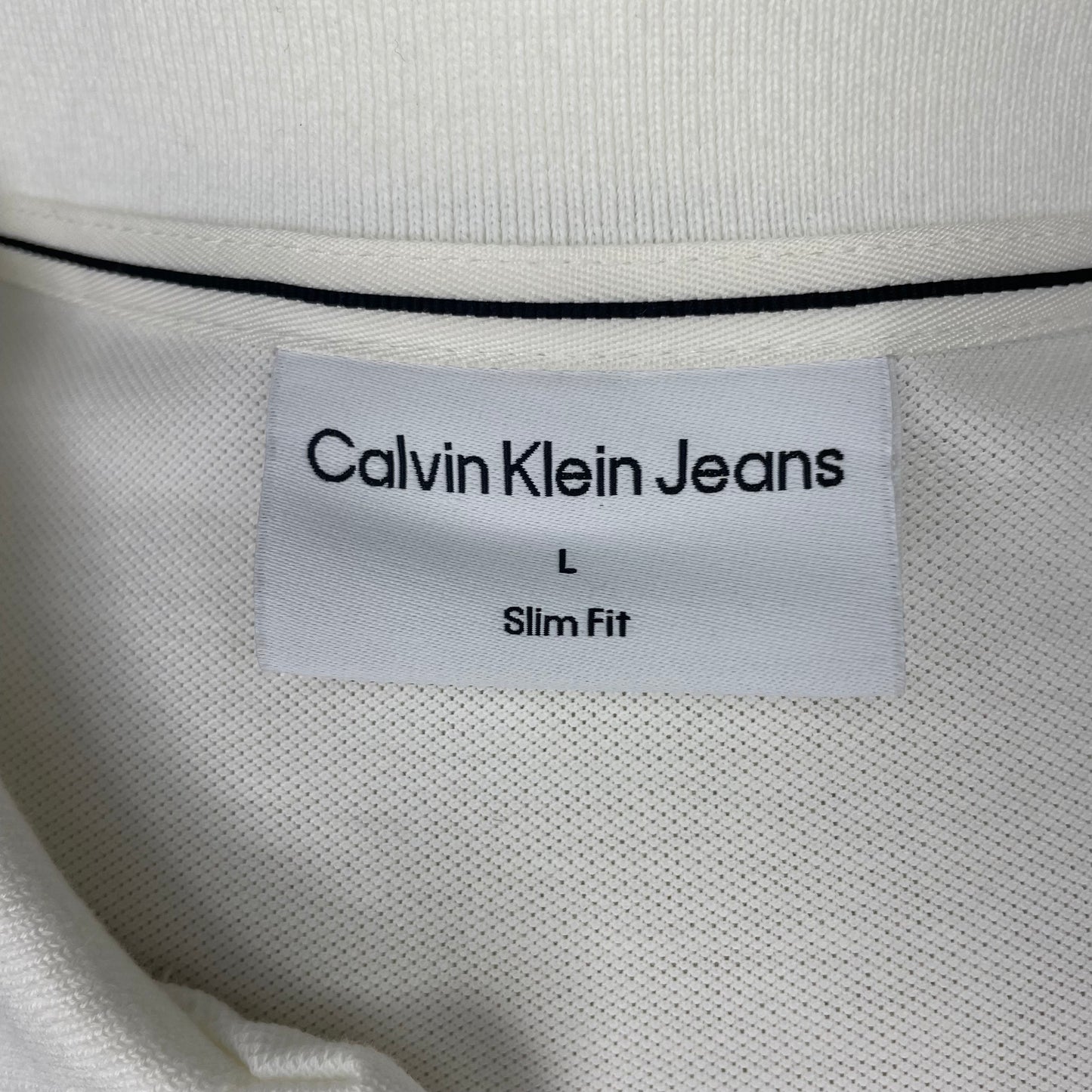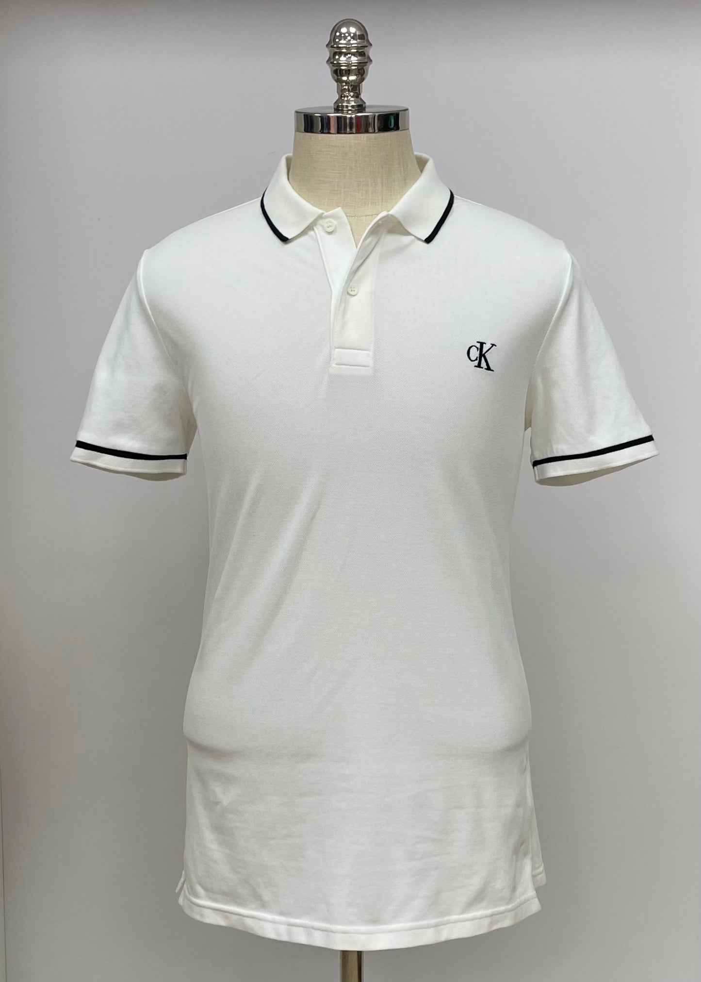 Camiseta Polo Calvin Klein CK color blanco con diseño de lineas en color negro Talla L Entalle Slim Fit