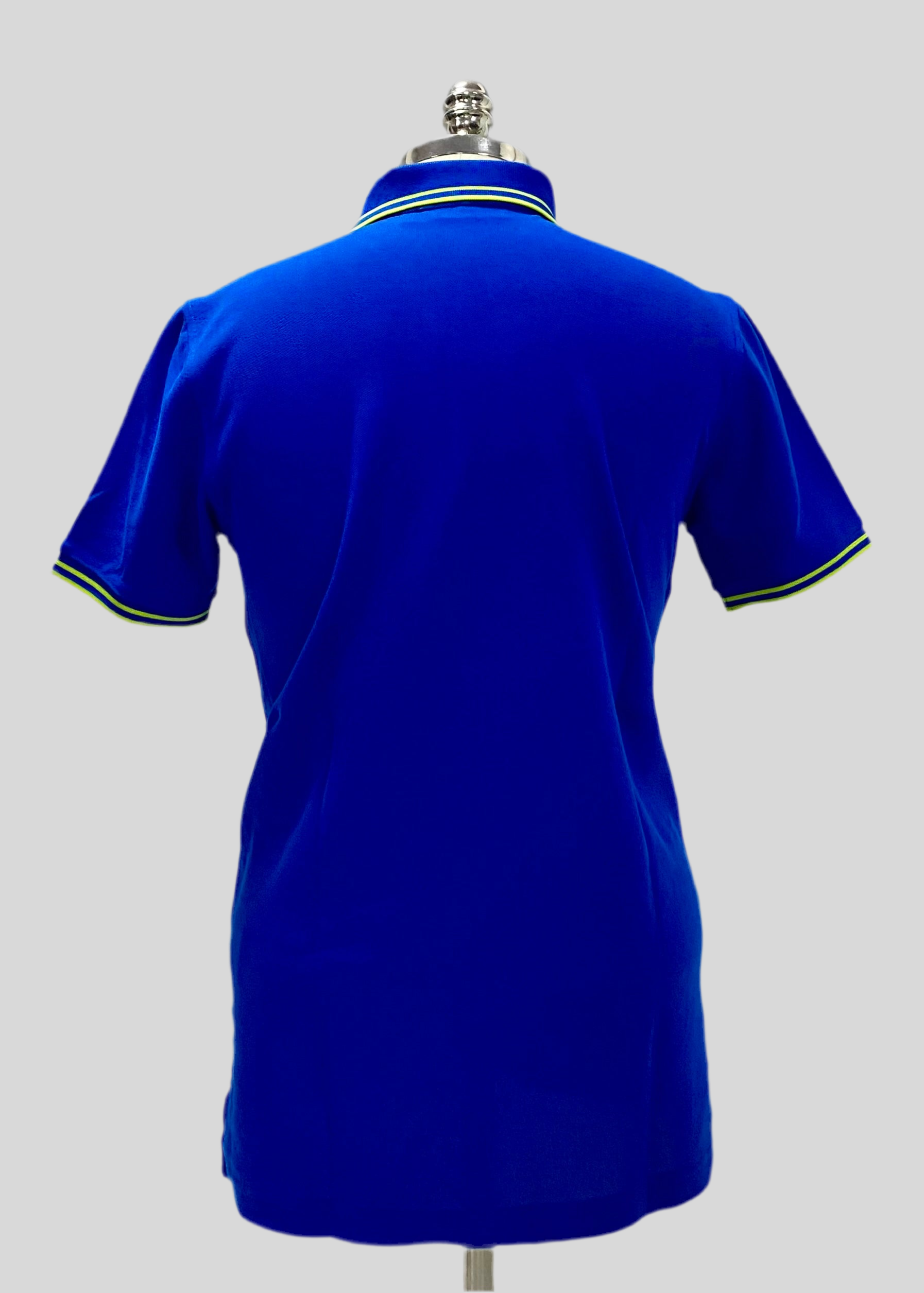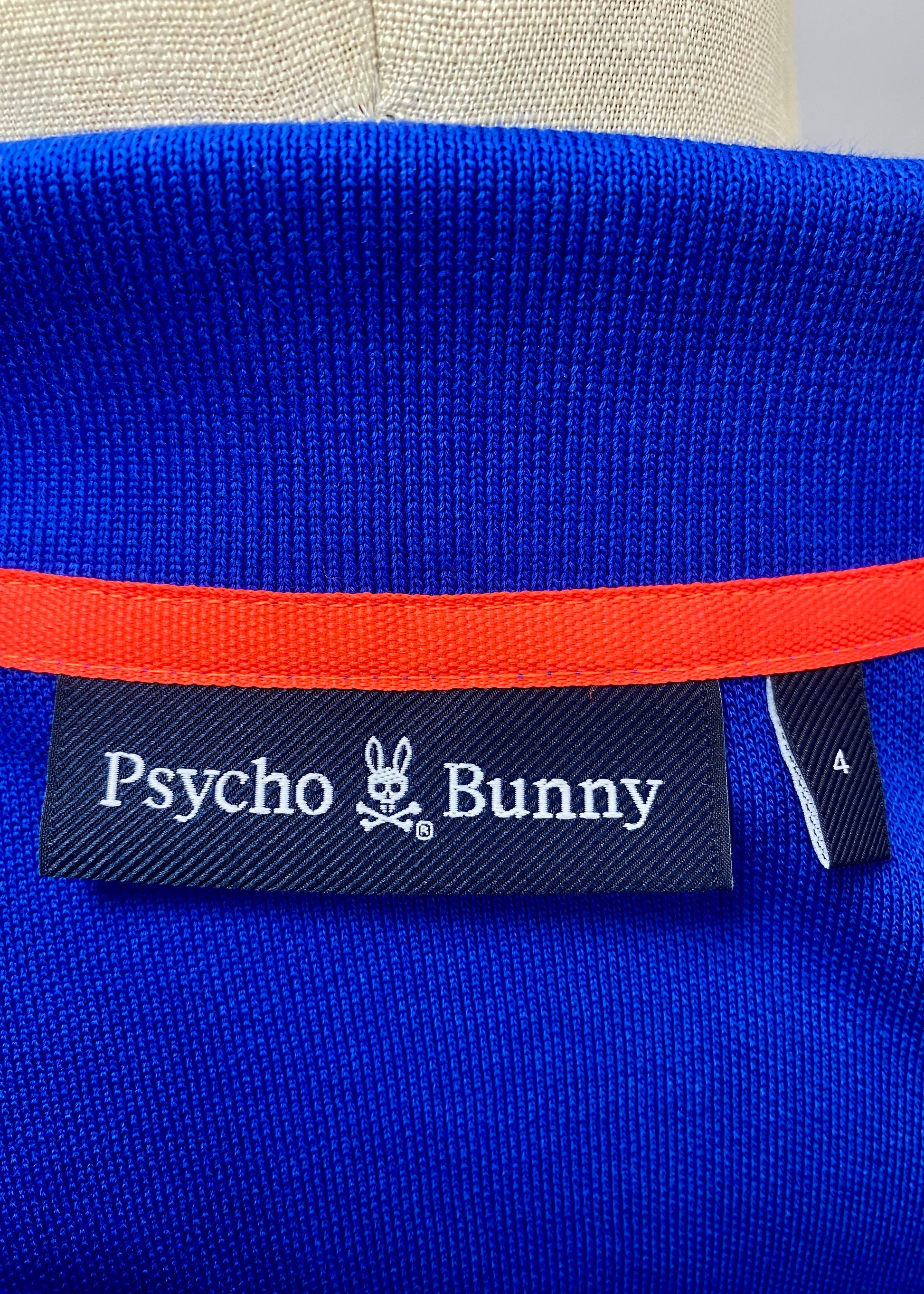 Camiseta Polo Psycho Bunny 🐰 Pique en color azul con diseño de cuello en verde intenso Talla S Entalle Regular