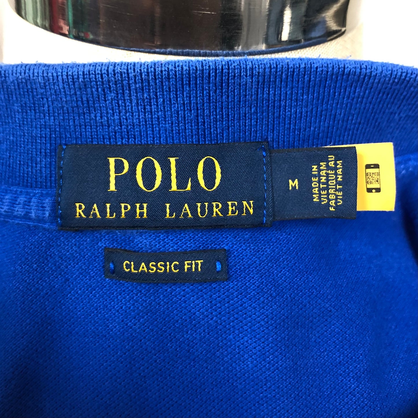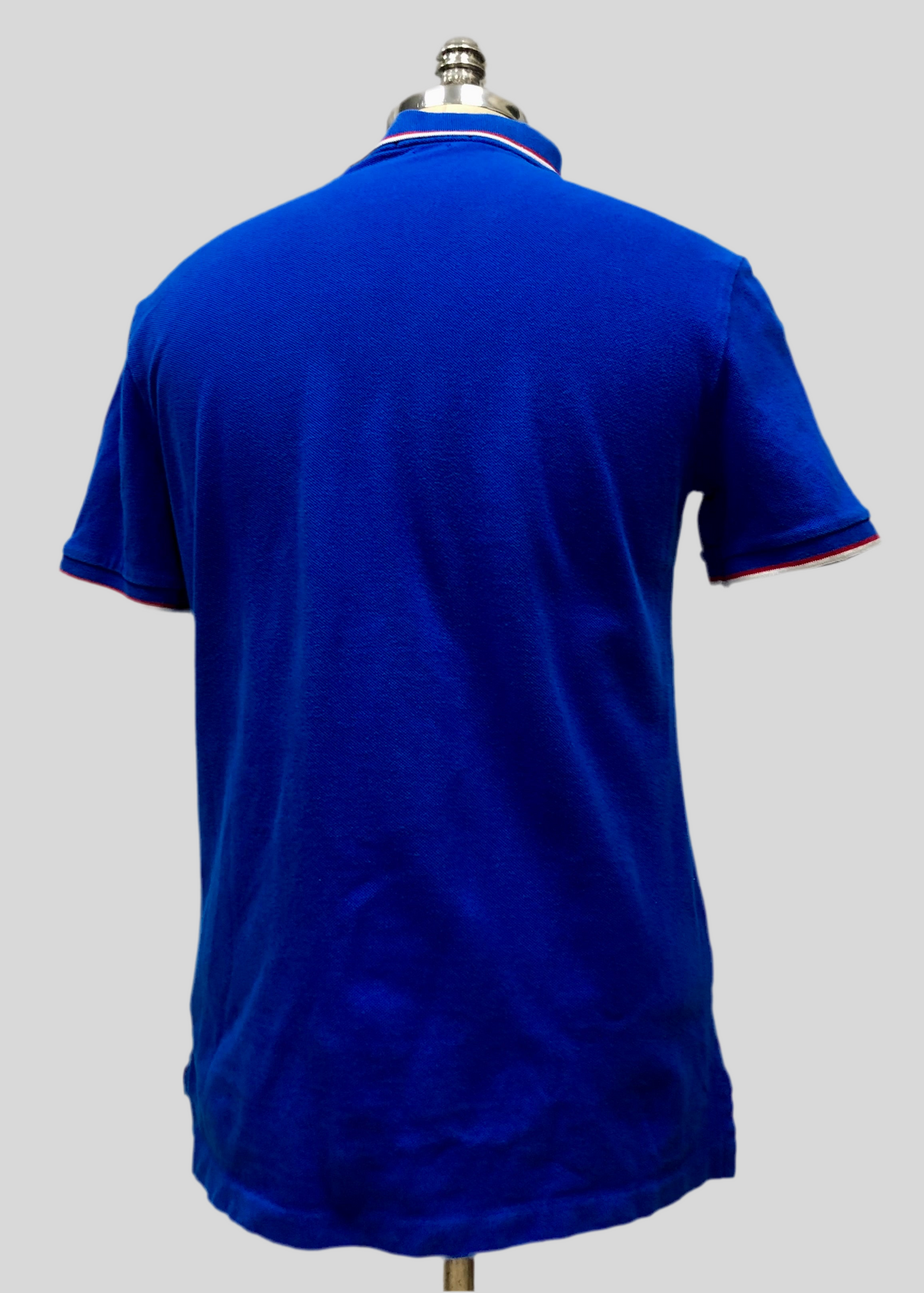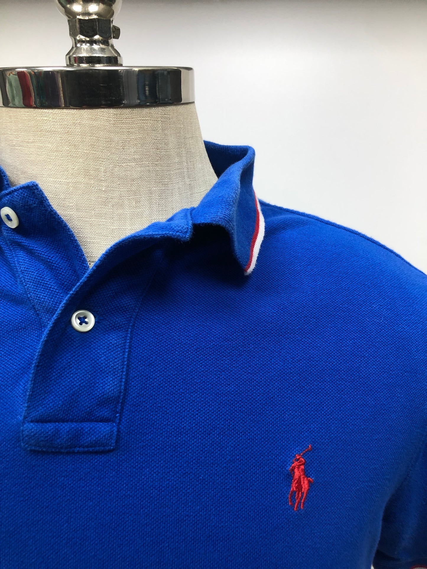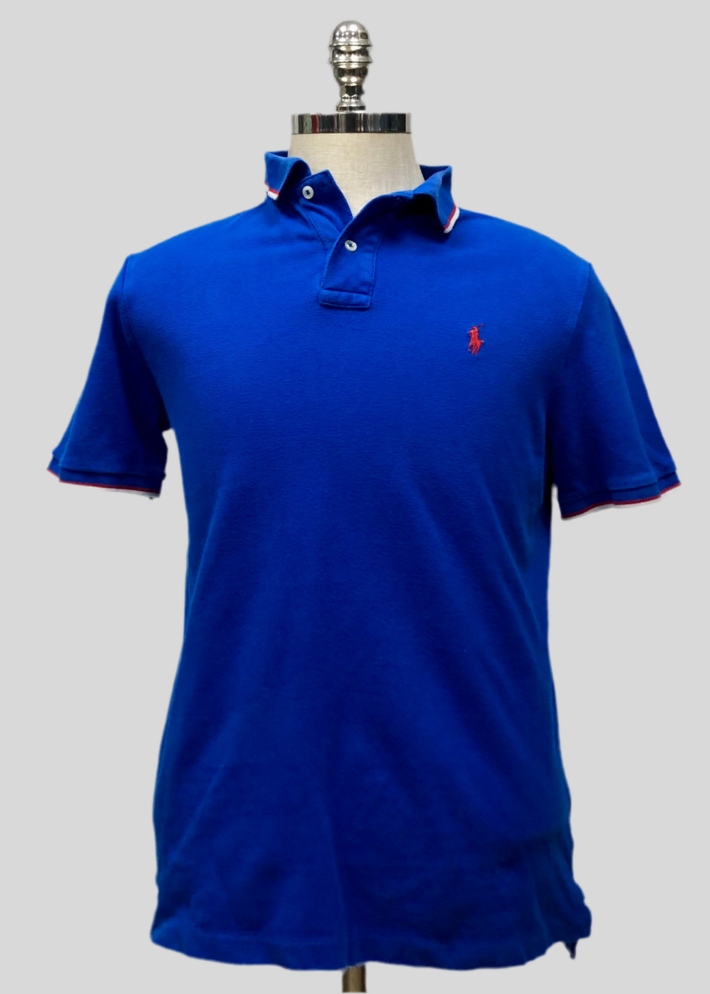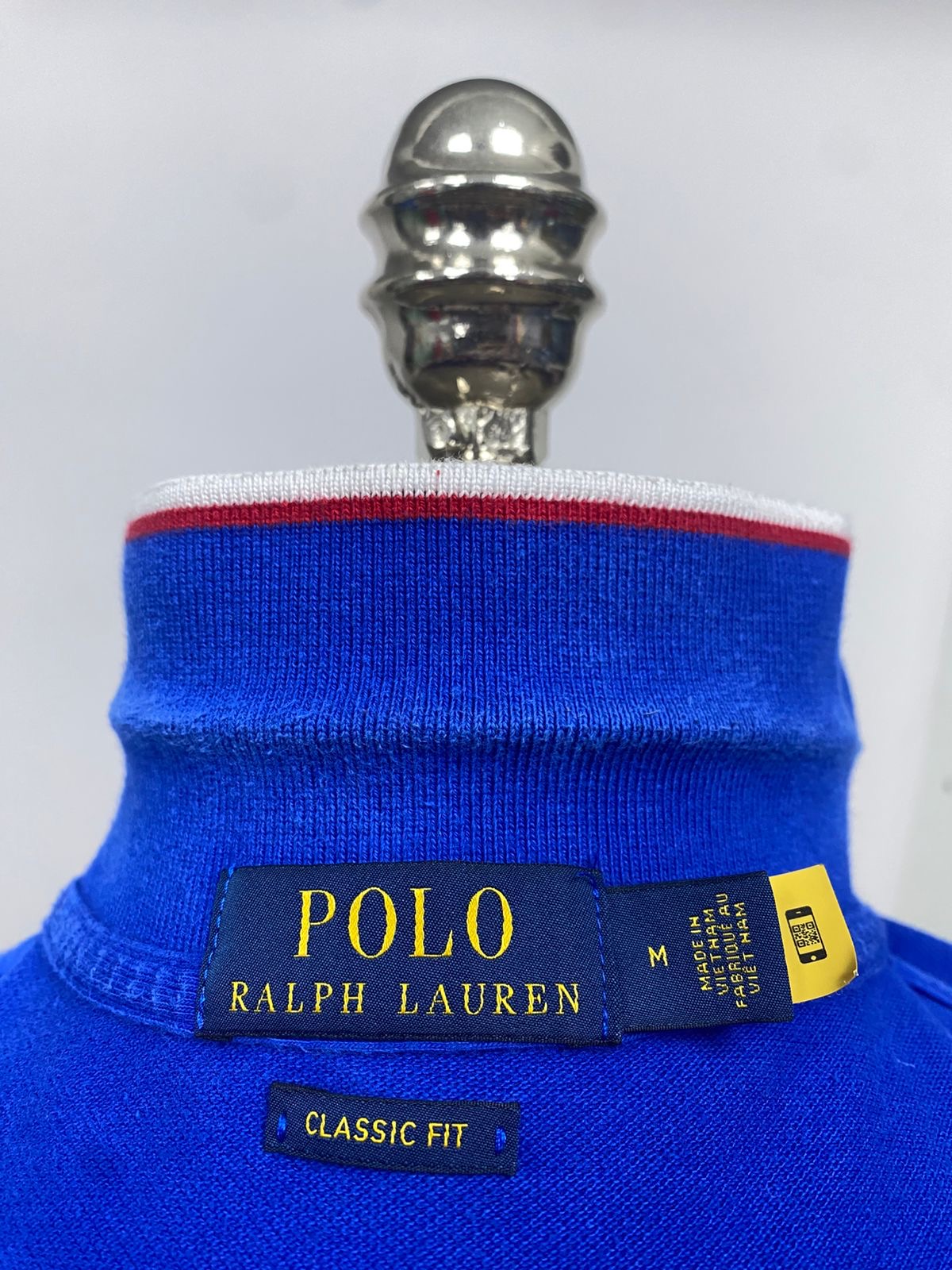 Camiseta Polo Ralph Lauren 🏇🏼 color azul con diseño en el cuello en blanco y rojo Talla M Entalle Clásico (ver descripción)