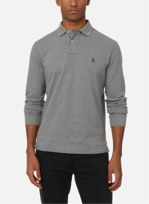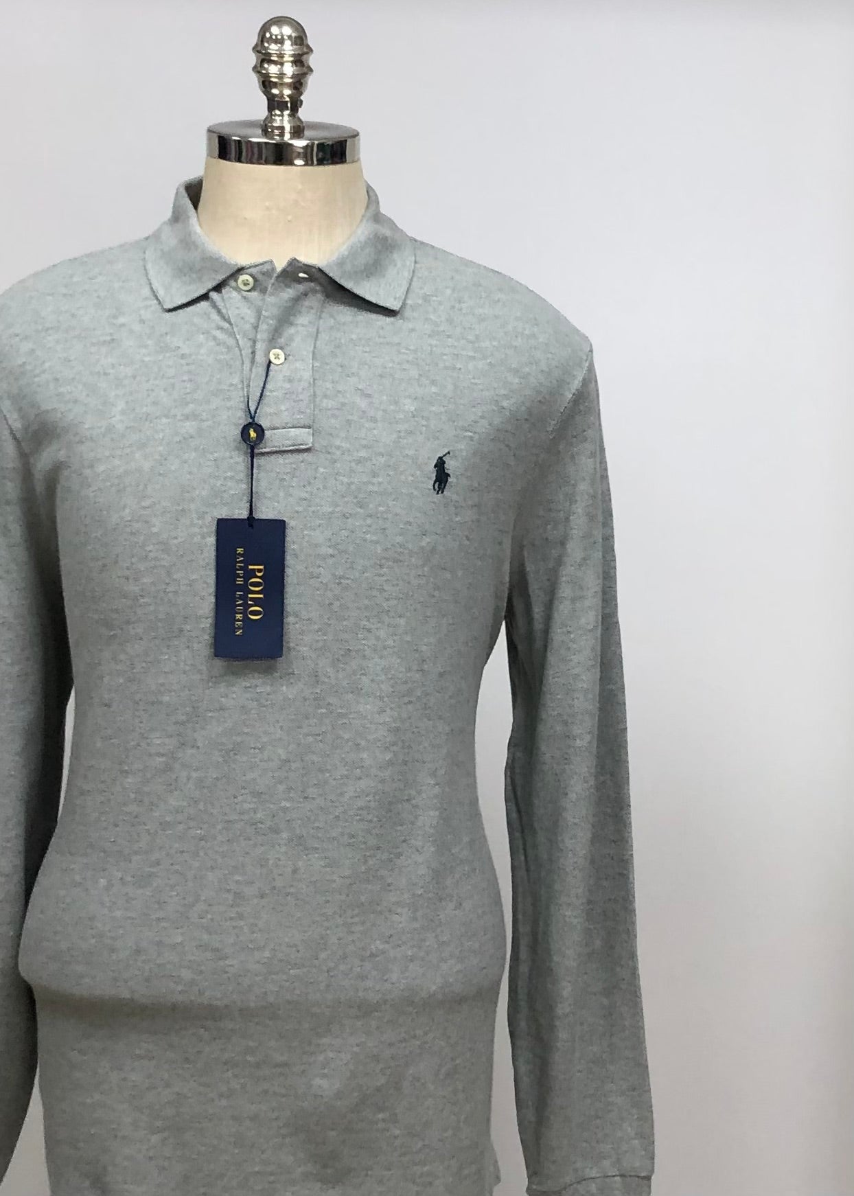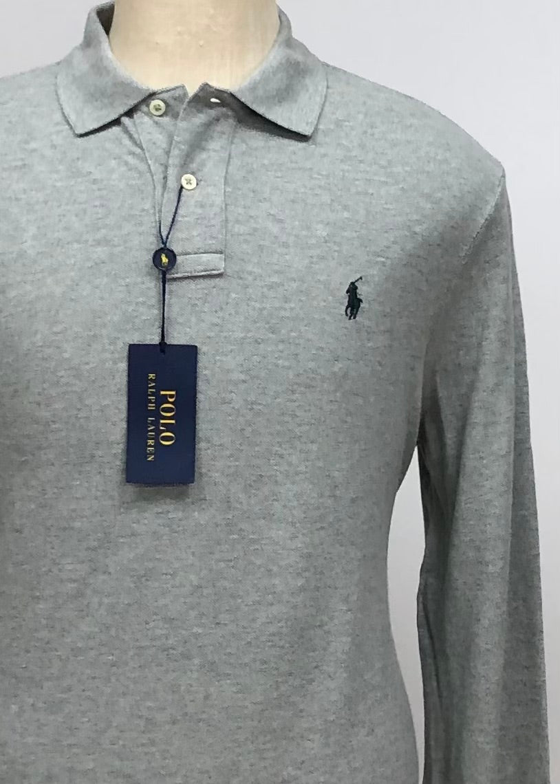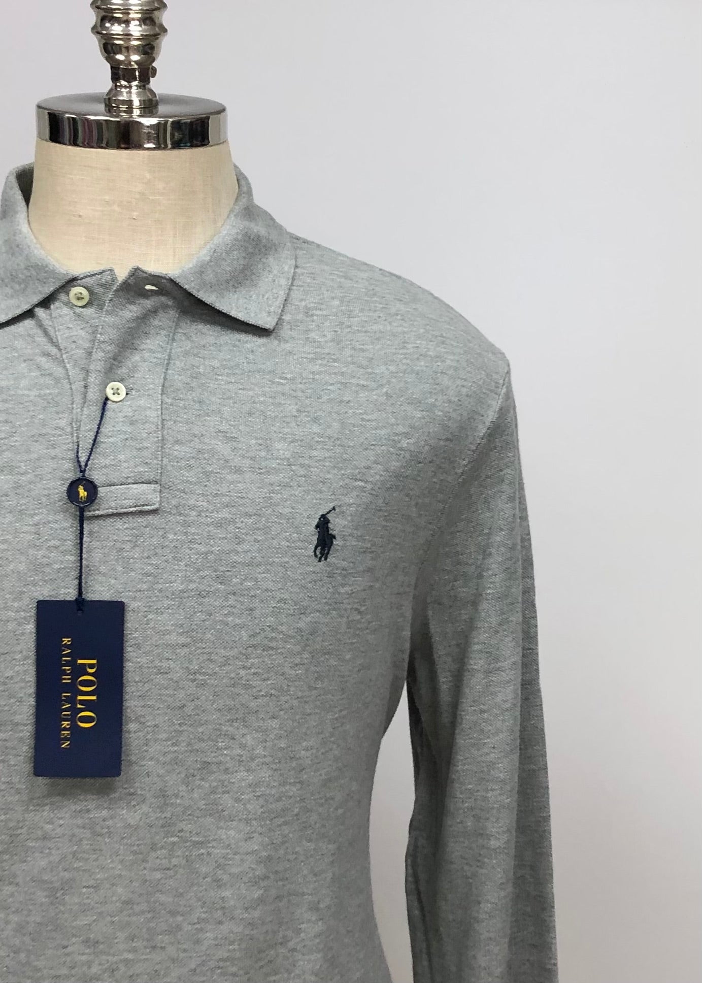 Camiseta Polo Ralph Lauren 🏇🏼color gris claro Manga larga Talla L Entalle Clásico