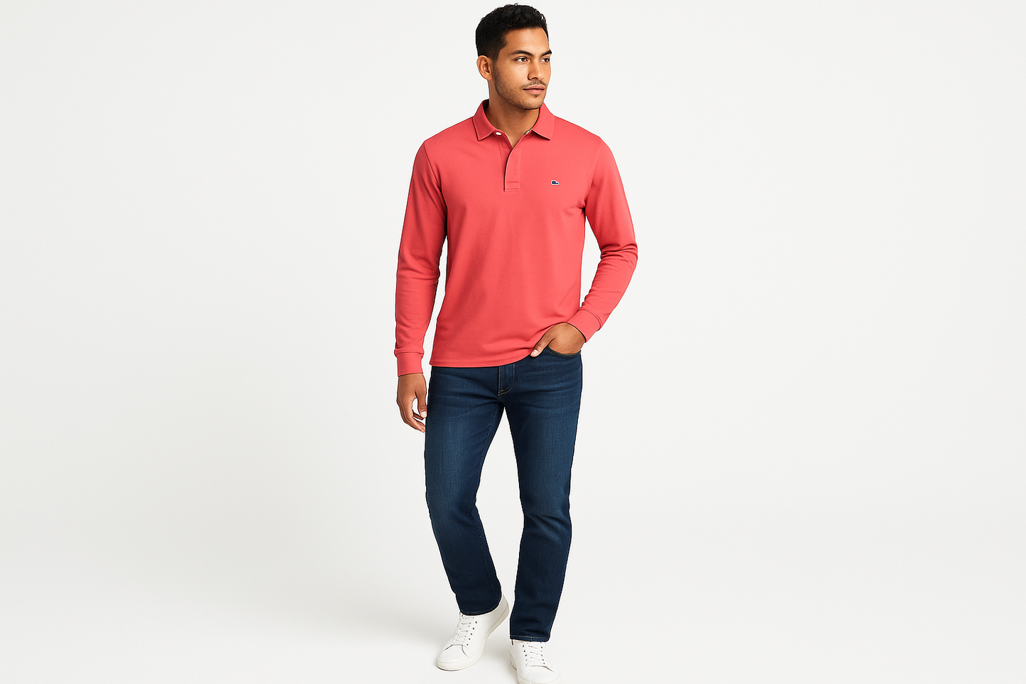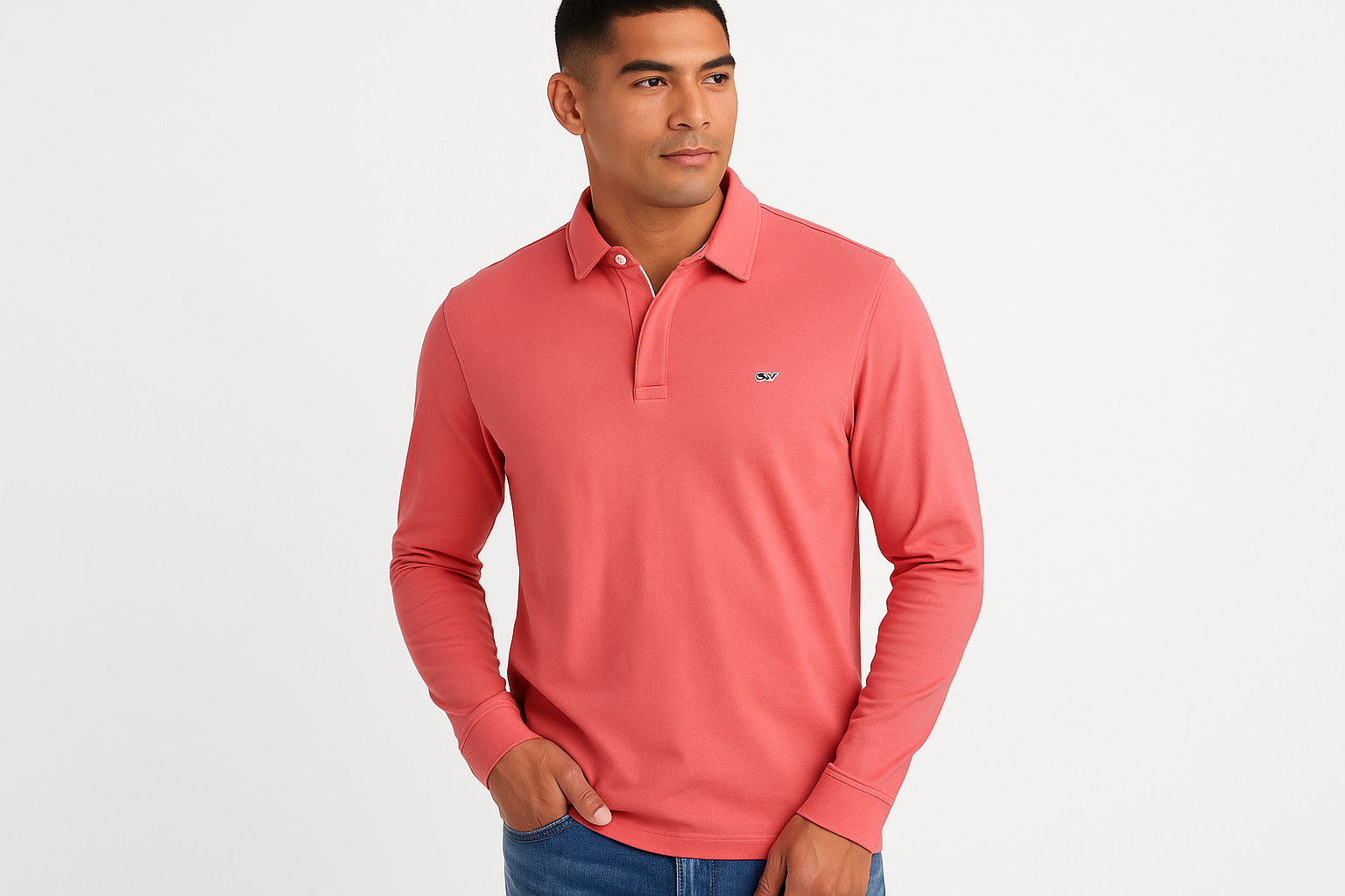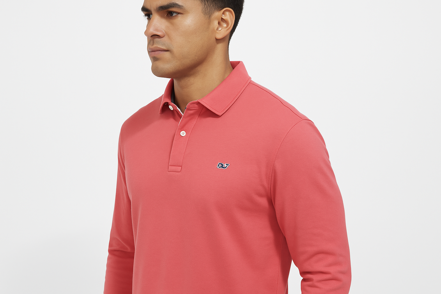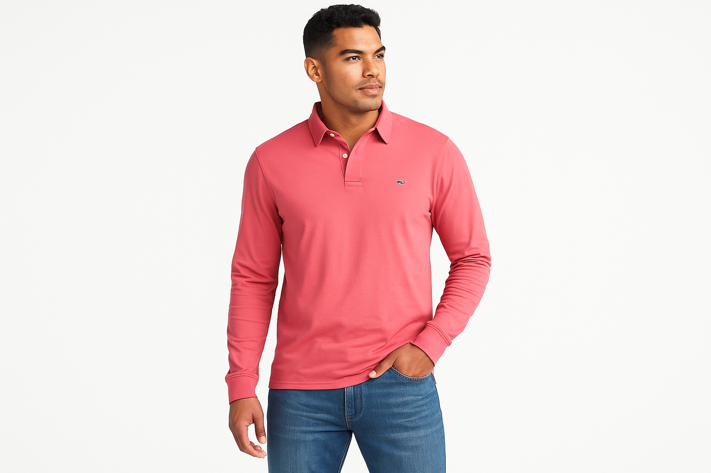 Camiseta Polo Vineyard Vines 🐳 color rosado magenta manga larga Talla L Entalle Regular