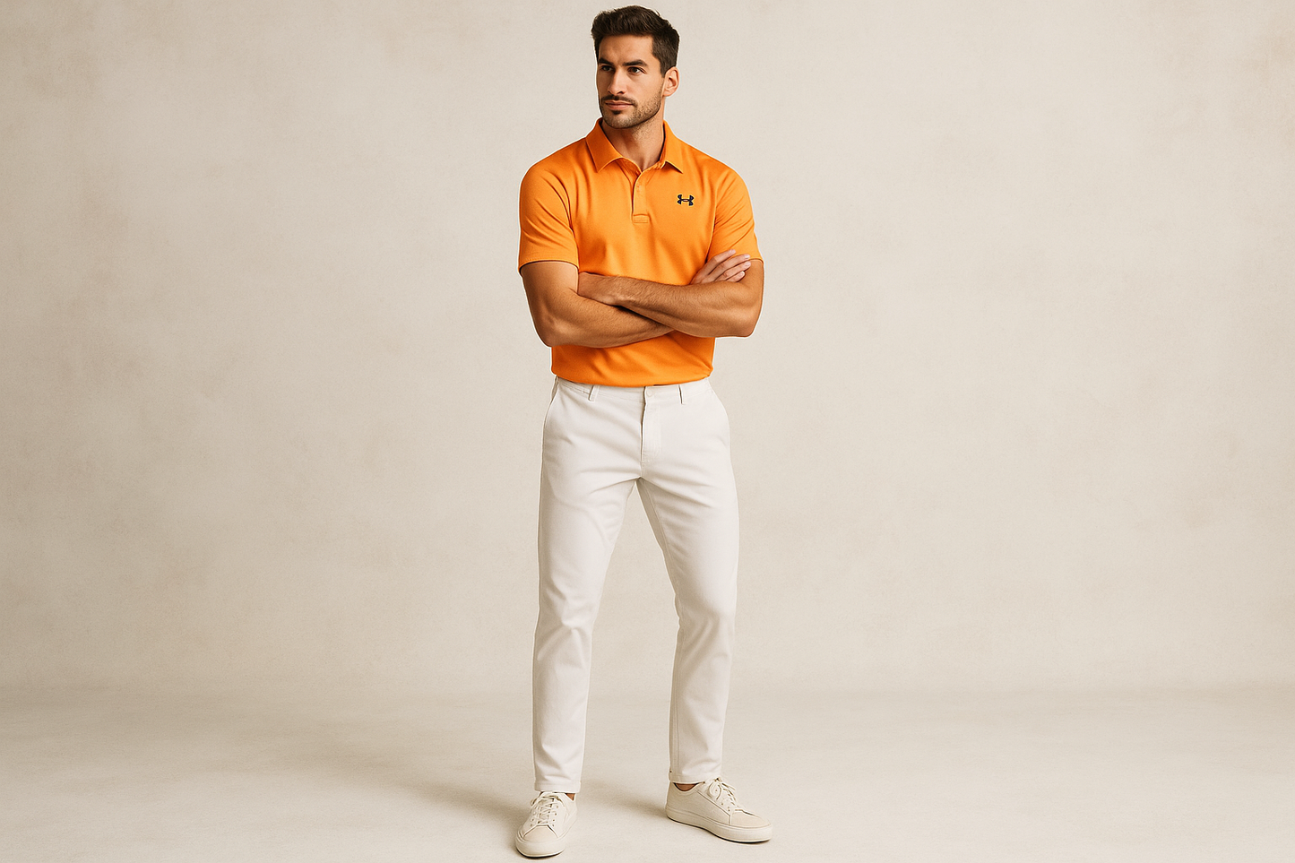 Camiseta Polo Under Armour 🏋🏻 color naranja intenso Tela Performance Talla L Entalle Regular