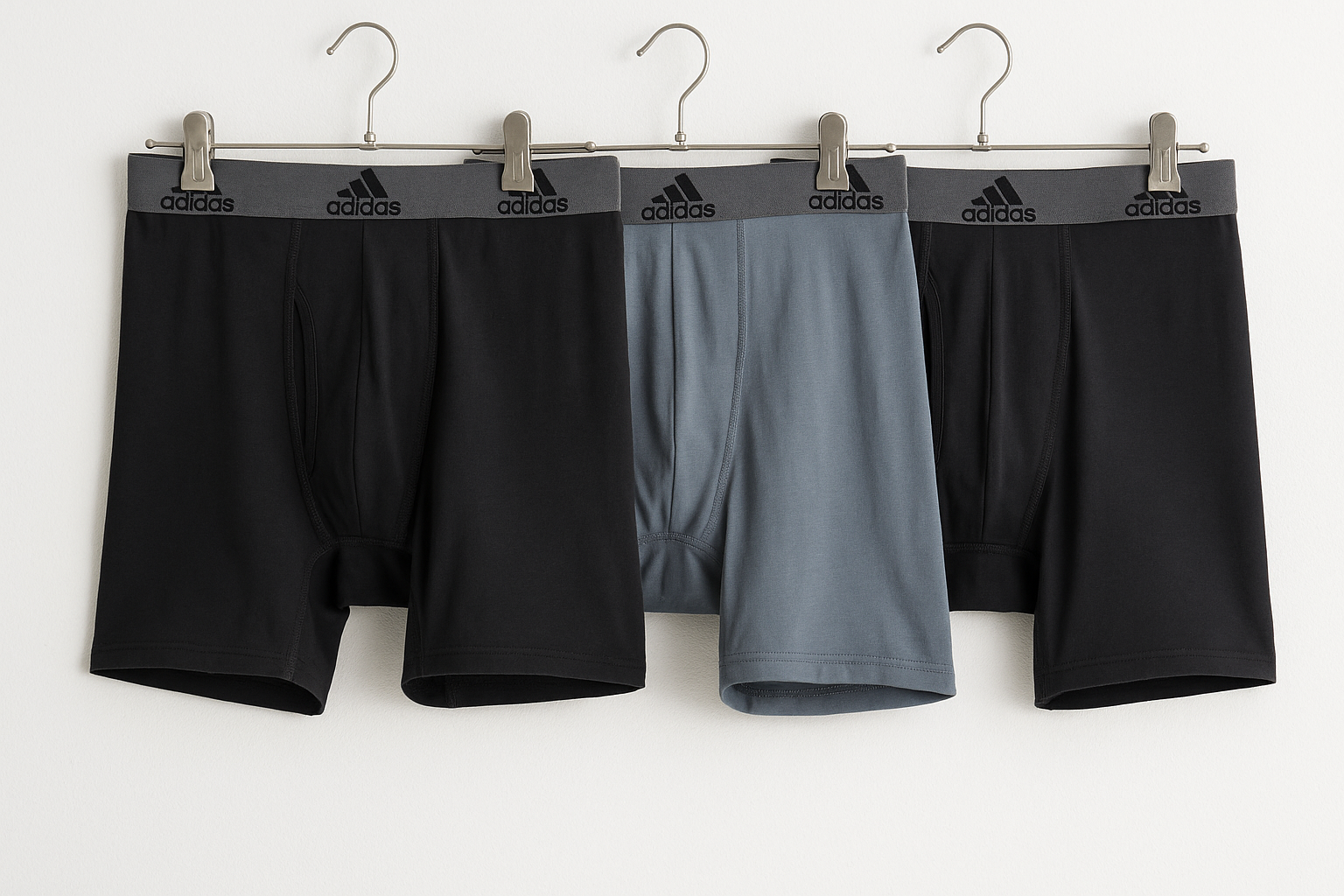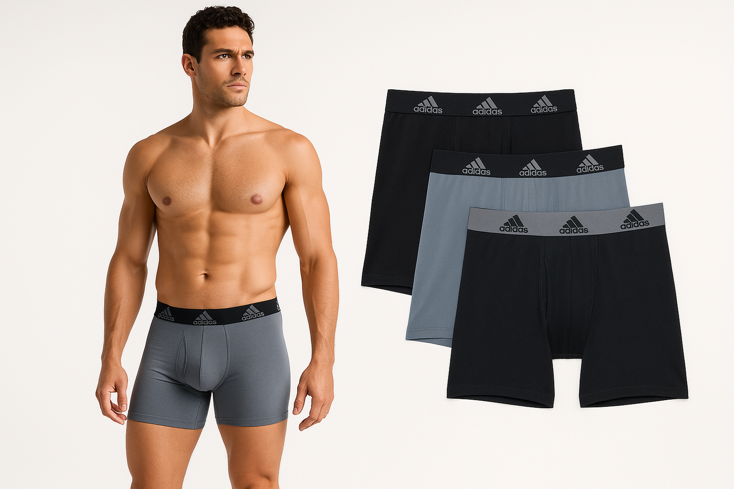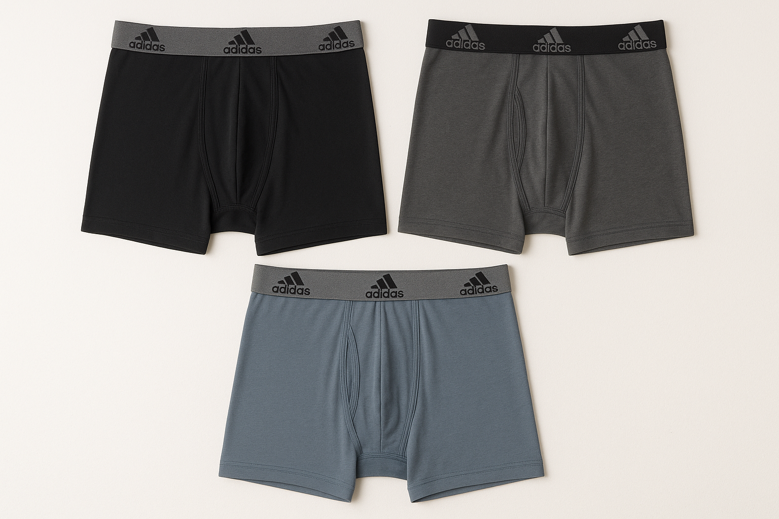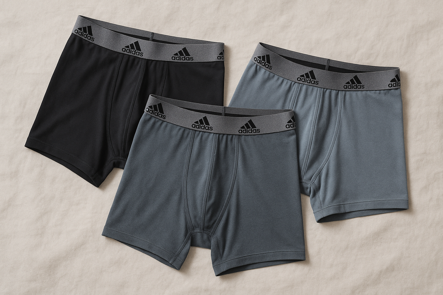 Combo de 3 Boxers Briefs Adidas Tela Performance color Negro y gris Talla S