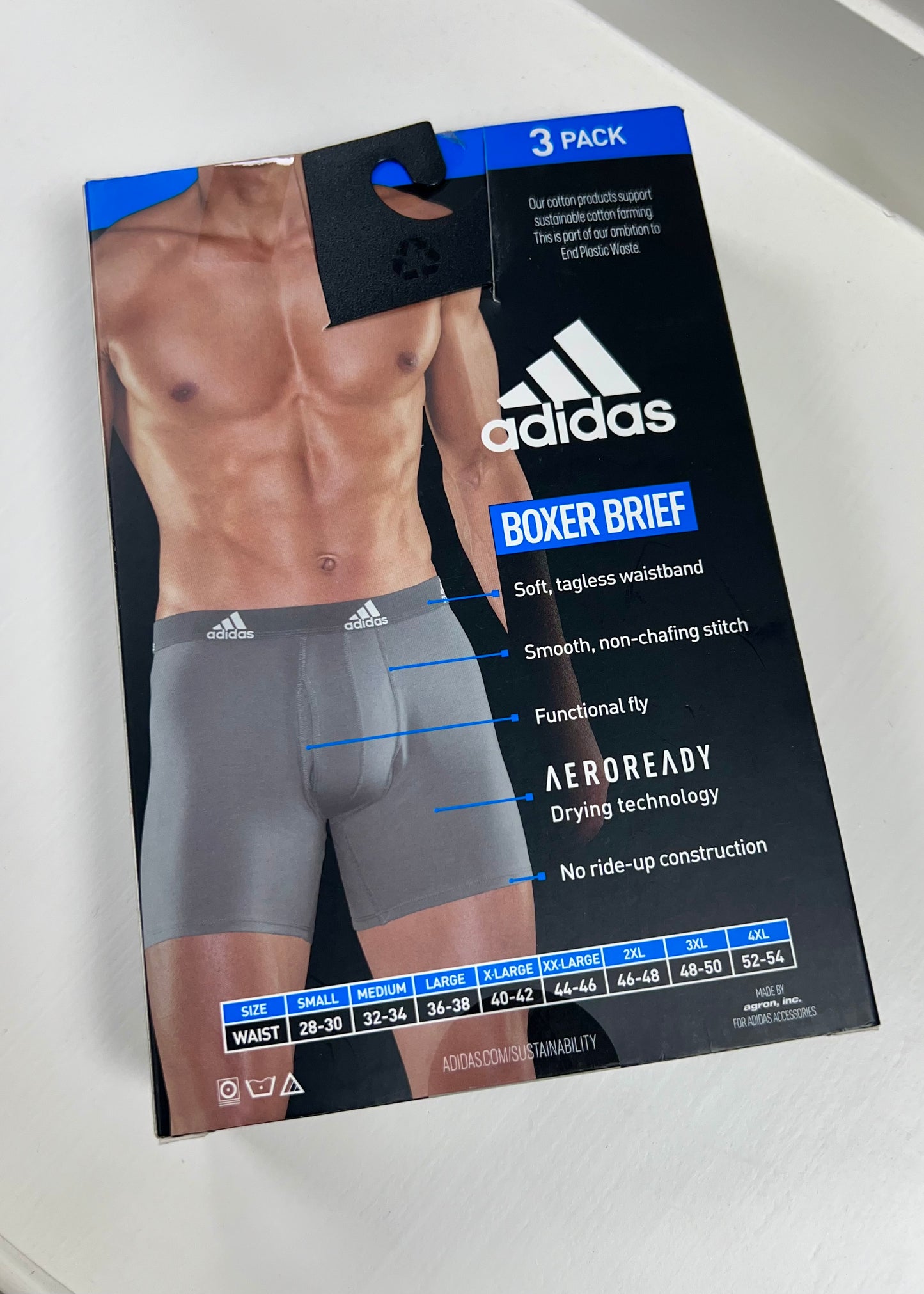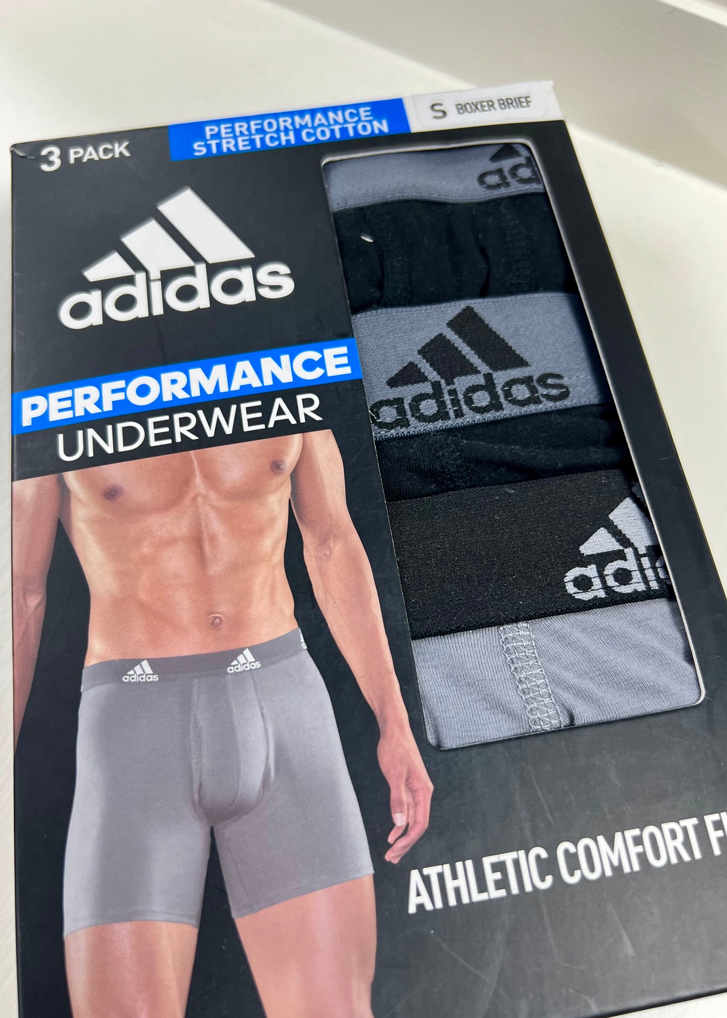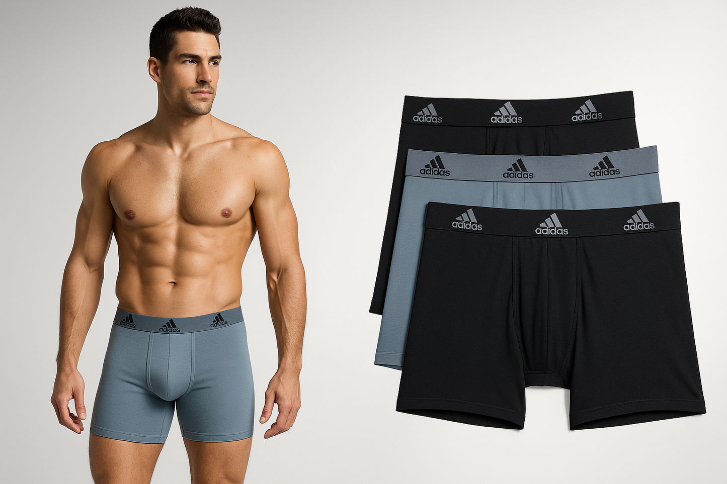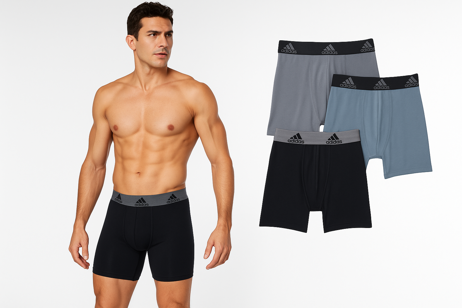 Combo de 3 Boxers Briefs Adidas Tela Performance color Negro y gris Talla S