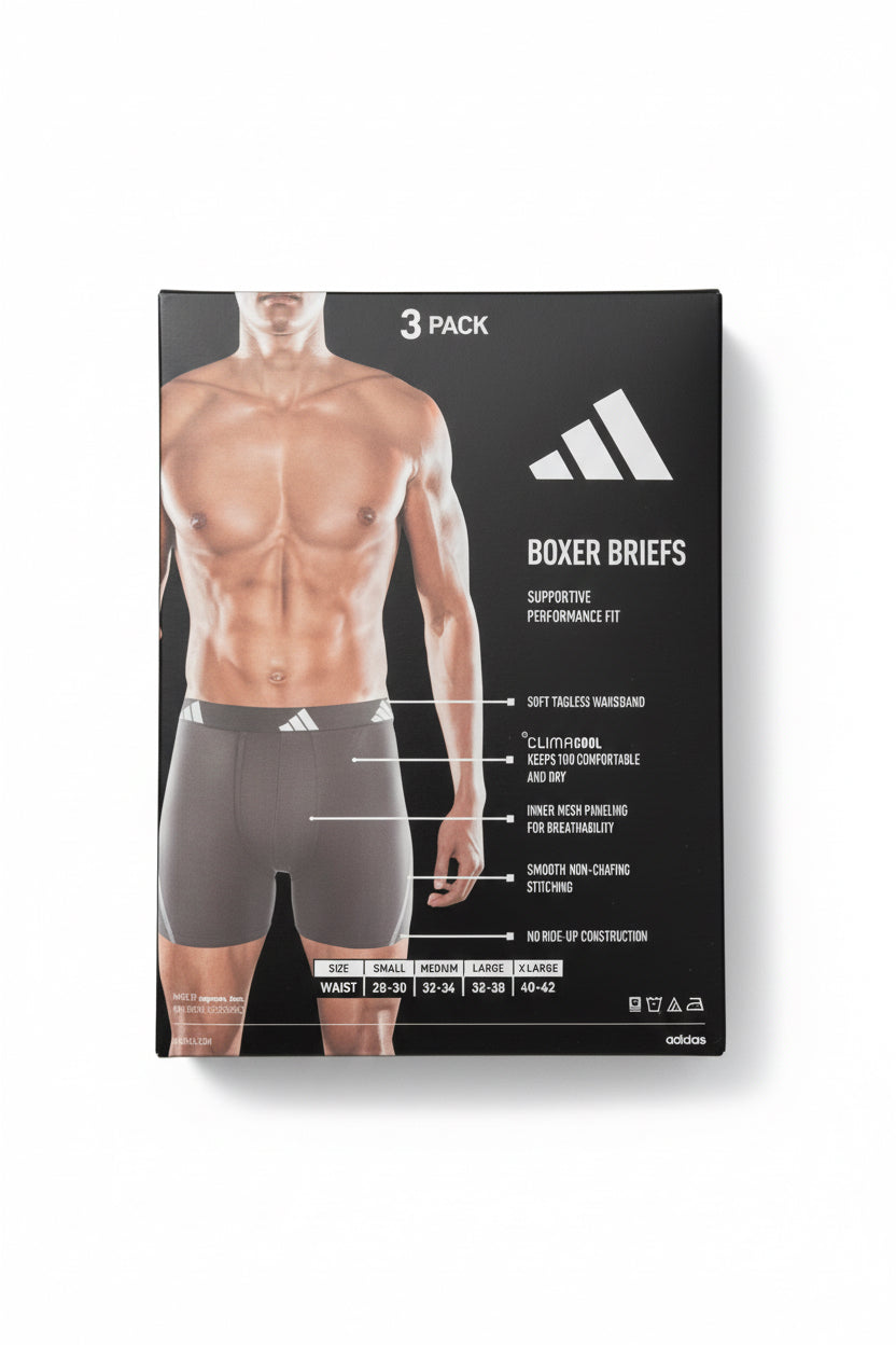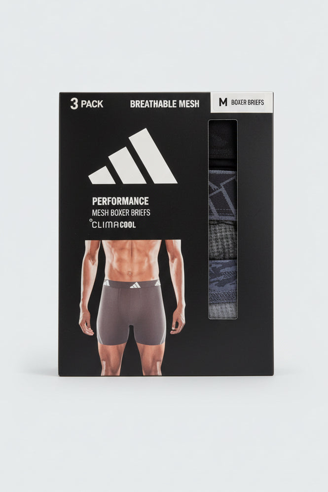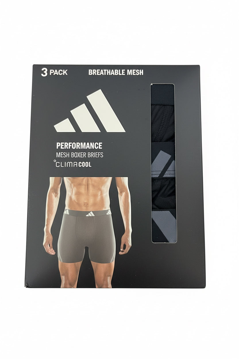 Combo de 3 Boxers Briefs Adidas Tela Performance Mesh color Negro y Gris Talla M