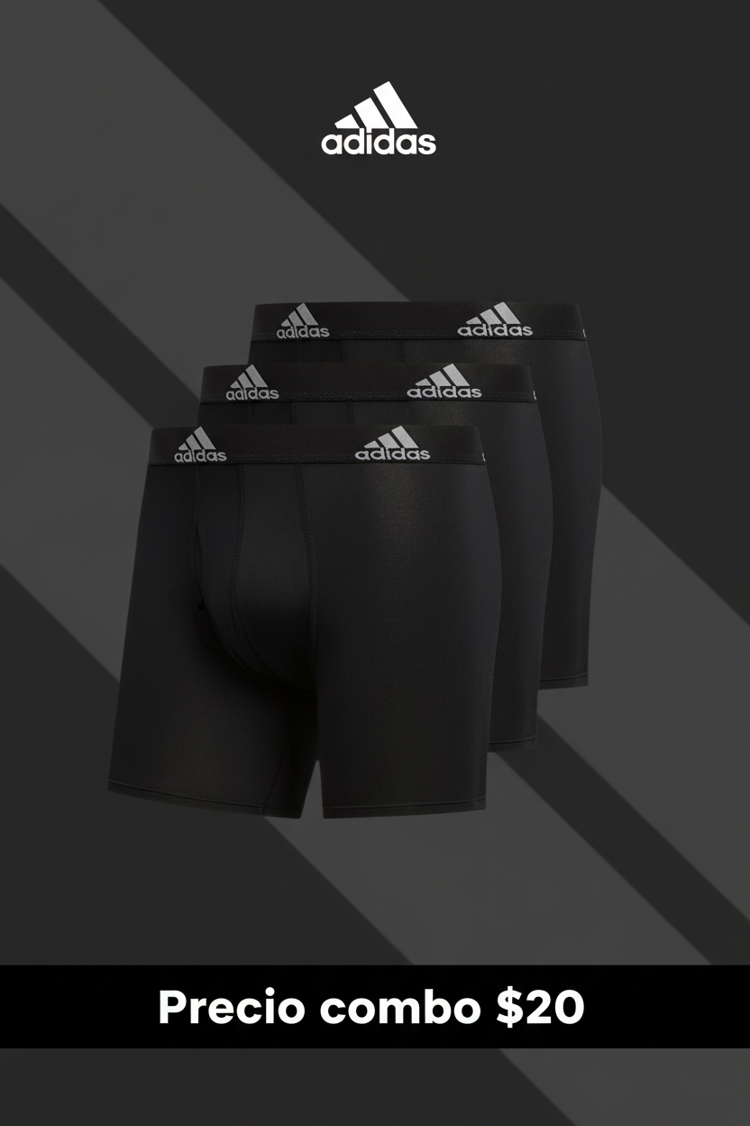 Boxer Briefs Adidas - color negro - Talla Medium - Diseño con logo en la cintura en negro - Secado rápido - Tela Performance Algodón Stretch - Nuevo con su etiqueta - Precio unitario $8 o combo de 3 en $20 💵 DM 📩 Por si tiene alguna consulta