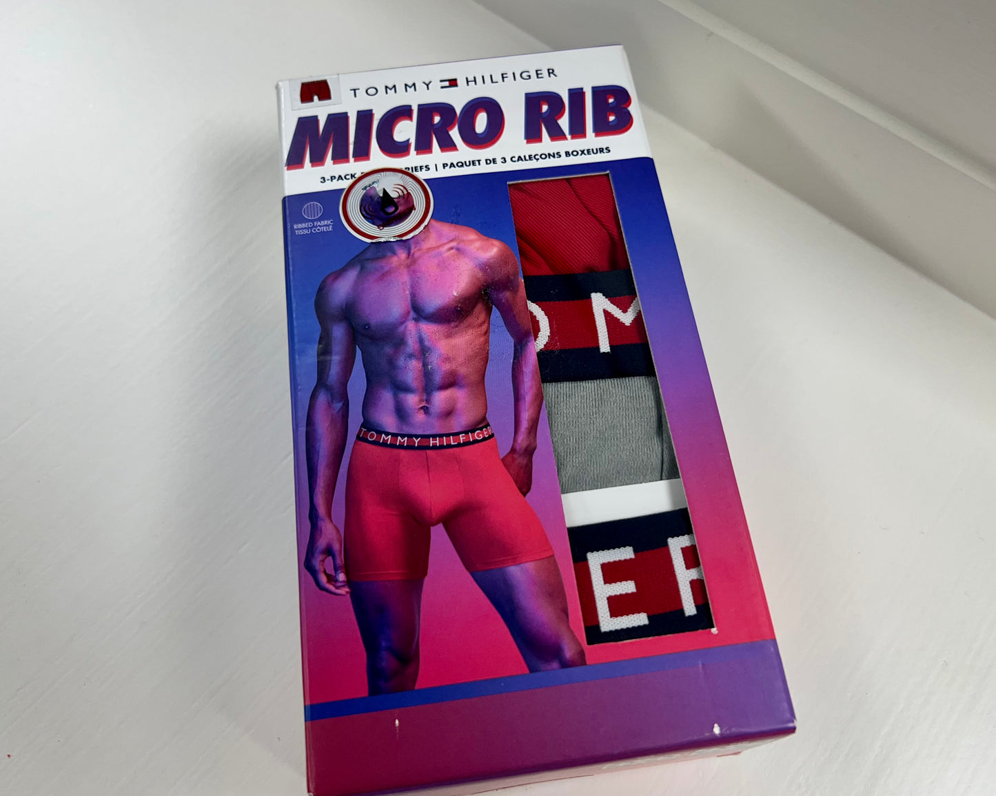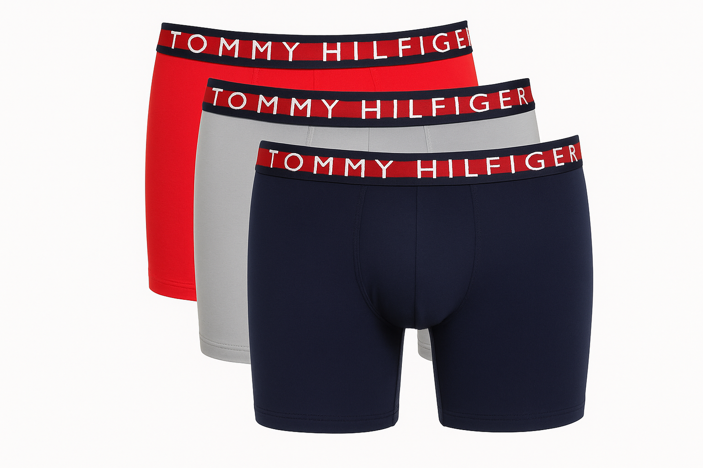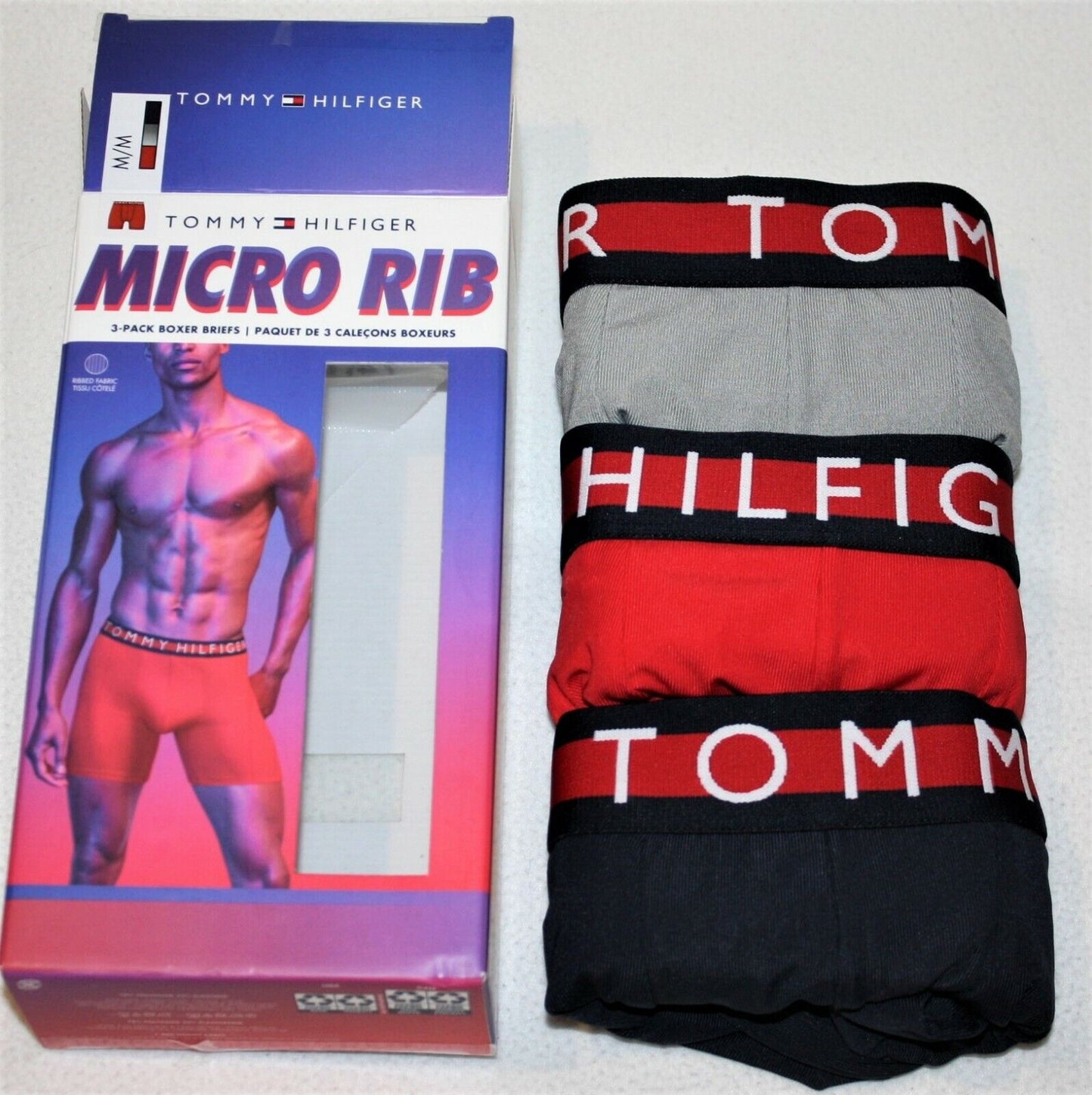 Paquete de 3 Boxers Briefs Tommy Hilfiger 🇺🇸 Tela Micro Rib color Rojo, gris y negro Talla S