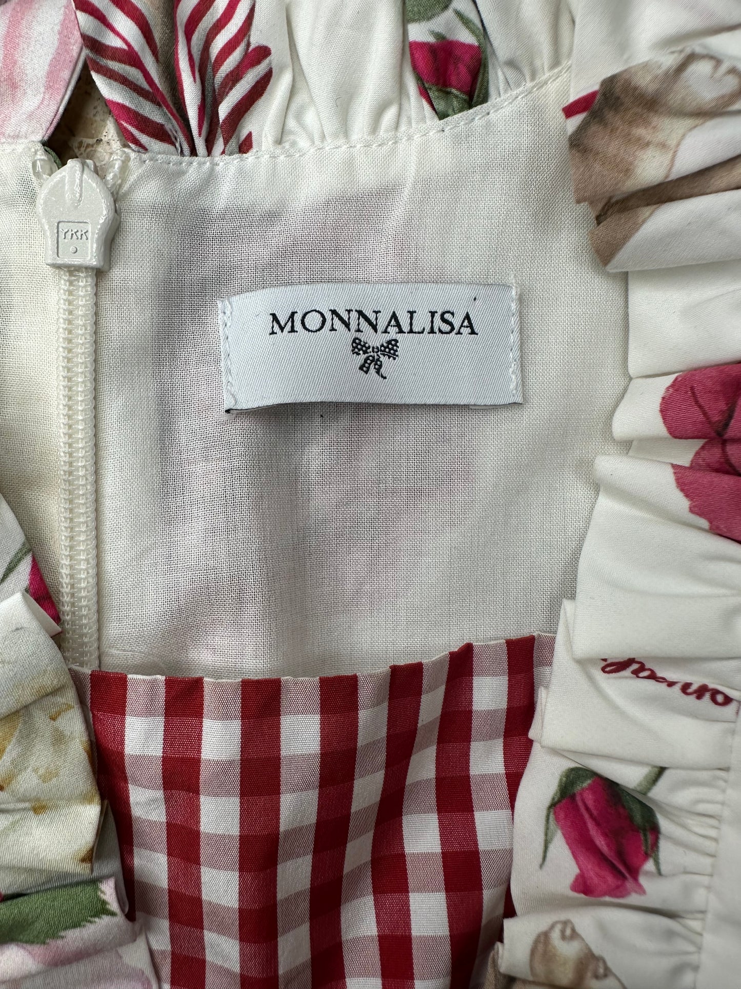 Vestido italiano de niña Monnalisa🎀 - Talla 5 - Manga corta con bolados - Color blanco con estampado de rosas y cachorros - Cuello en V con bolados y fondo en cuadros blanco y rojo - 100% algodón - Como nuevo 10/10 - Precio $30 💵 DM 📩 Por si tiene alguna consulta