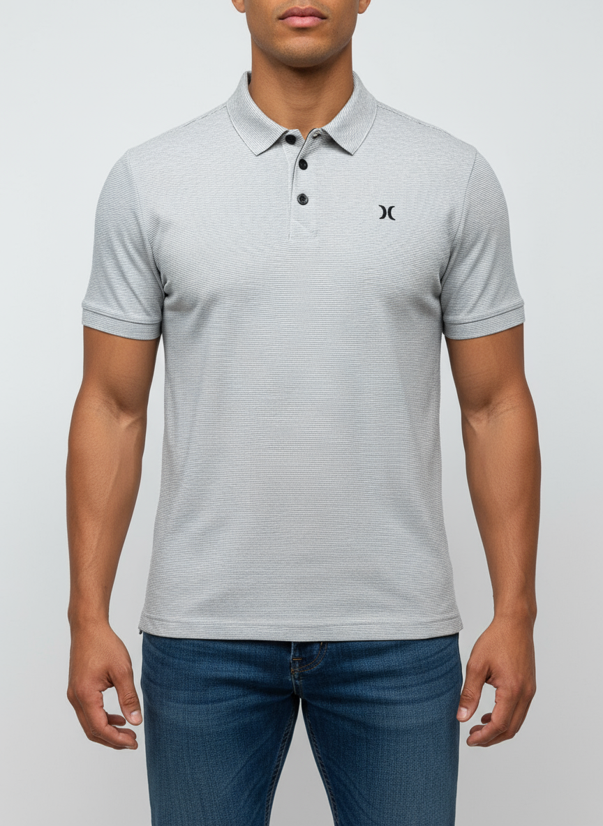 Camiseta Polo Hurley 🛹 con patron de rayas en color gris y blanco Talla S Entalle Regular