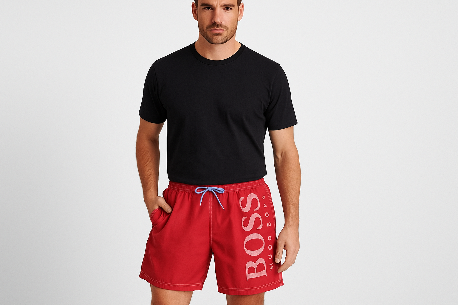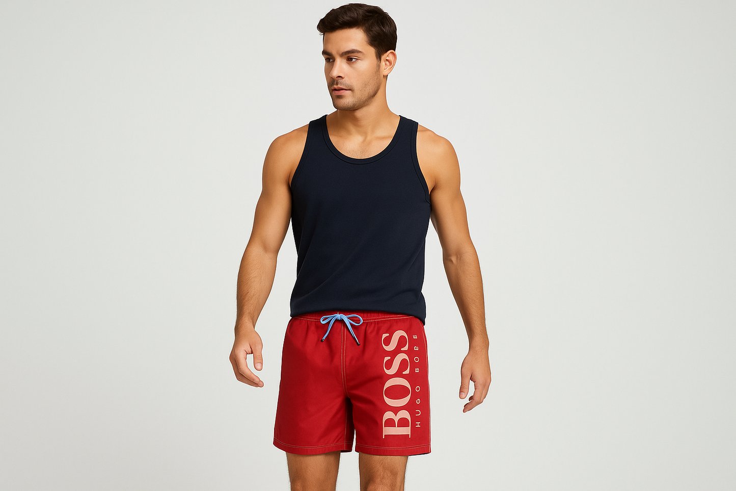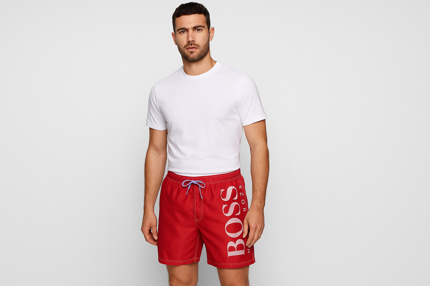 Short de baño Hugo Boss 🇩🇪 color rojo y logo en color blanco talla XL