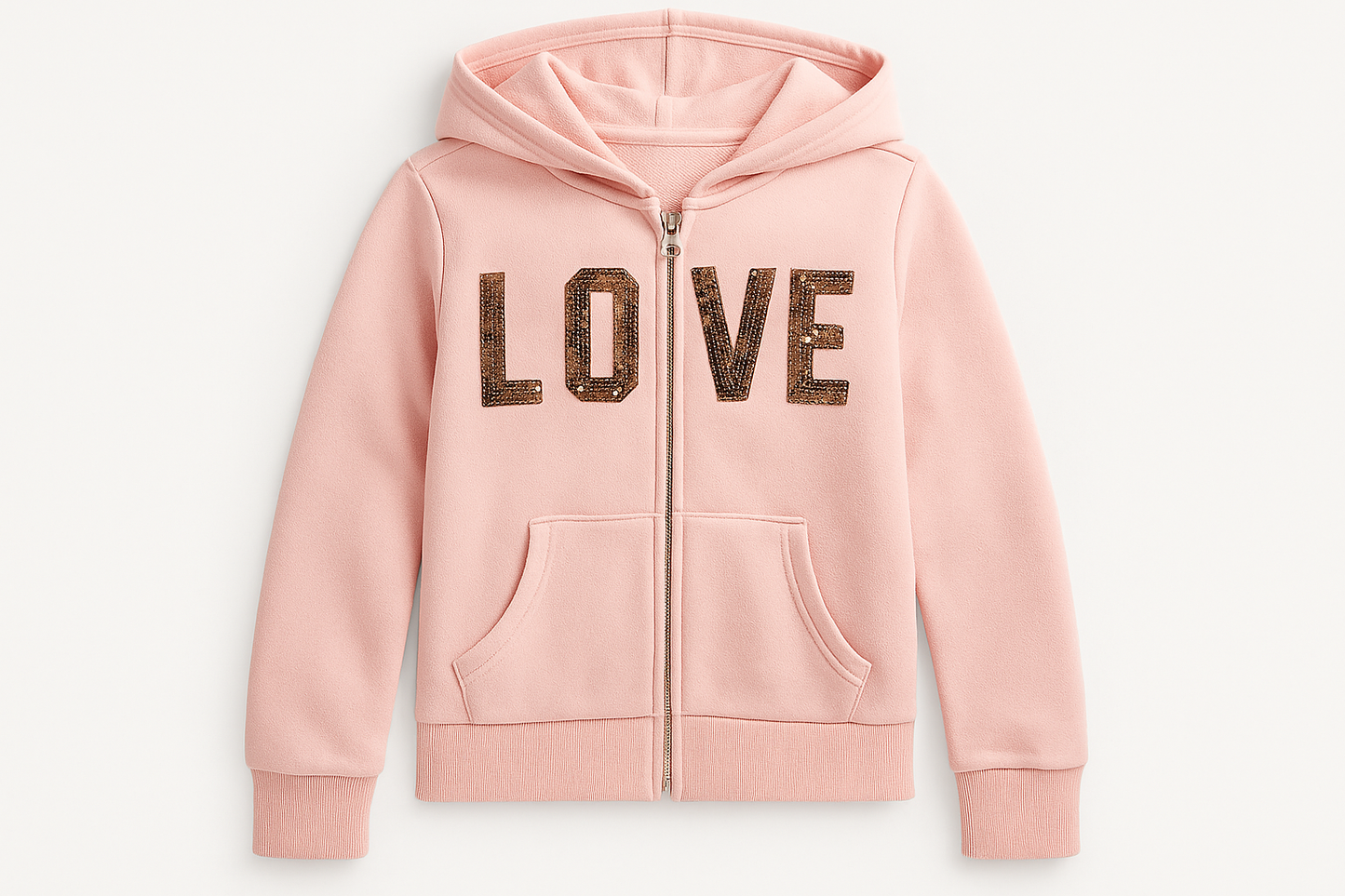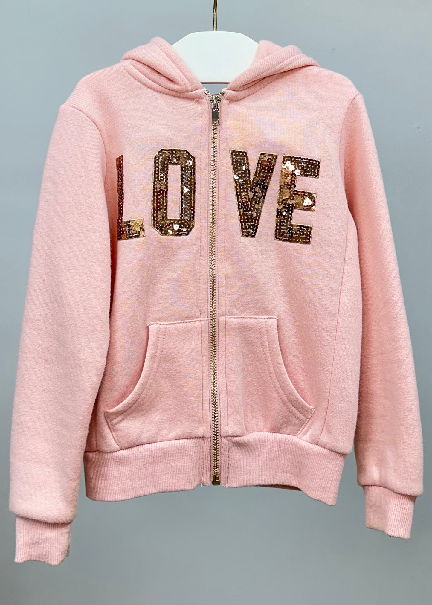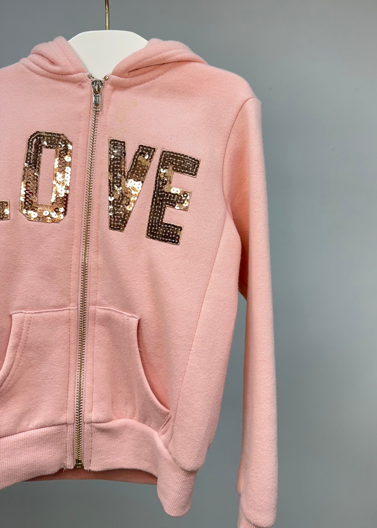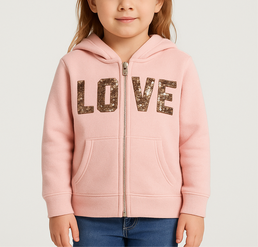 Sudadera Hoodie de niña Reflex Kids🐻 color rosado y diseño en lentejuelas doradas con capucha Talla 5