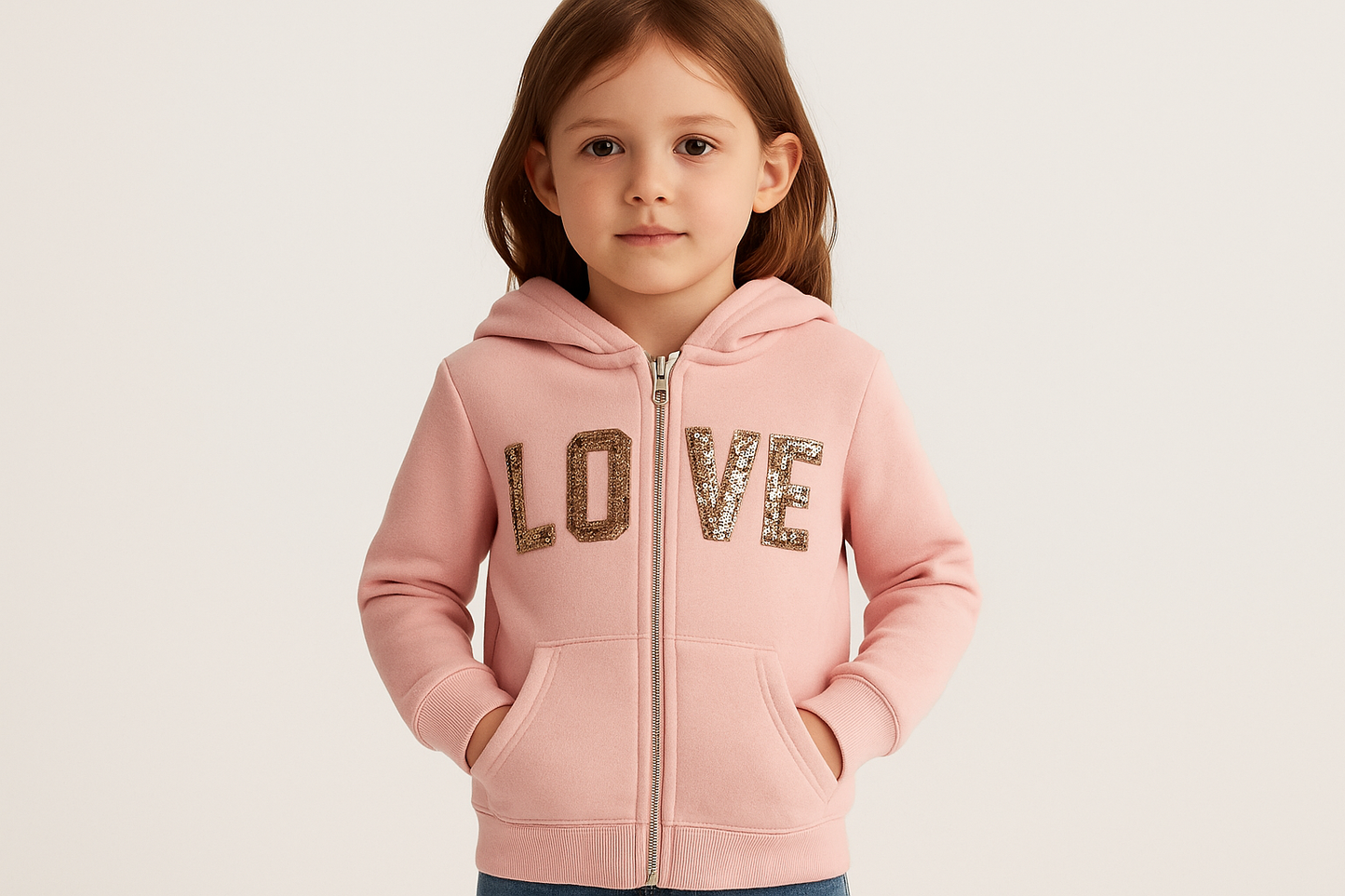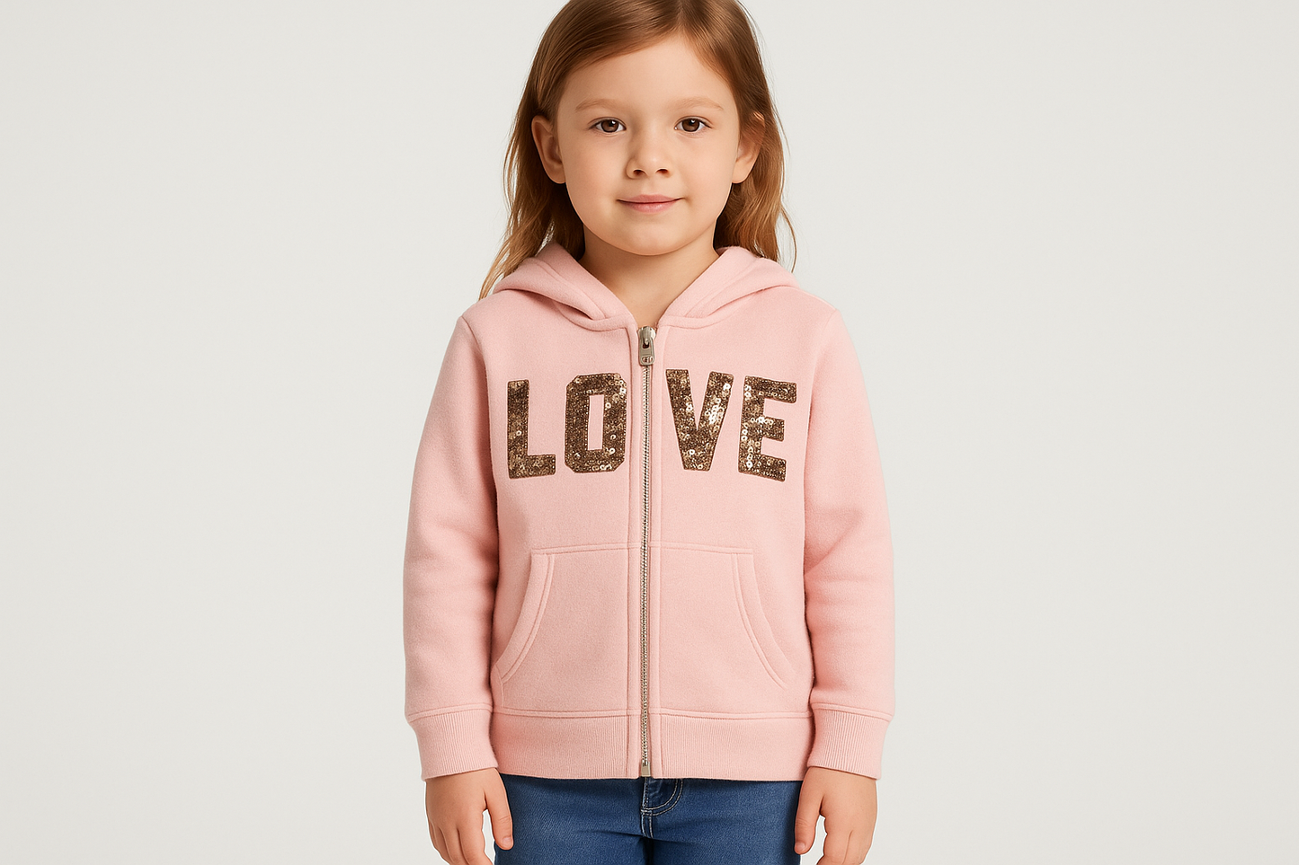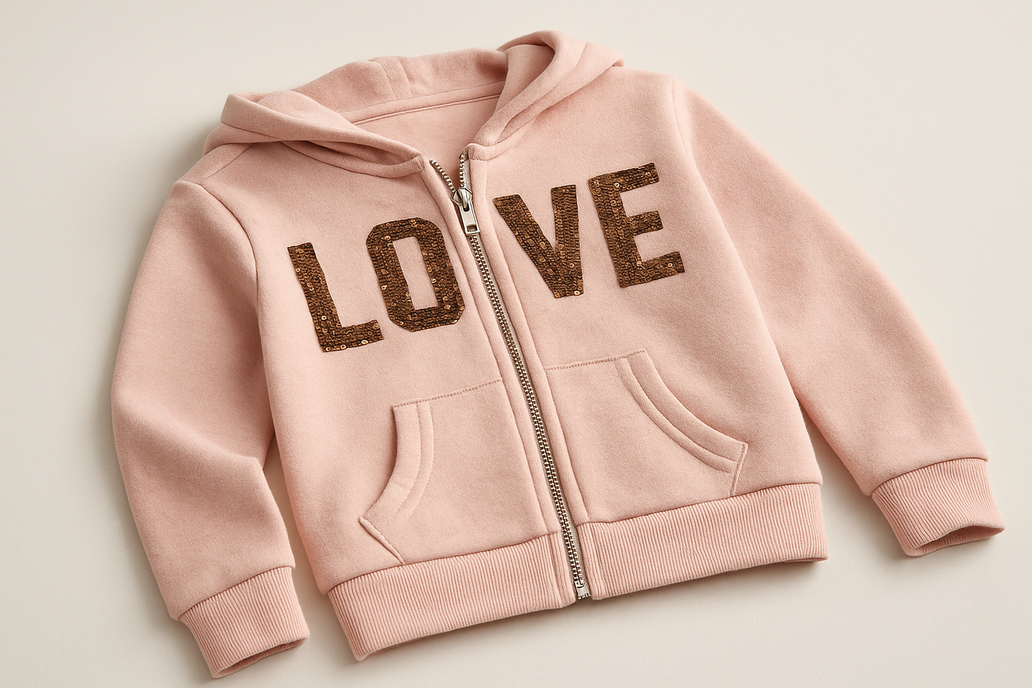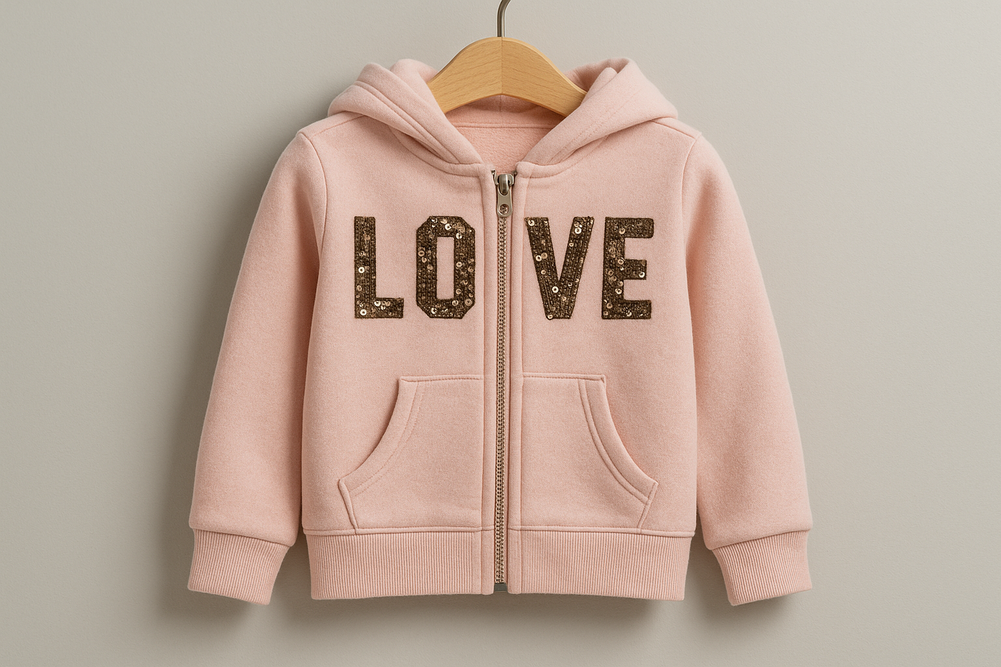 Sudadera Hoodie de niña Reflex Kids🐻 color rosado y diseño en lentejuelas doradas con capucha Talla 5