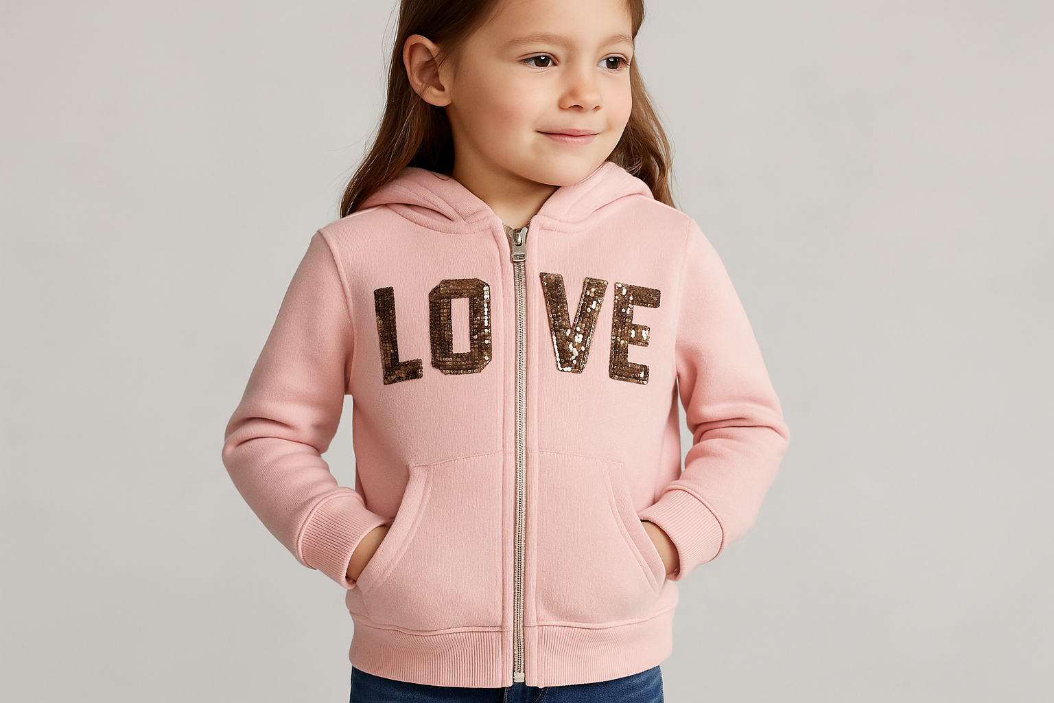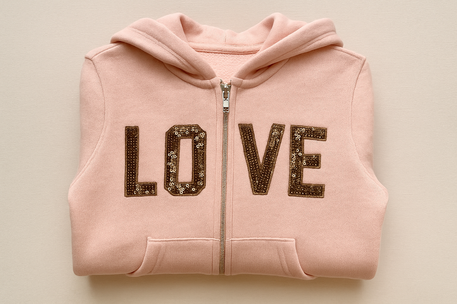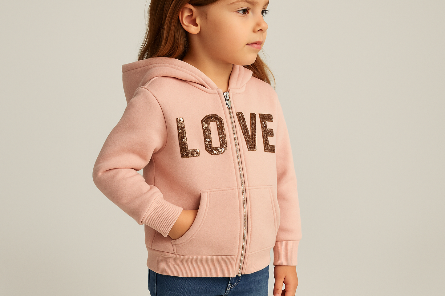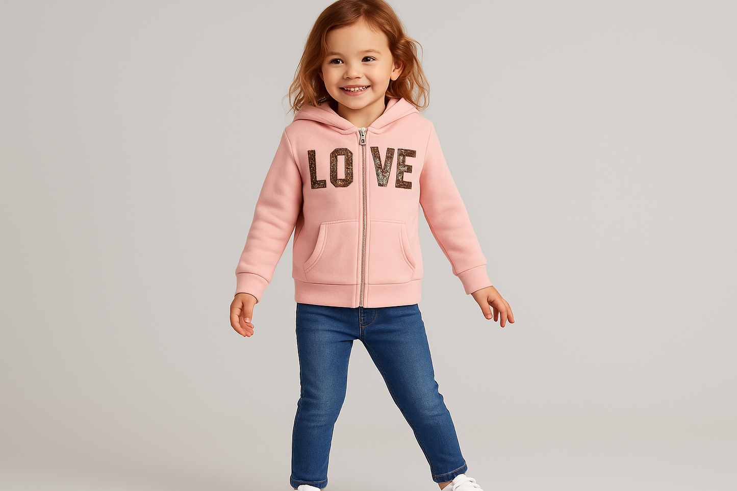 Sudadera Hoodie de niña Reflex Kids🐻 color rosado y diseño en lentejuelas doradas con capucha Talla 5