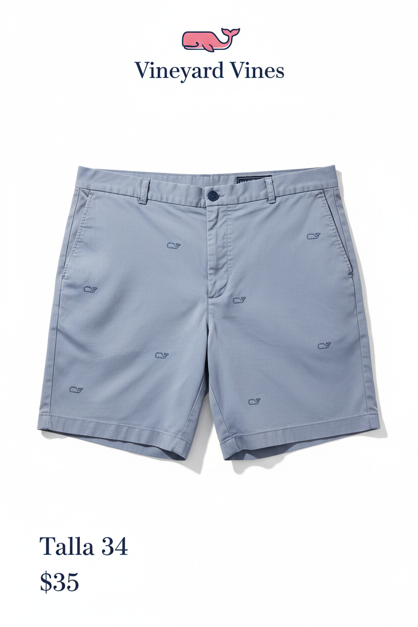 Short marca Vineyard Vines - Talla 38 - Estilo Casual Color gris azulado con diseño de logos - Cierre de cremallera - Dos bolsillos frontales en ángulo - Dos bolsillos traseros abotonados - 100% algodón - Como nuevo 10/10 - Precio $35 💵 DM 📩 Por si tiene alguna consulta
