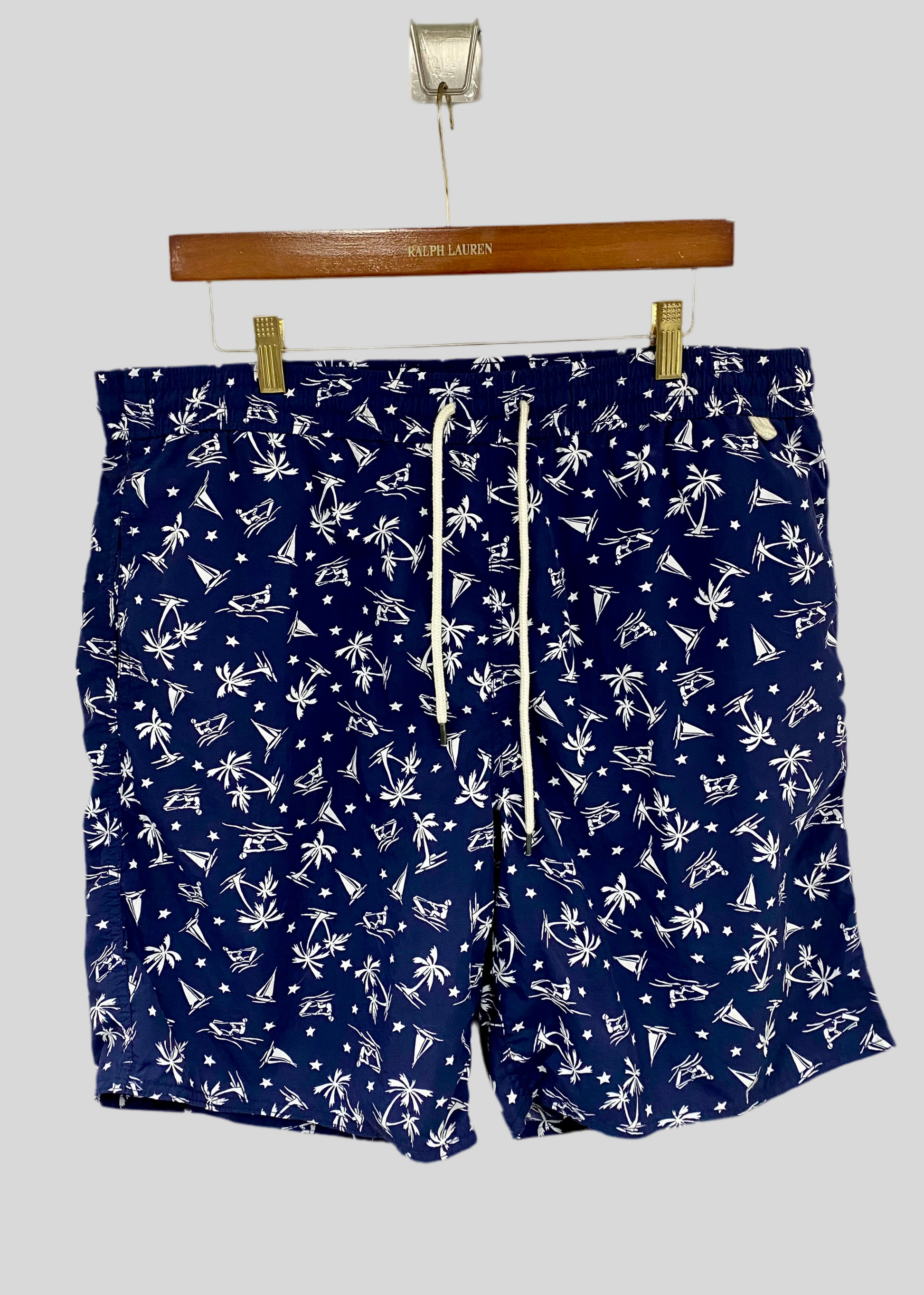 Short de baño Polo Ralph Lauren 🏇🏼color azul navy con diseño de isla en blanco talla XL