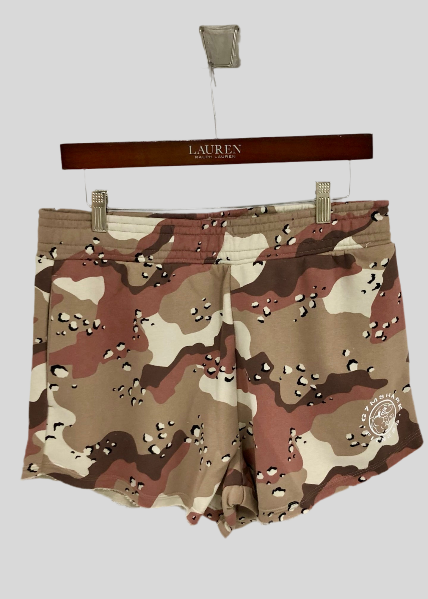 Short Lounge Gymshark 🏋🏼♂️ Diseño de camuflaje en color kaki y crema Talla M