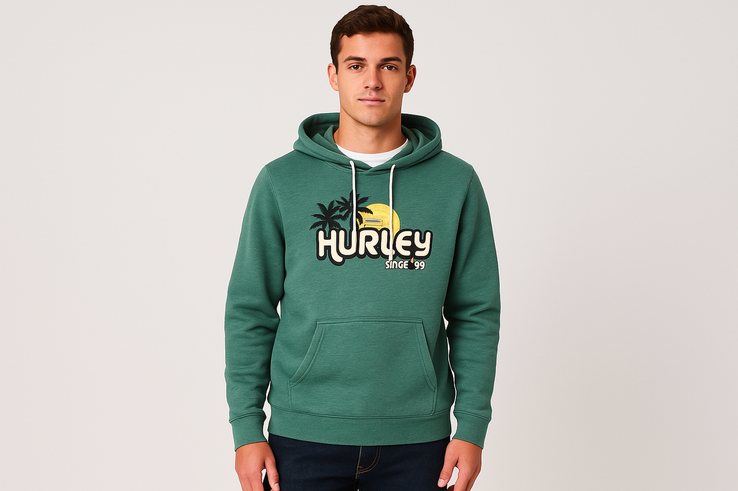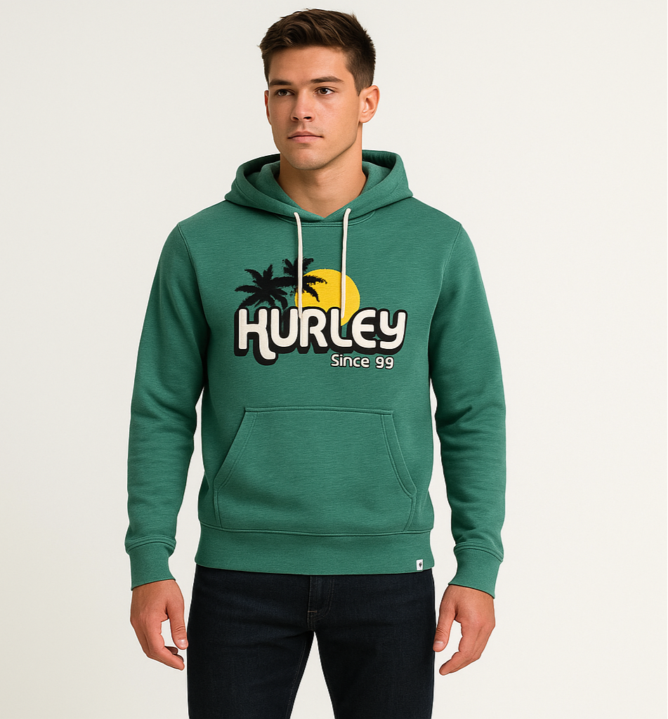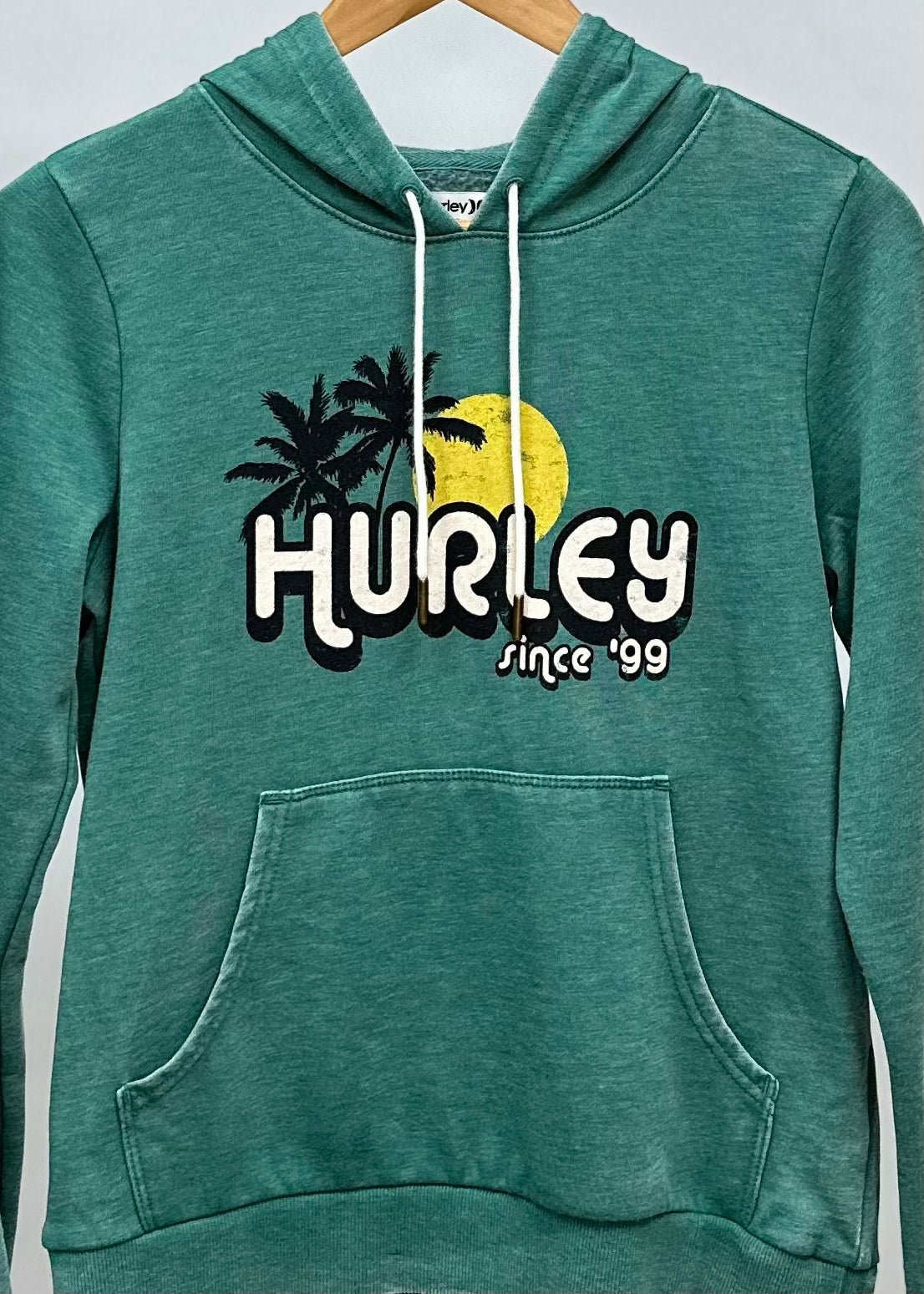 Sudadera Hoodie Hurley 🏄🏽♂️ color verde y logo en blanco Talla XS