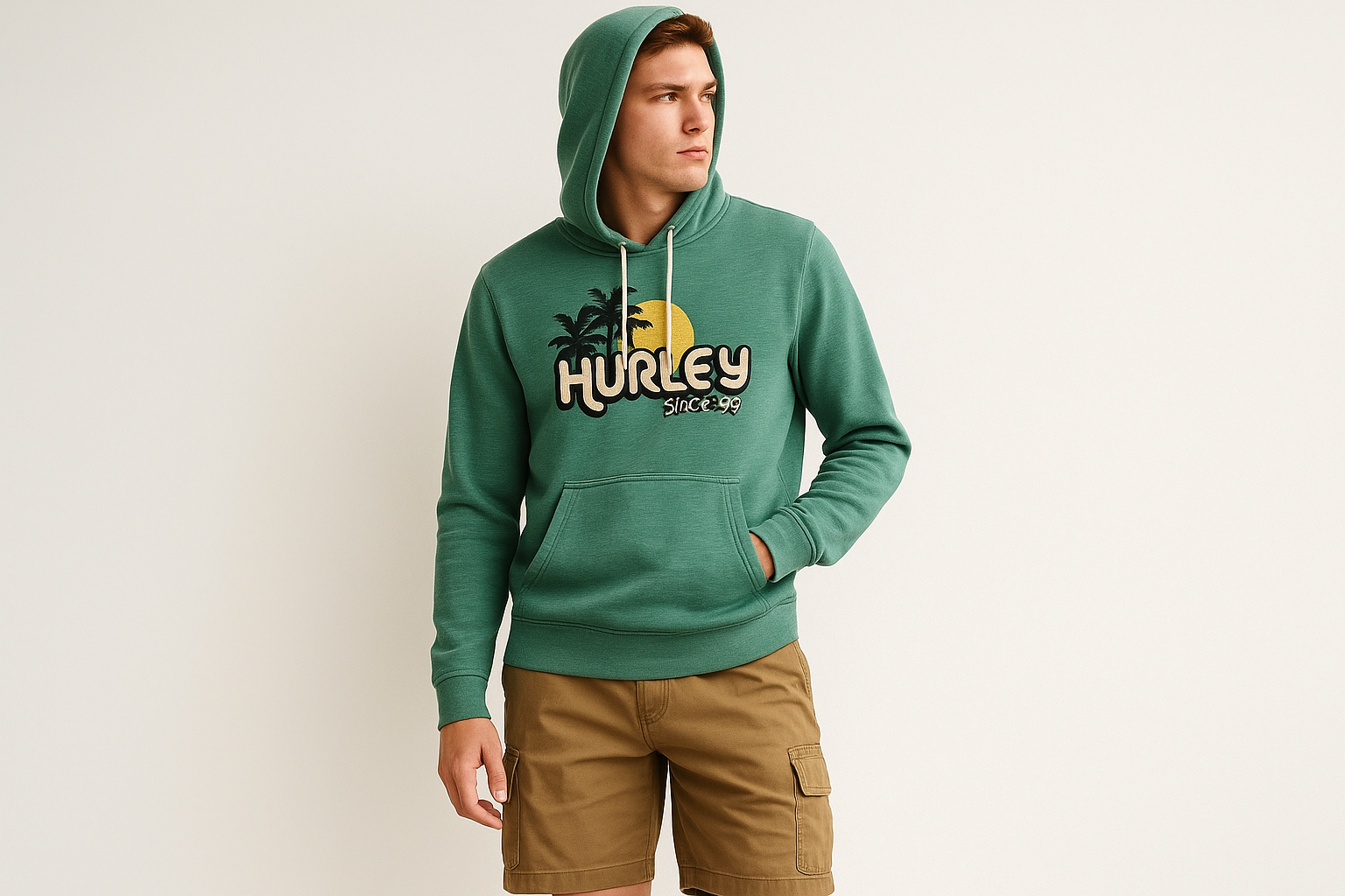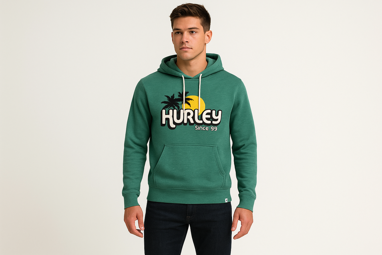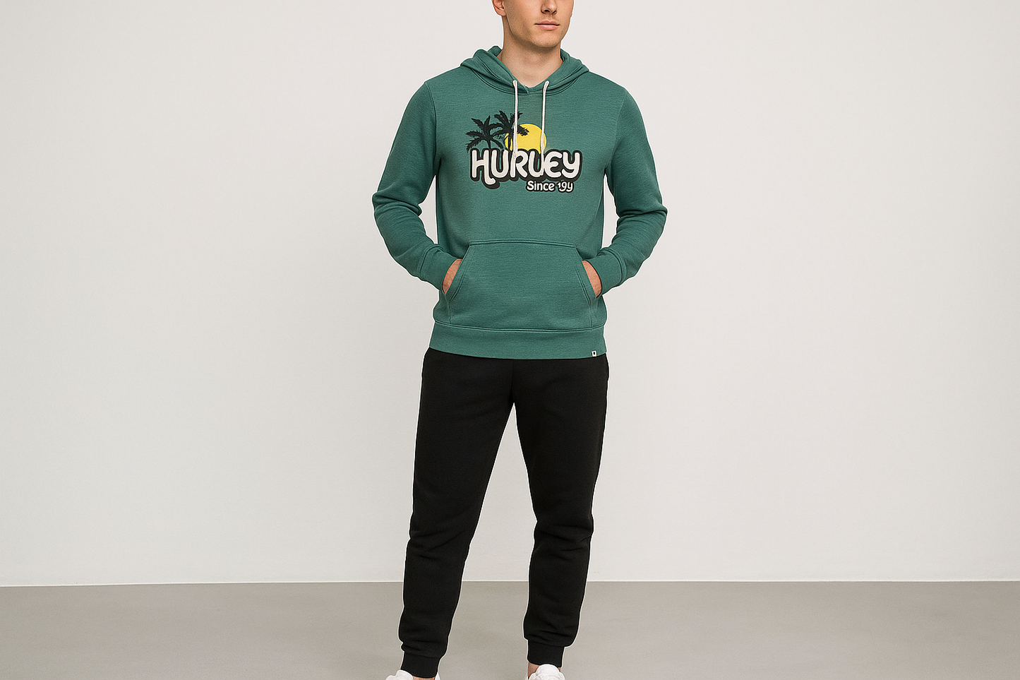 Sudadera Hoodie Hurley 🏄🏽♂️ color verde y logo en blanco Talla XS
